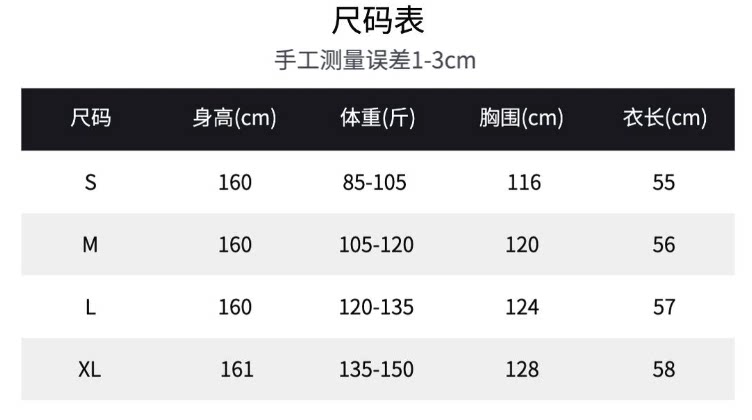 China (cm) 165 / 88-90 170 / 96-98 175 / 108-110 180 / 118-122 185 / 126-130