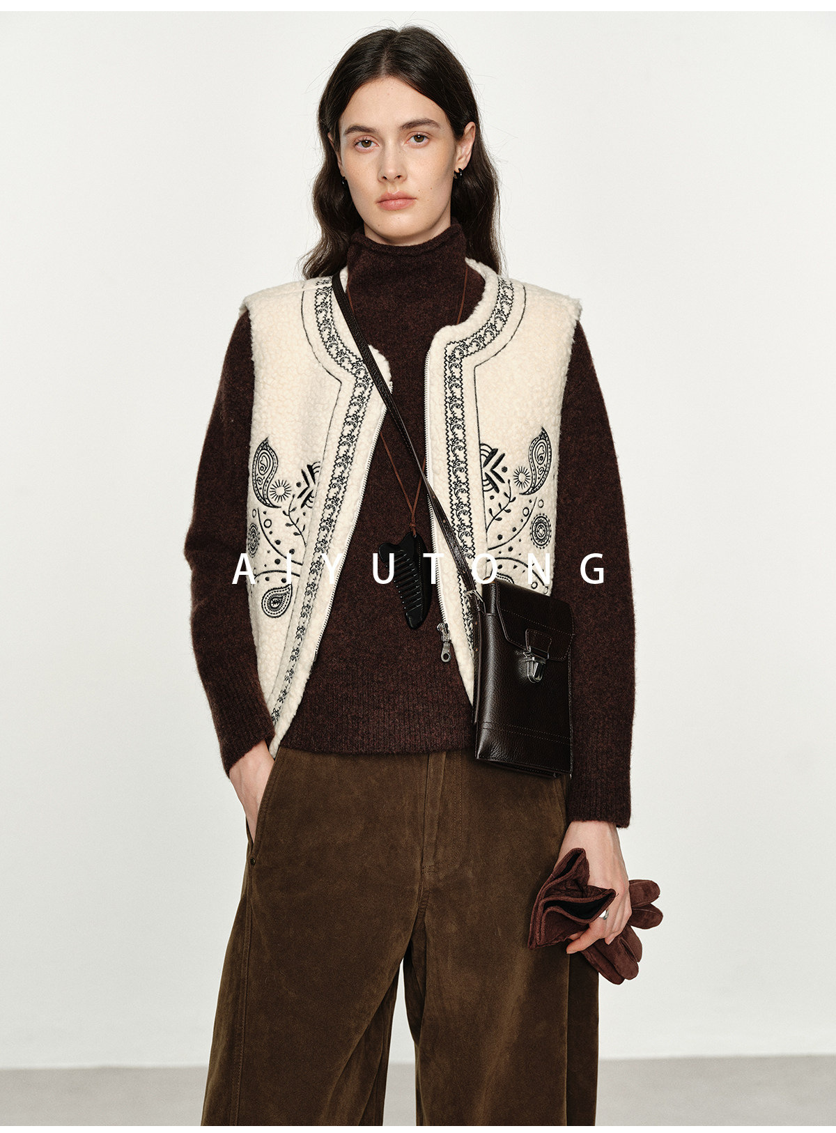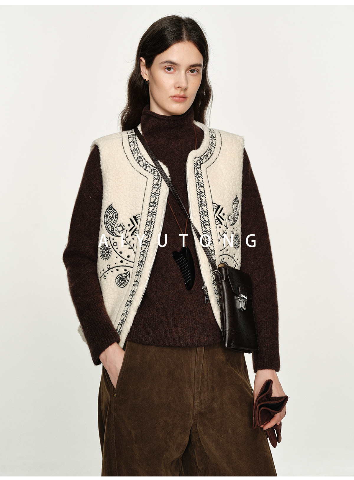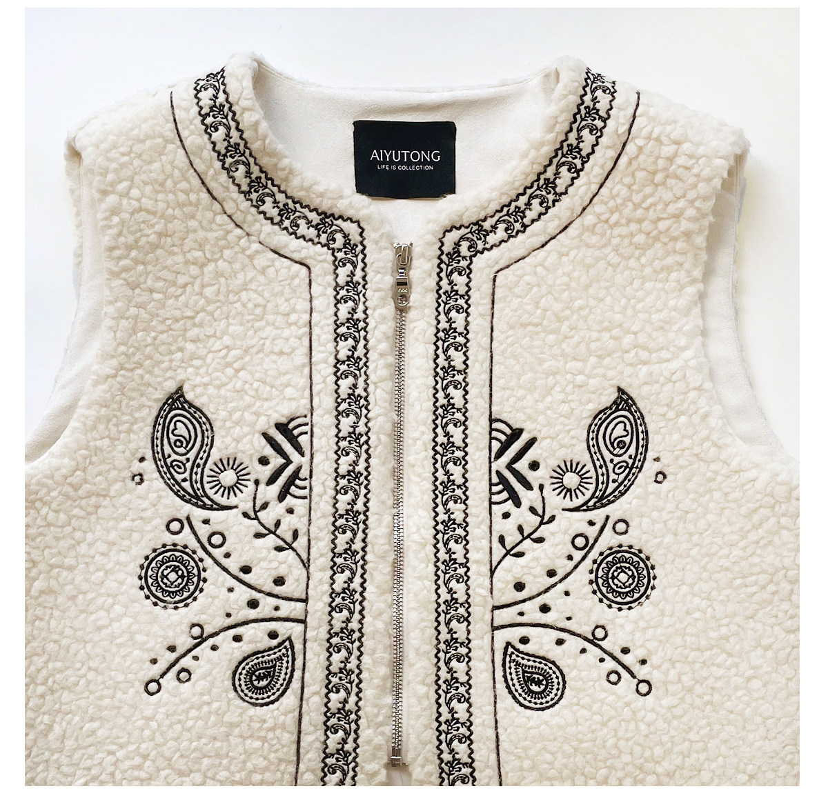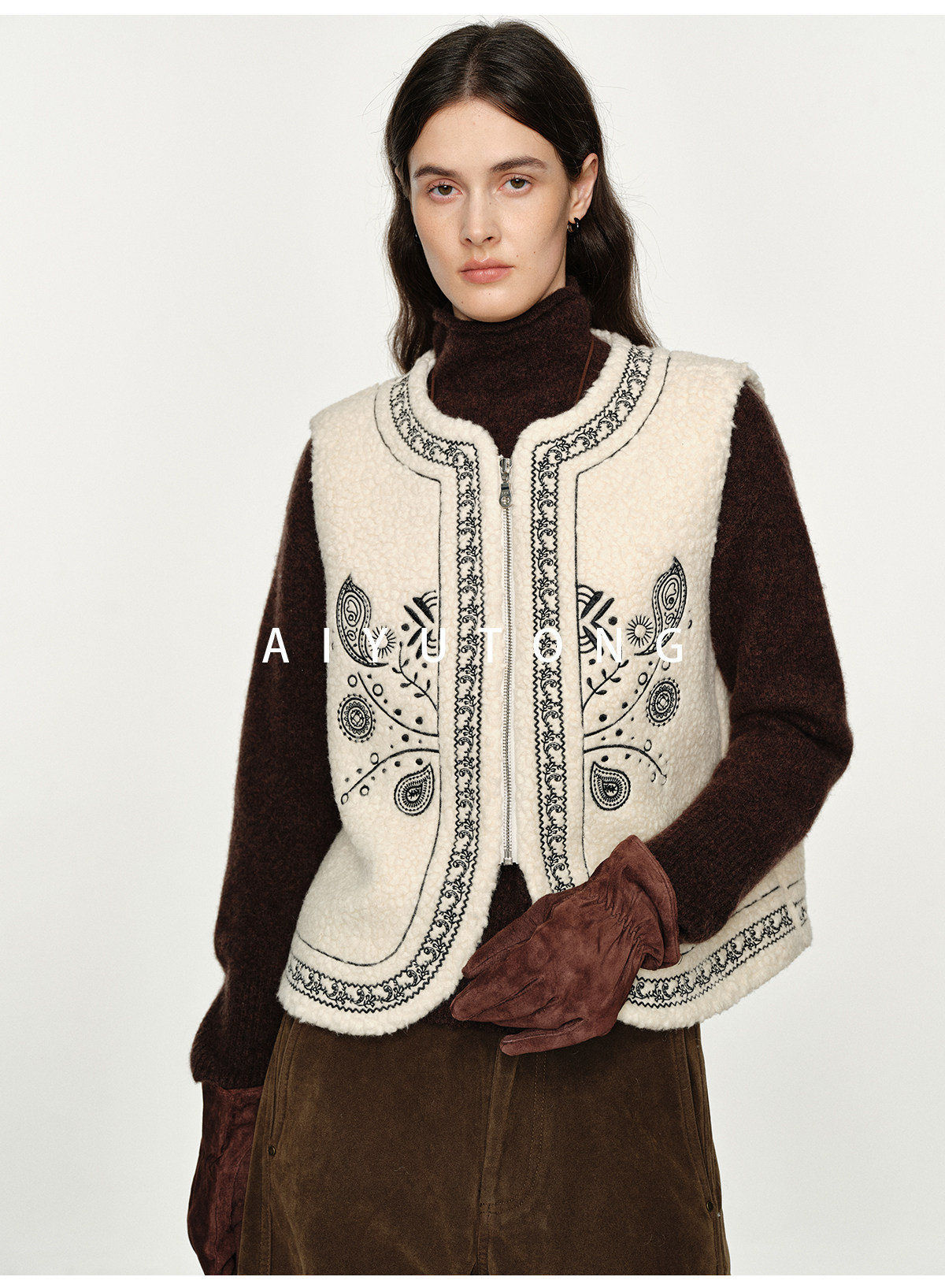 Fashionable and Western style autumn and winter nomadic style fashionable outer wear heavy industry embroidered lambswool blended thermal vest vest for women