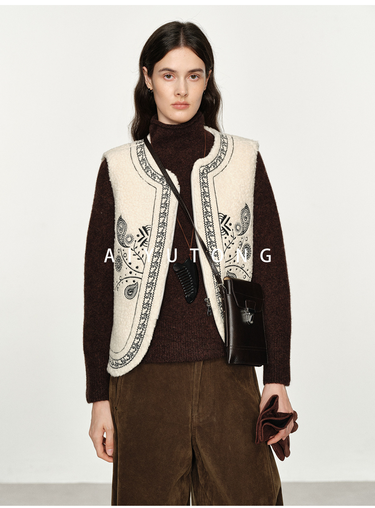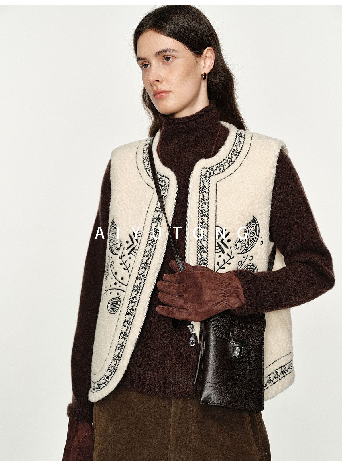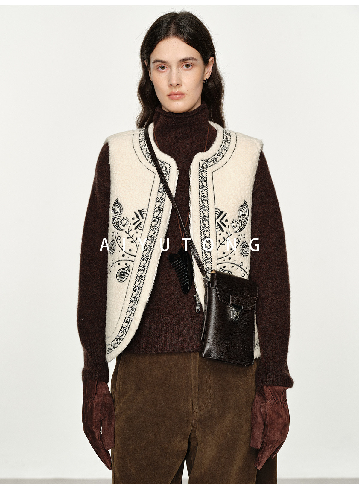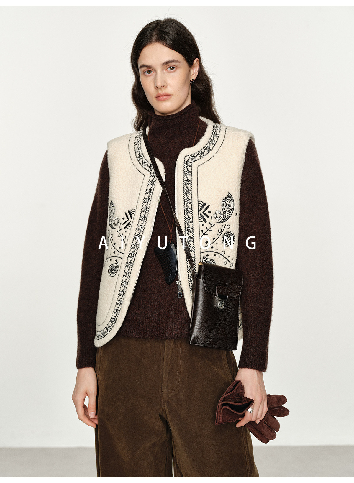 Fashionable and Western style autumn and winter nomadic style fashionable outer wear heavy industry embroidered lambswool blended thermal vest vest for women