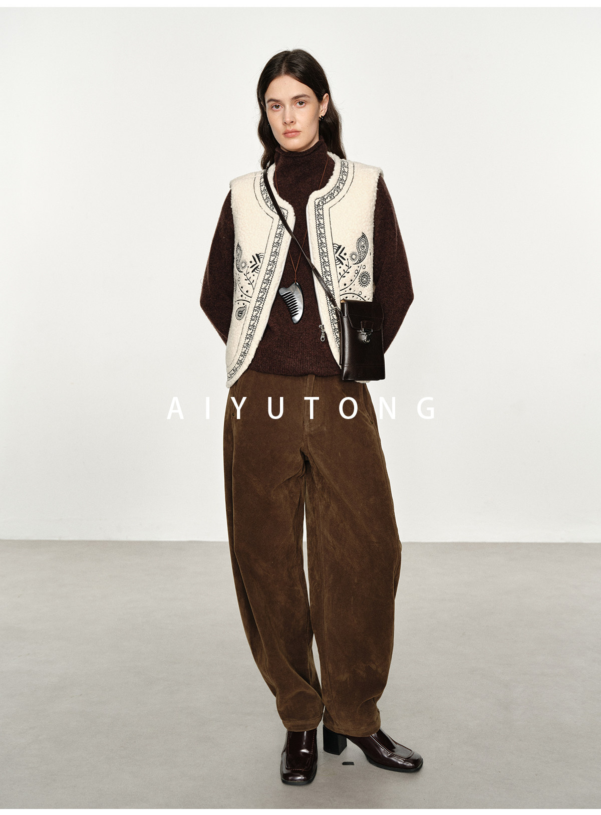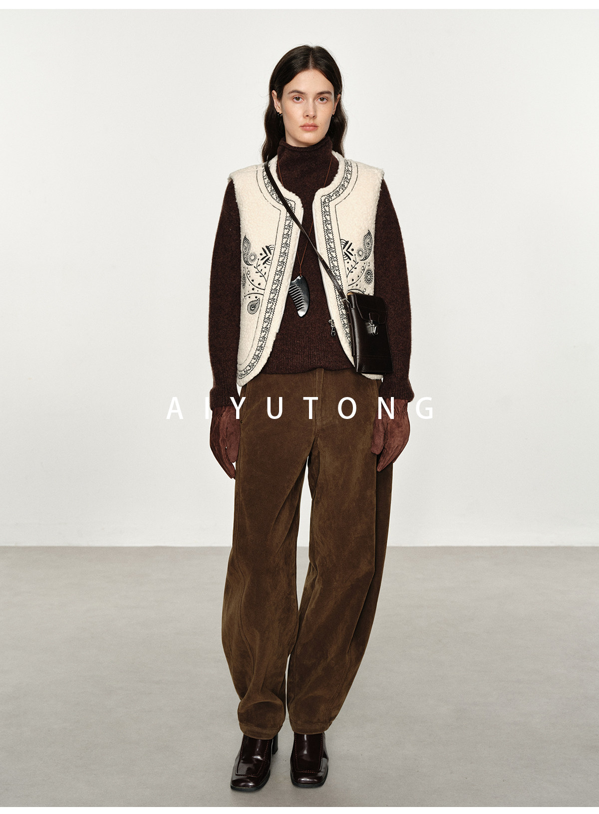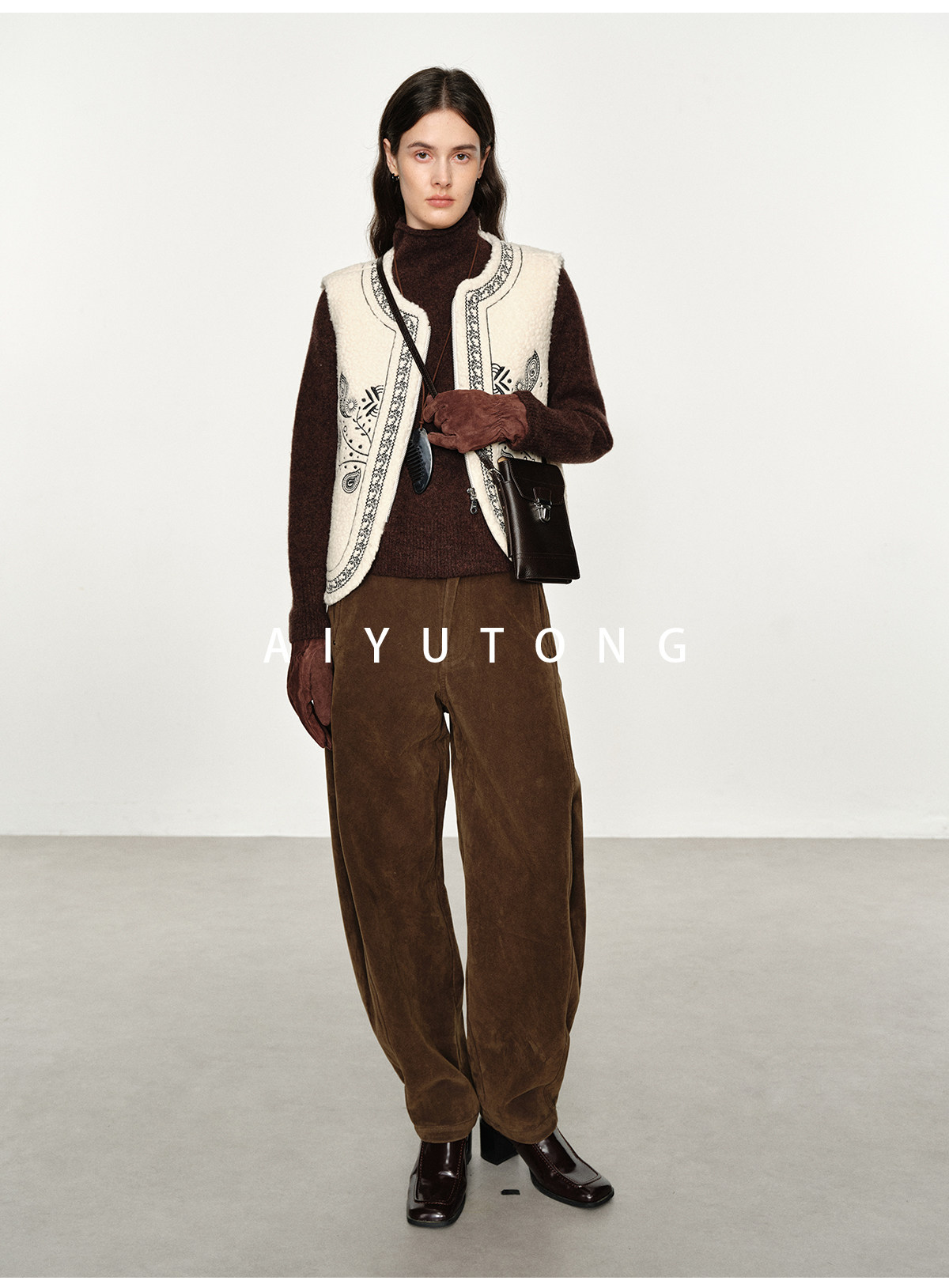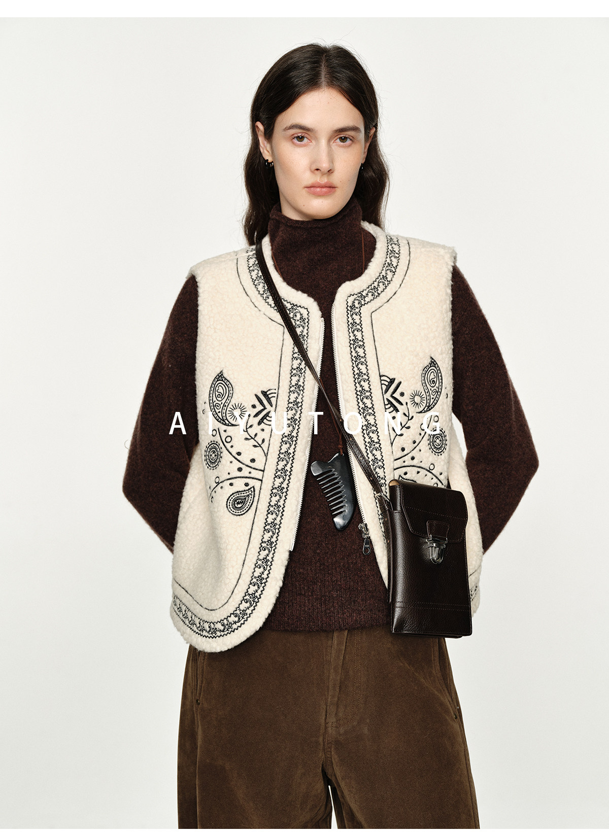 Fashionable and Western style autumn and winter nomadic style fashionable outer wear heavy industry embroidered lambswool blended thermal vest vest for women