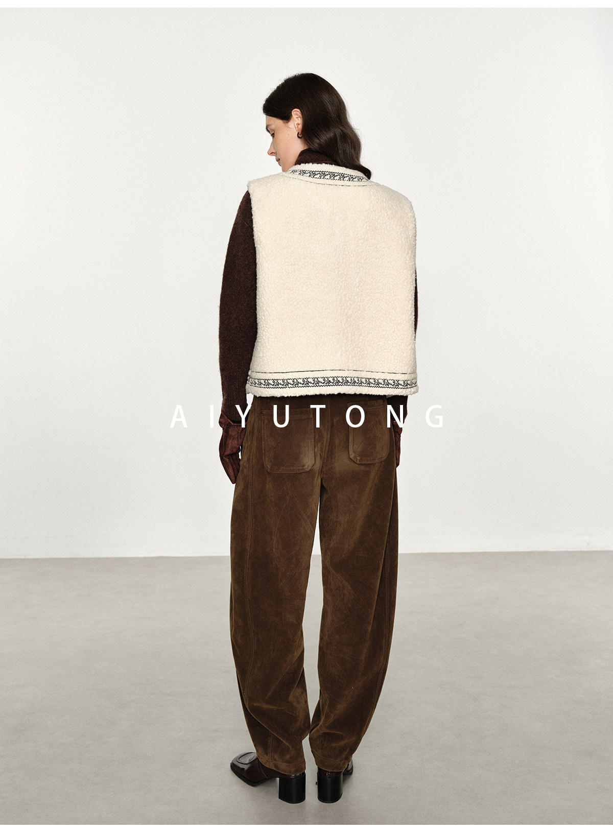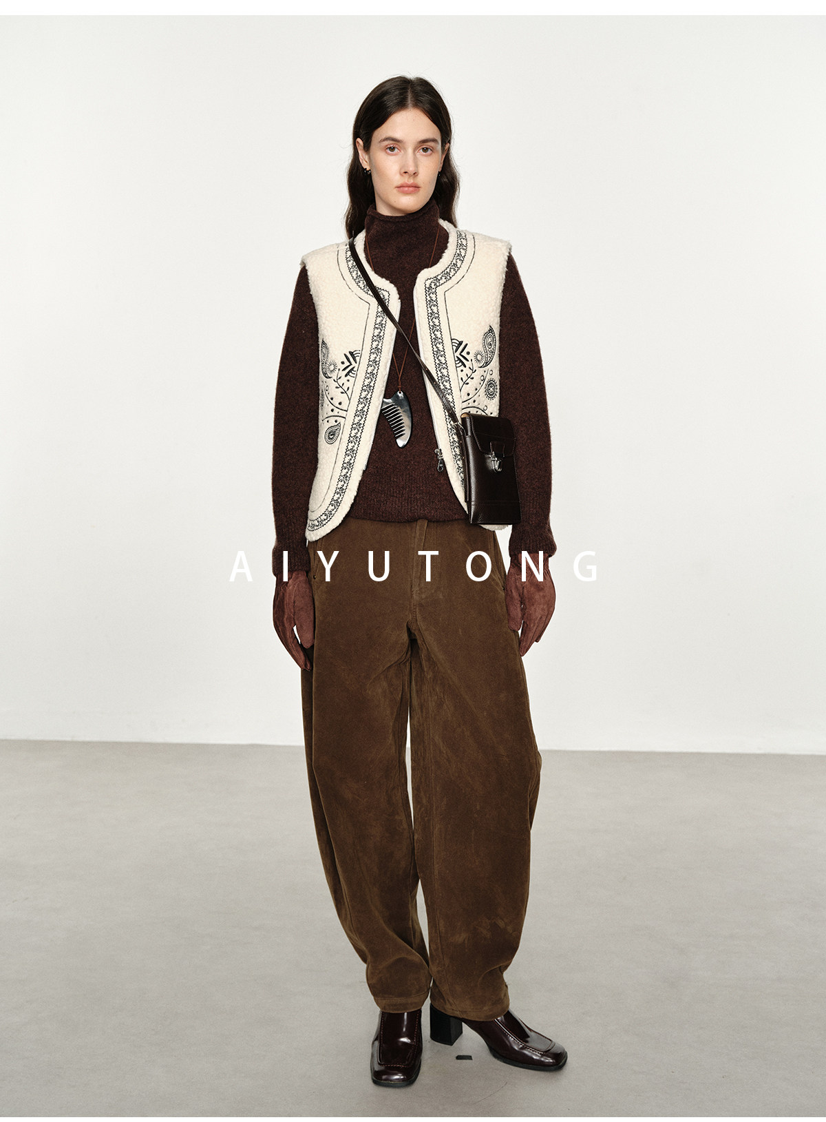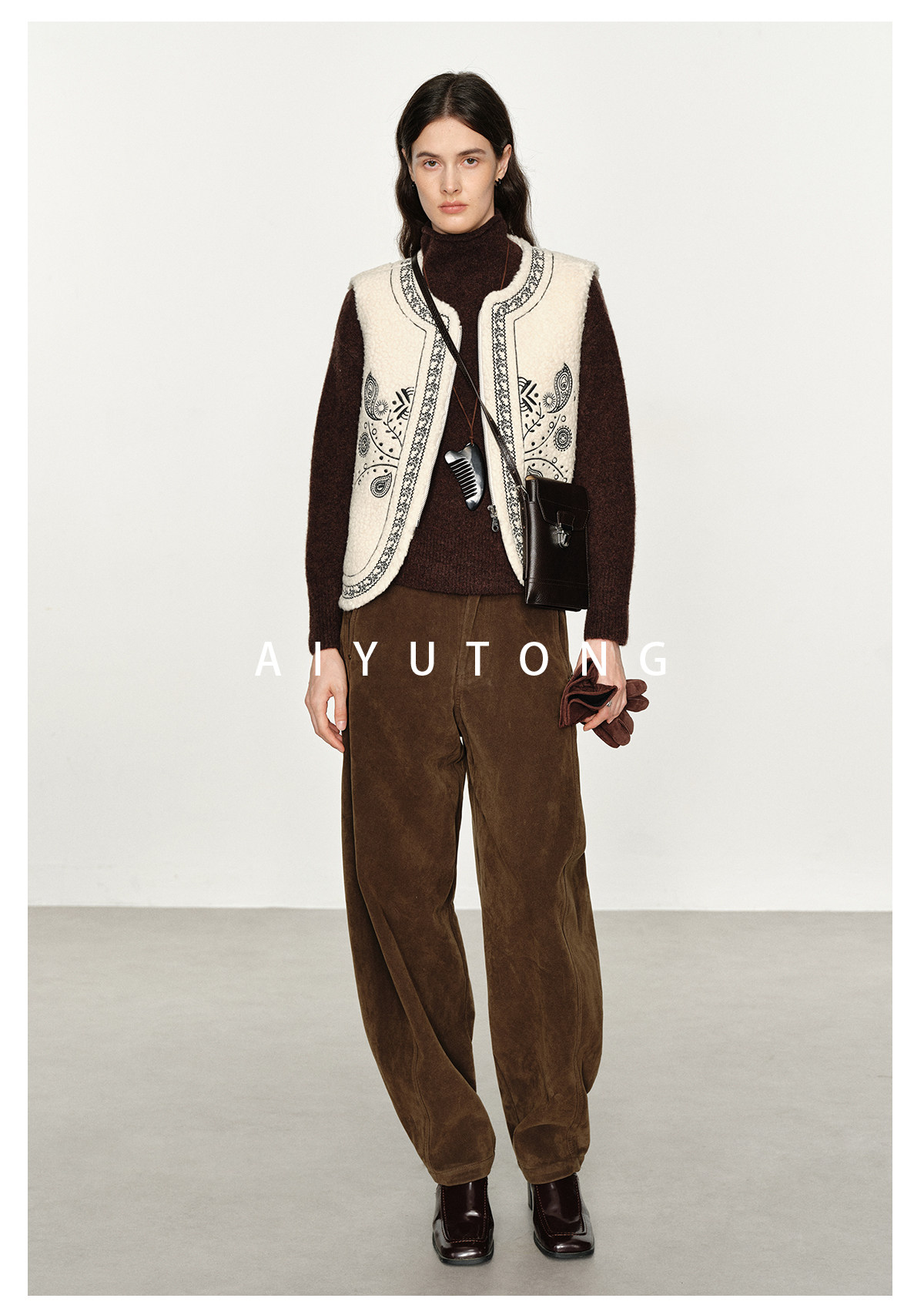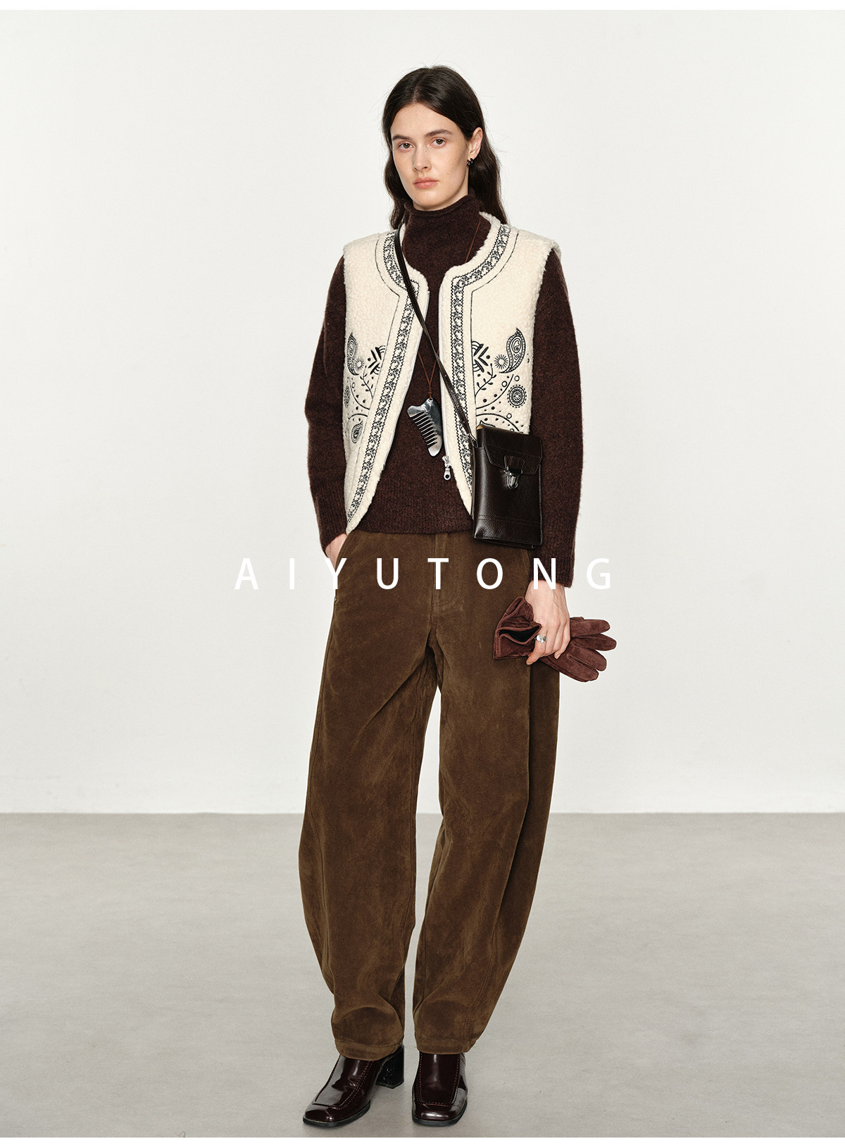 Fashionable and Western style autumn and winter nomadic style fashionable outer wear heavy industry embroidered lambswool blended thermal vest vest for women