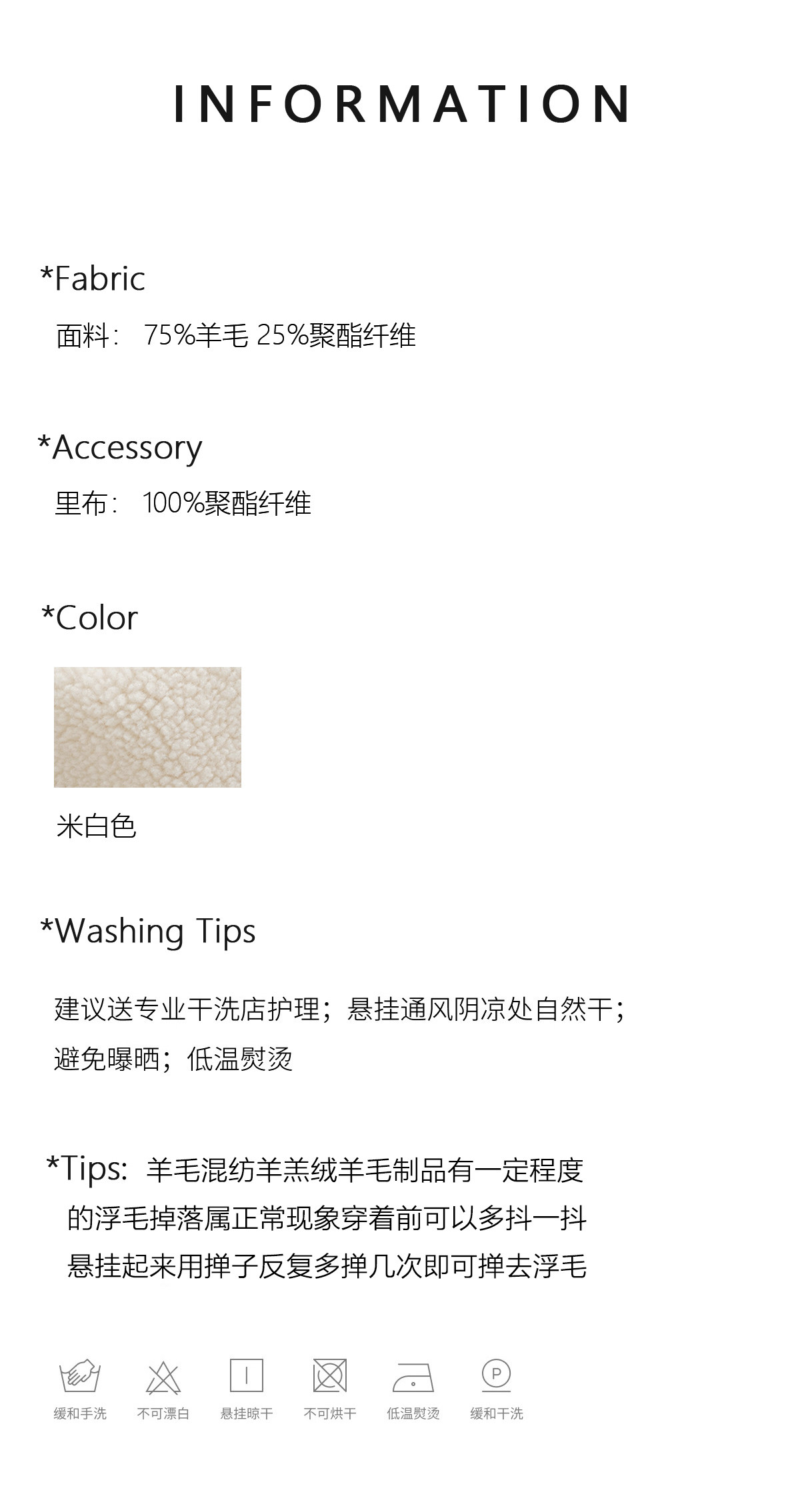Material ingredients 75% sheep wool, 25% new polyester fiber