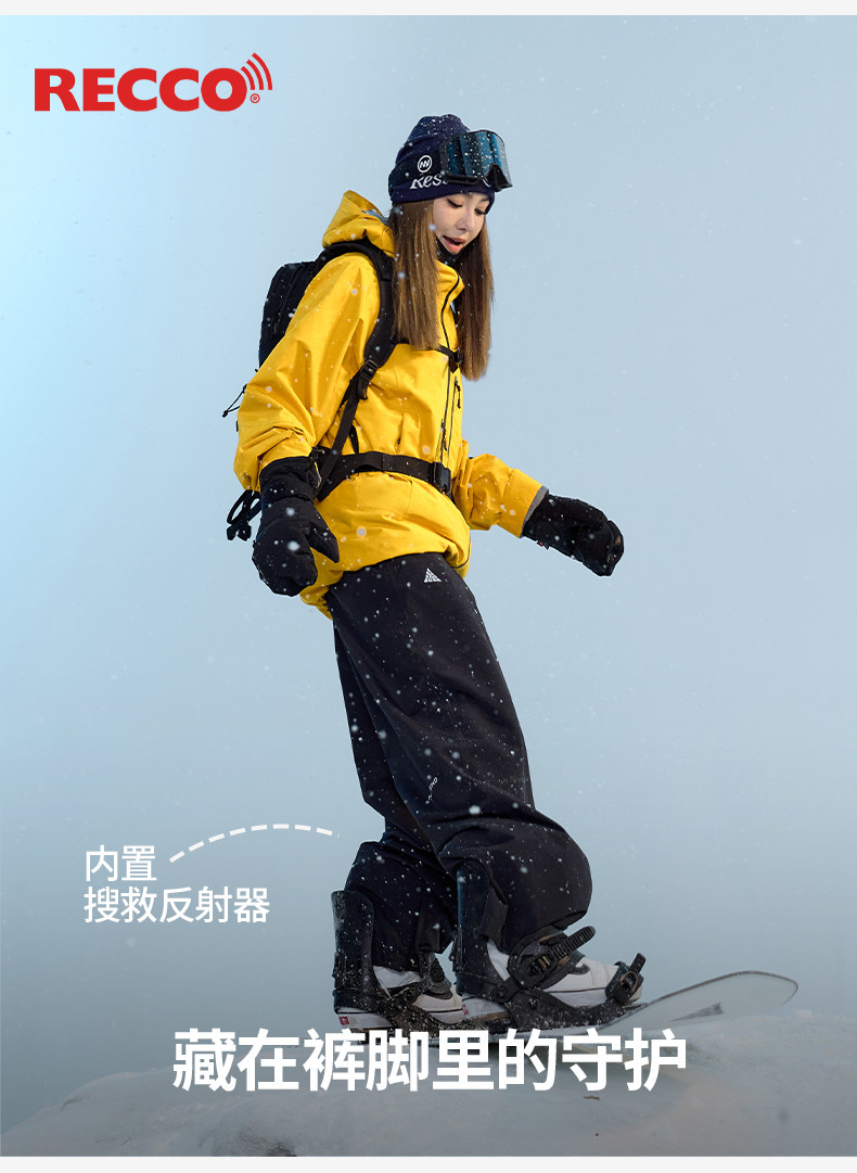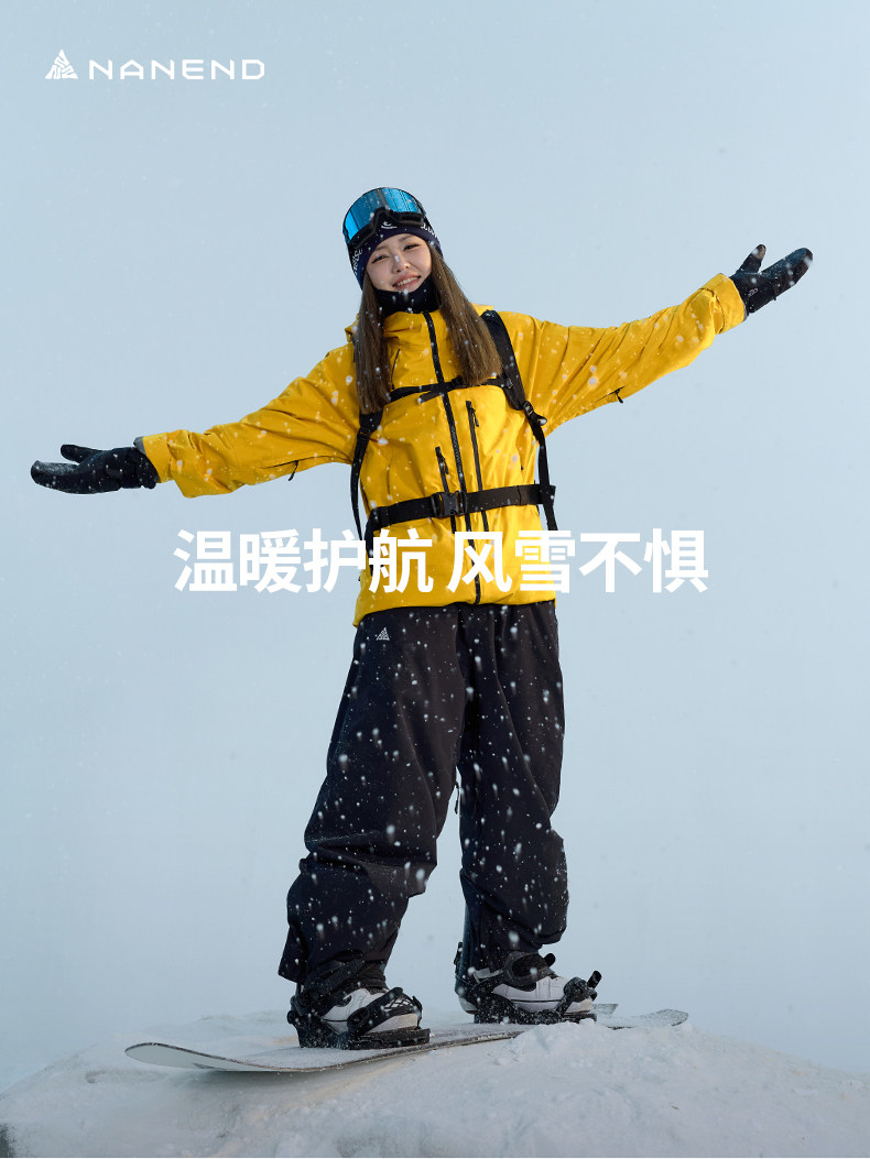 Nanen 25-Year-Old Single and Double Board Ski Pants for Men and Women, Recco Fleece-Lined, Outdoor Snow Warm and Waterproof, Free Fit