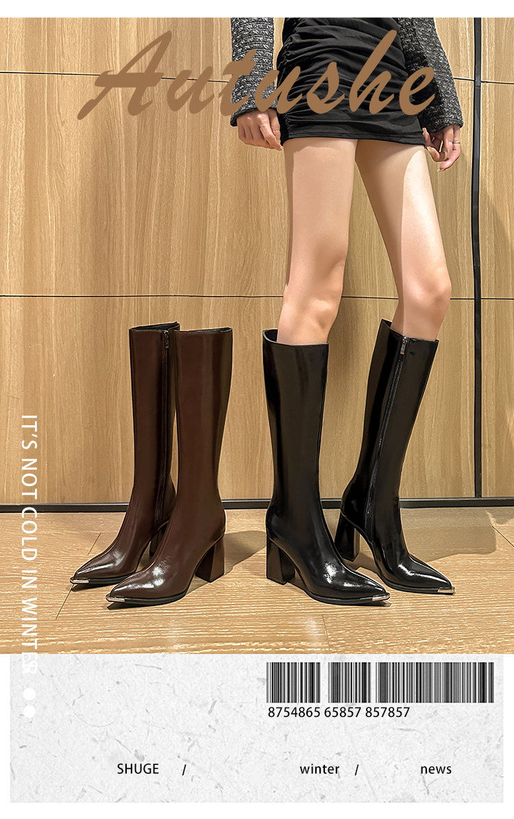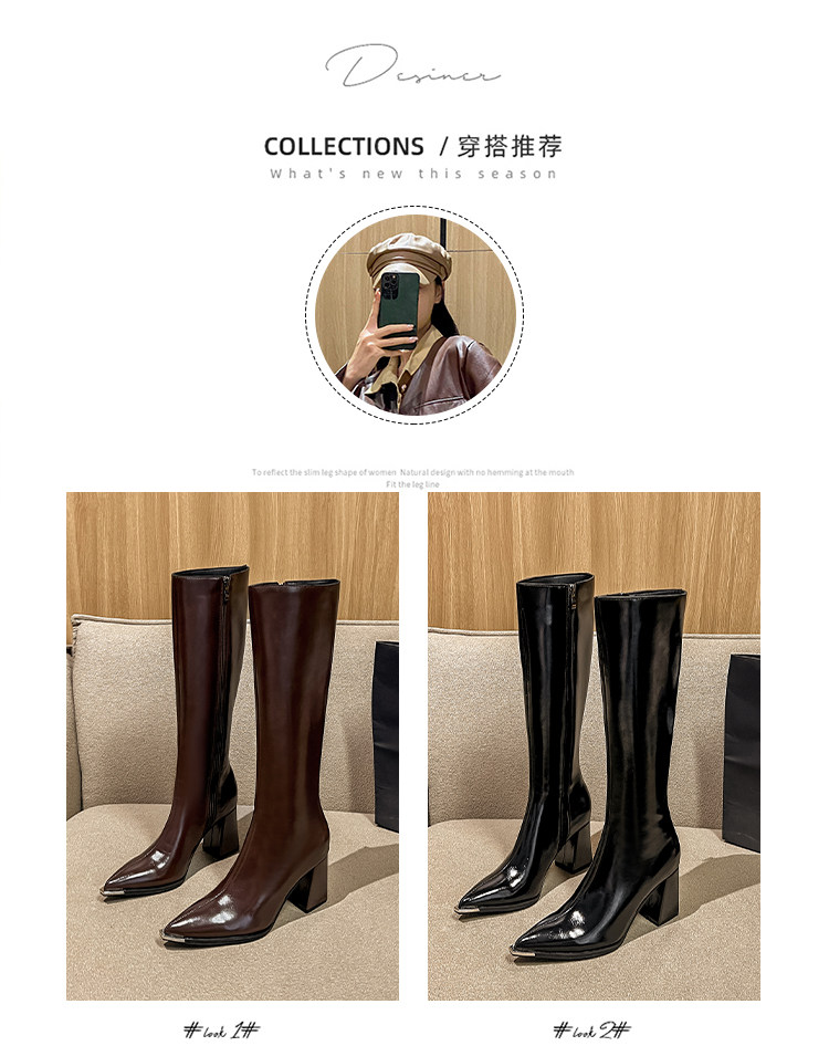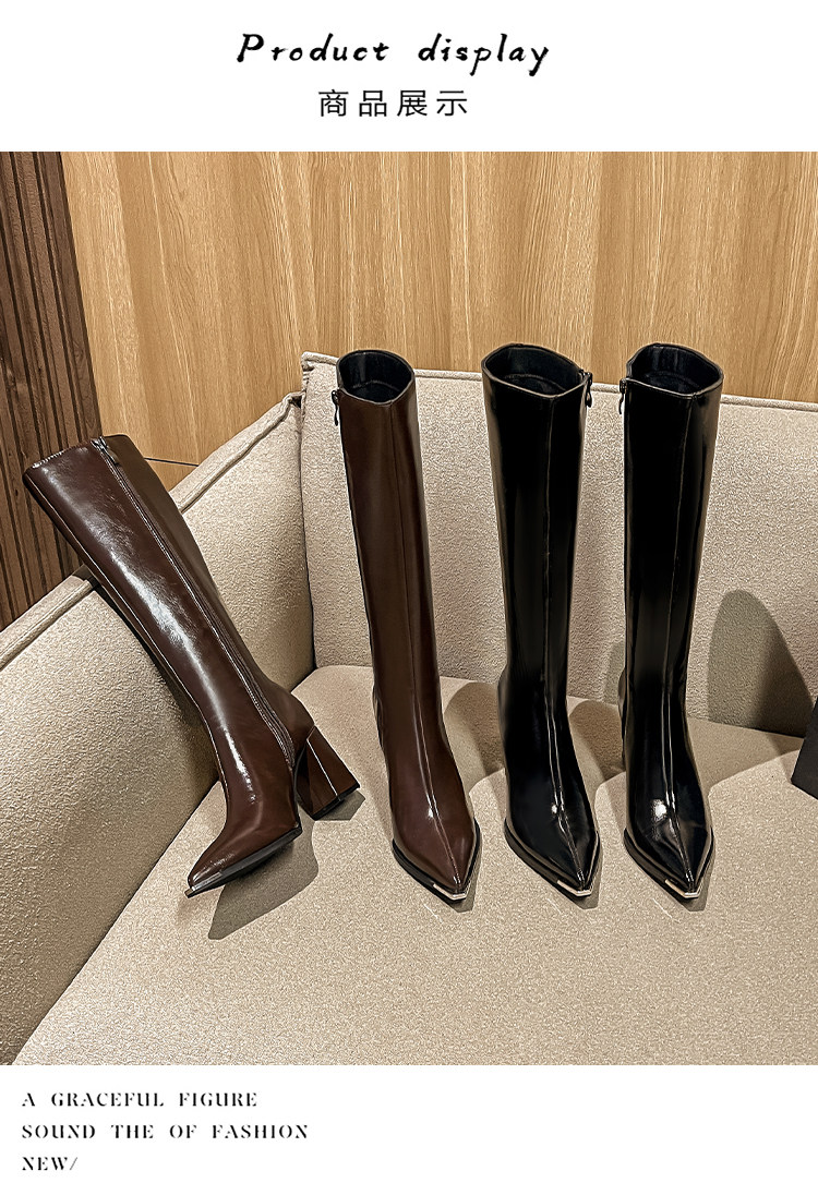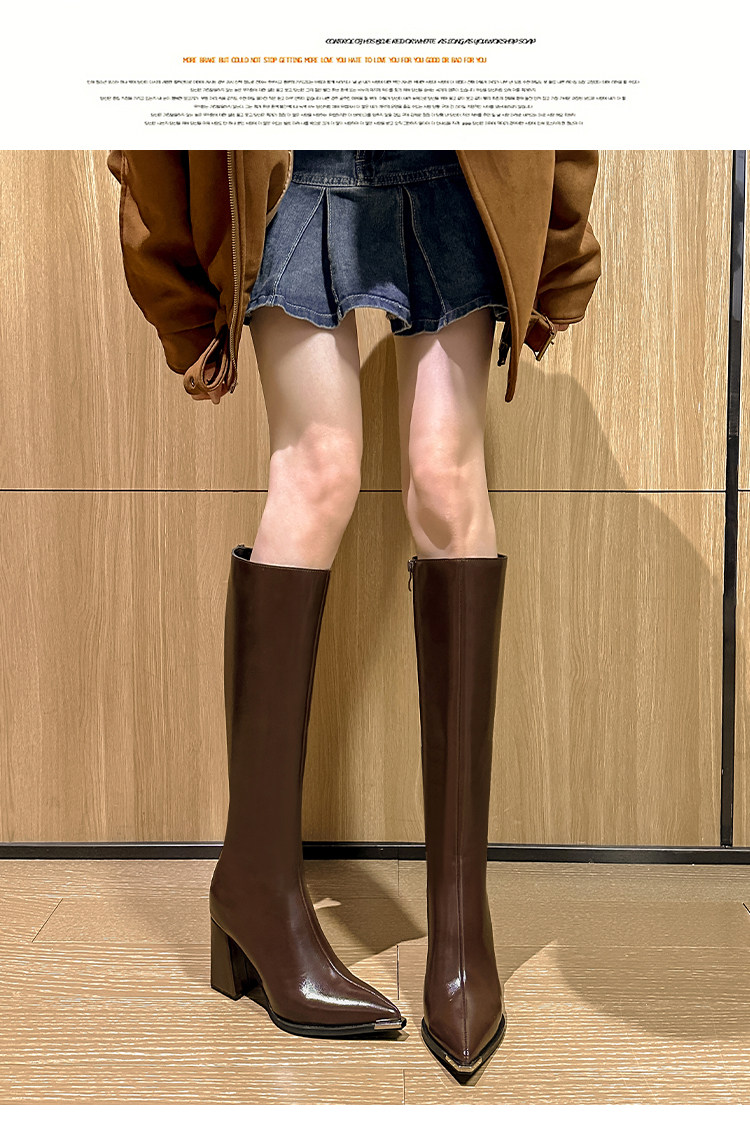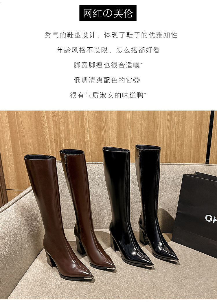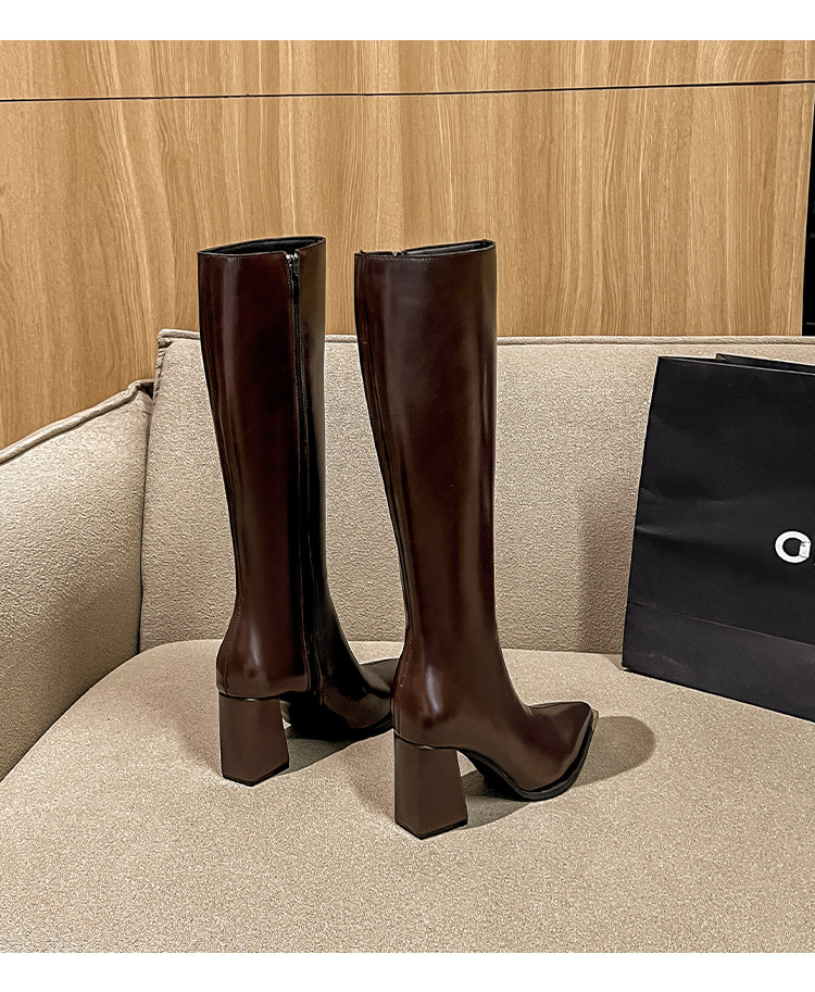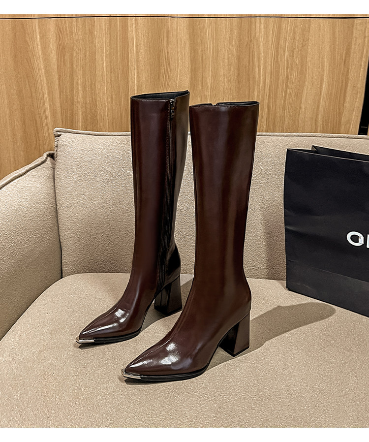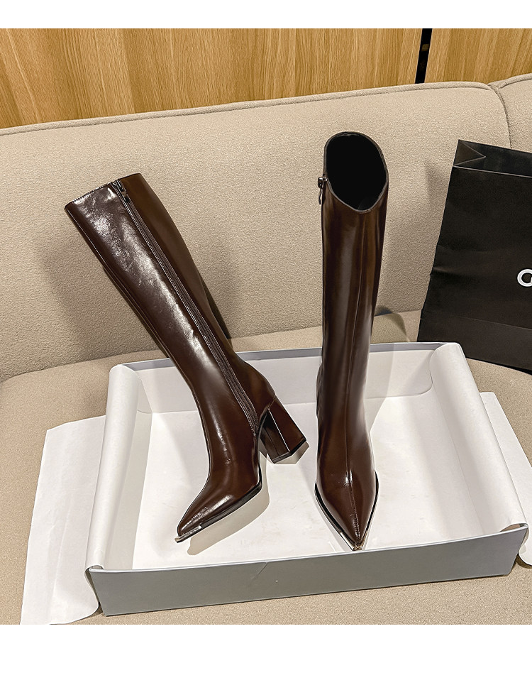 Genuine Leather, Stunningly Beautiful Early Autumn Pointed-Toe High-Heeled Long Boots for Women, 2025 Autumn and Winter, Super Trendy, Fashionable and High-End Long Boots