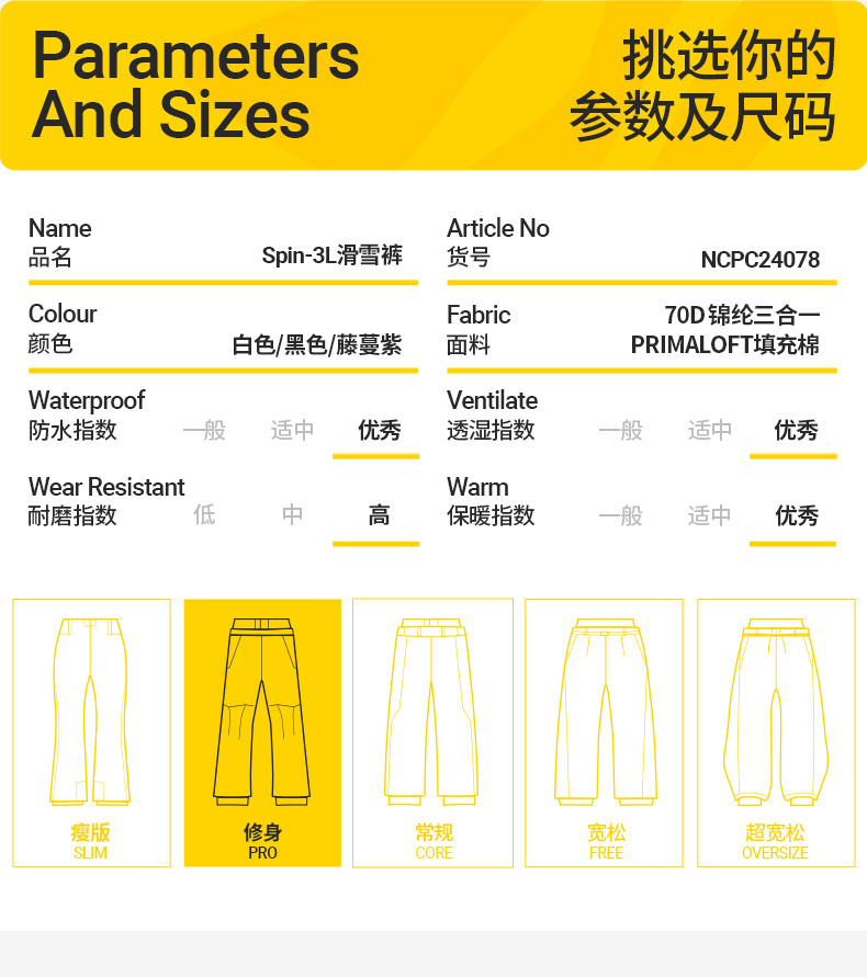 Nanen Ski Pants for Women and Men, Professional P Cotton Warm Outdoor Sports Recco Pants, Pro Version