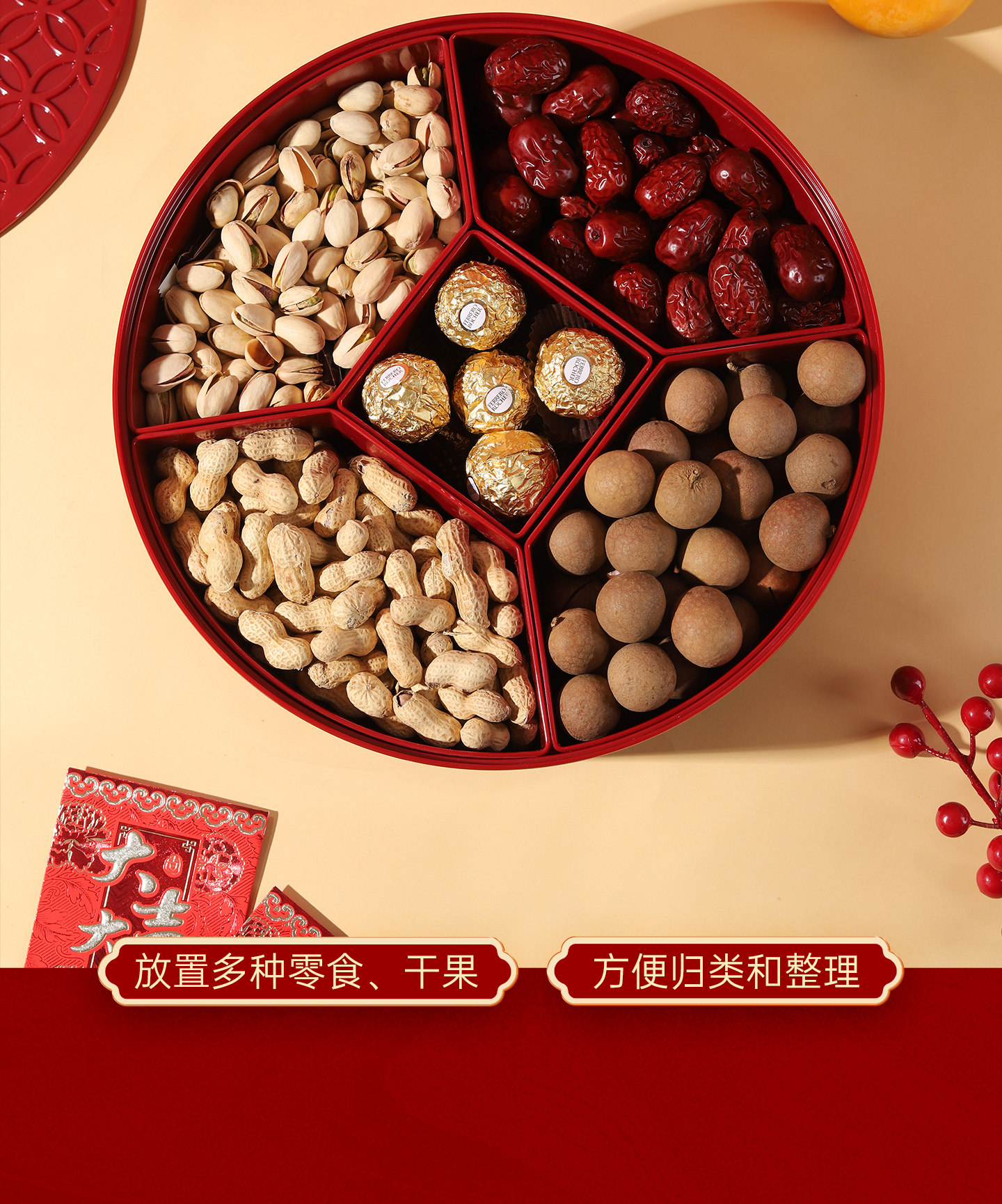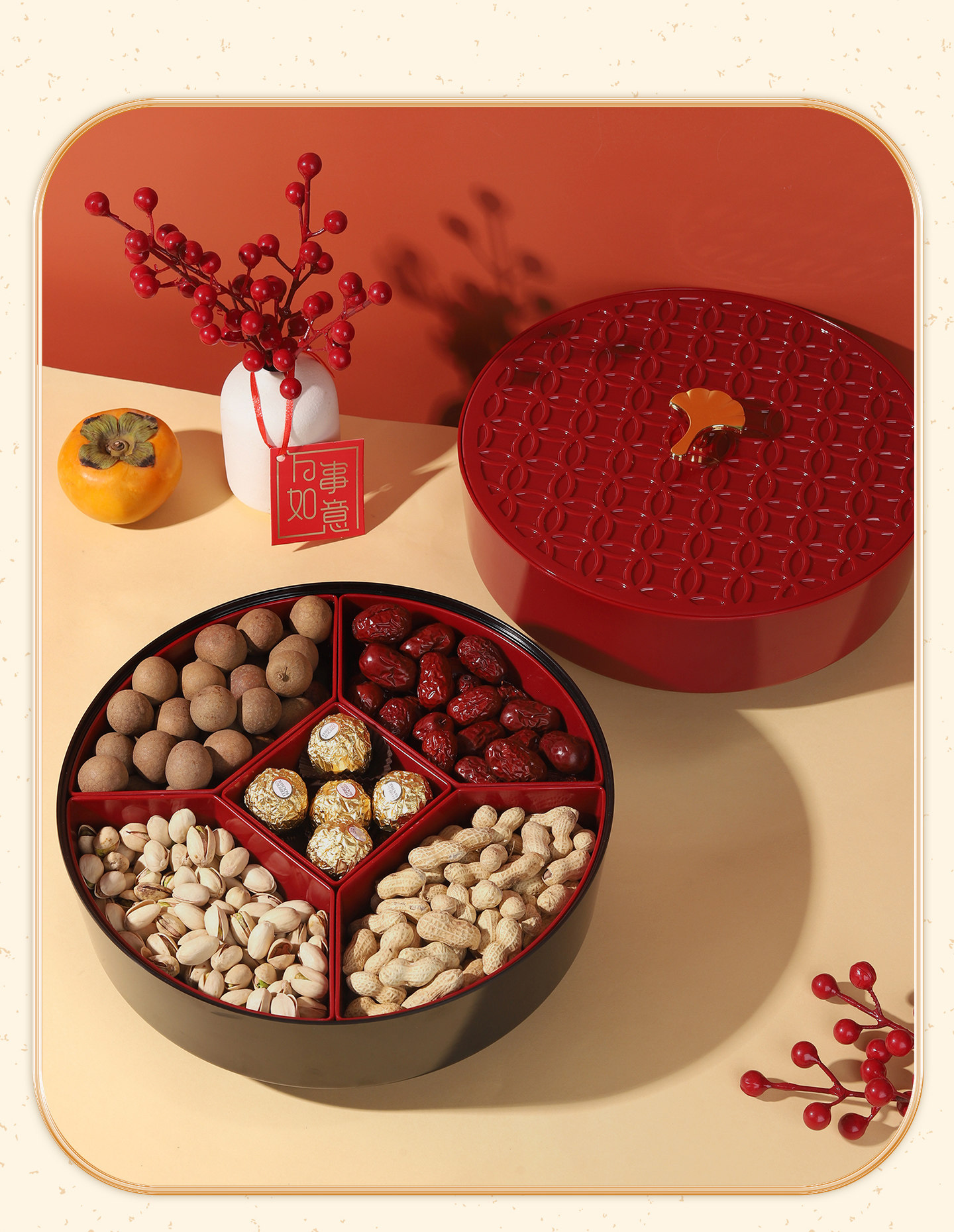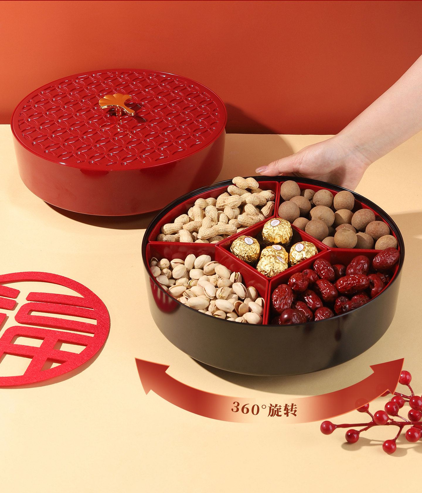 Color Classification [Good Luck-1]5-Compartment Detachable/Bottom 360°Rotate,[Good Luck-2]5-Compartment Detachable/Bottom 360°Rotate,[Ginkgo]7-Compartment Detachable / 360° Bottom Base°Rotate,[Peace and Joy]7-Compartment Detachable / 360° Bottom Base°Rotate,[Eight Treasures Fruit Box]5-Compartment Detachable/Bottom 360°Rotate