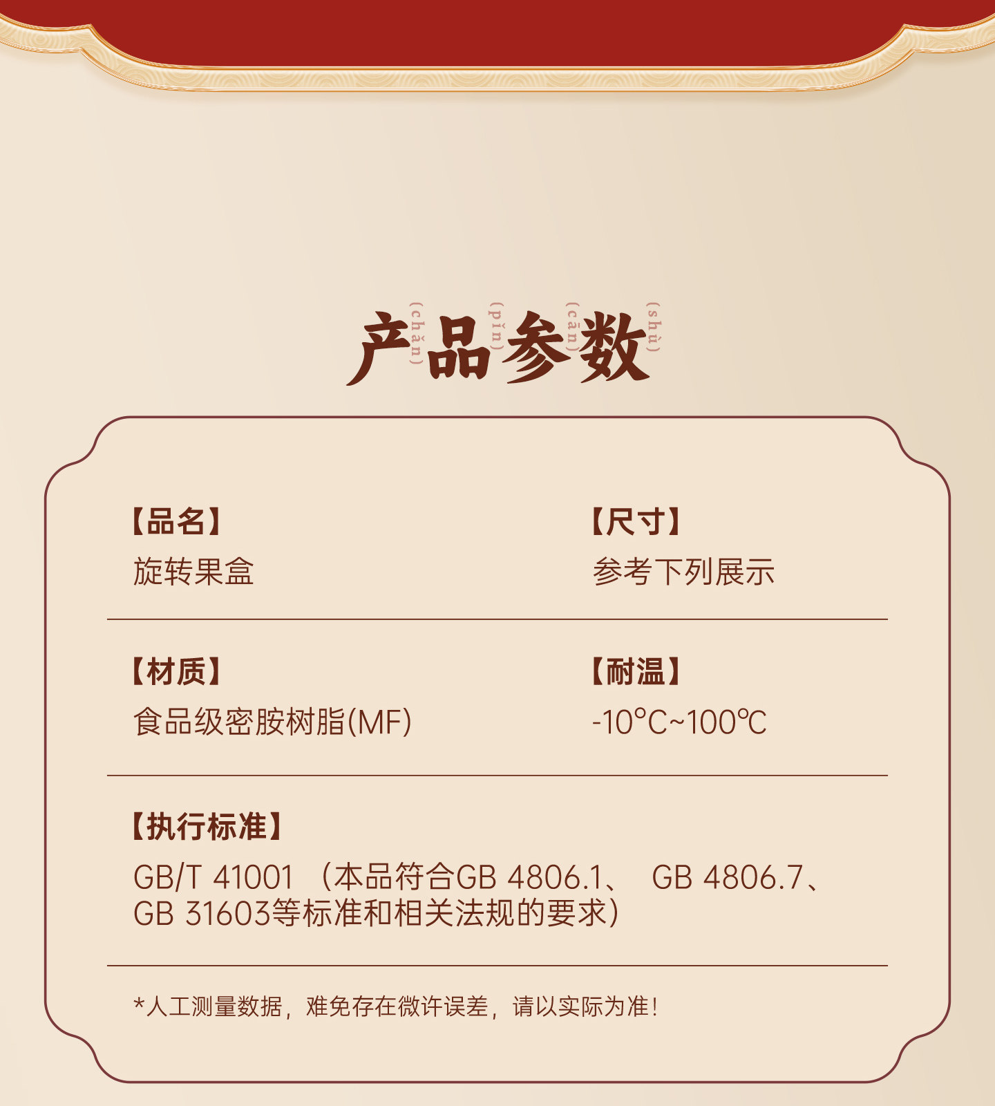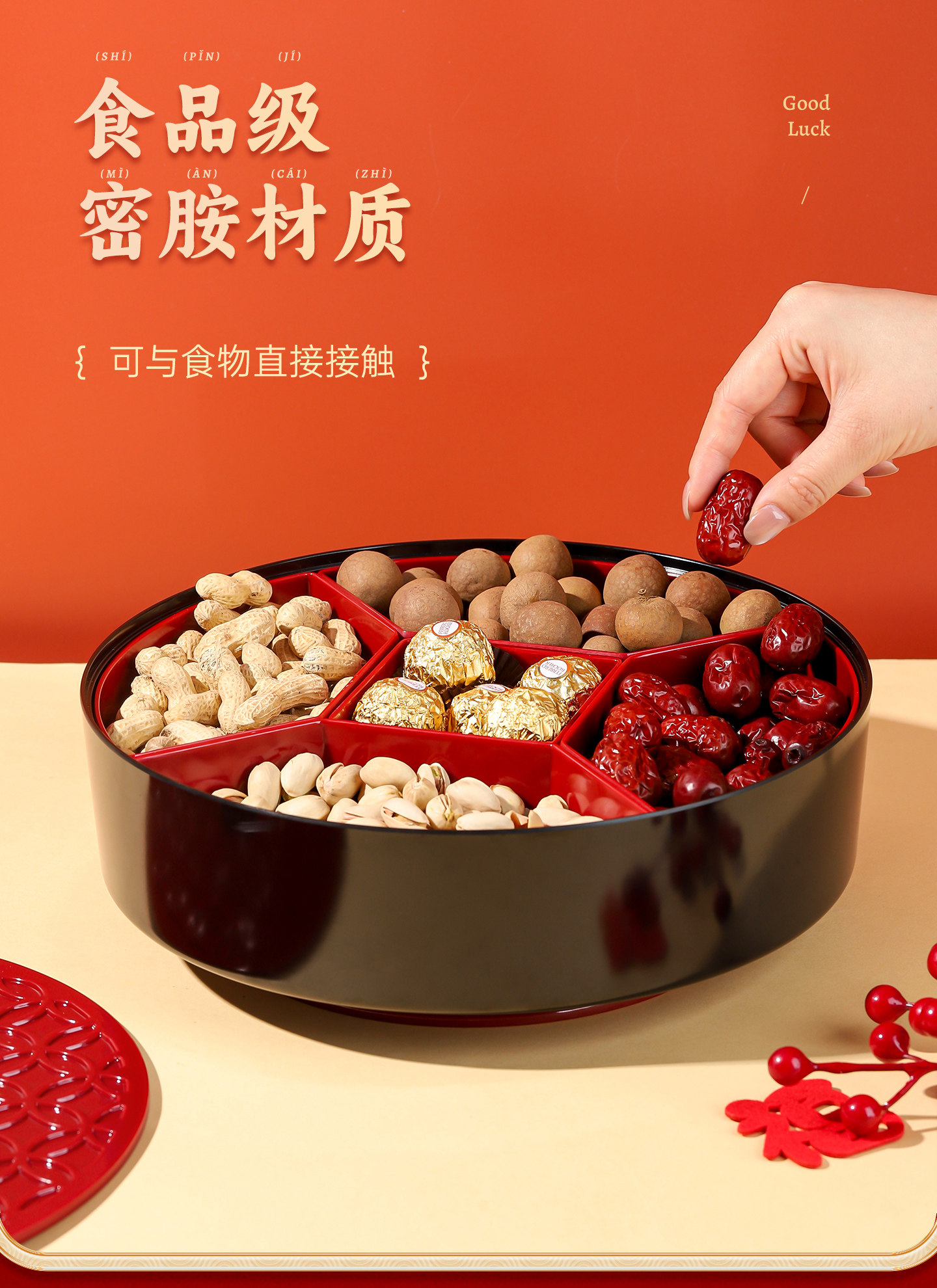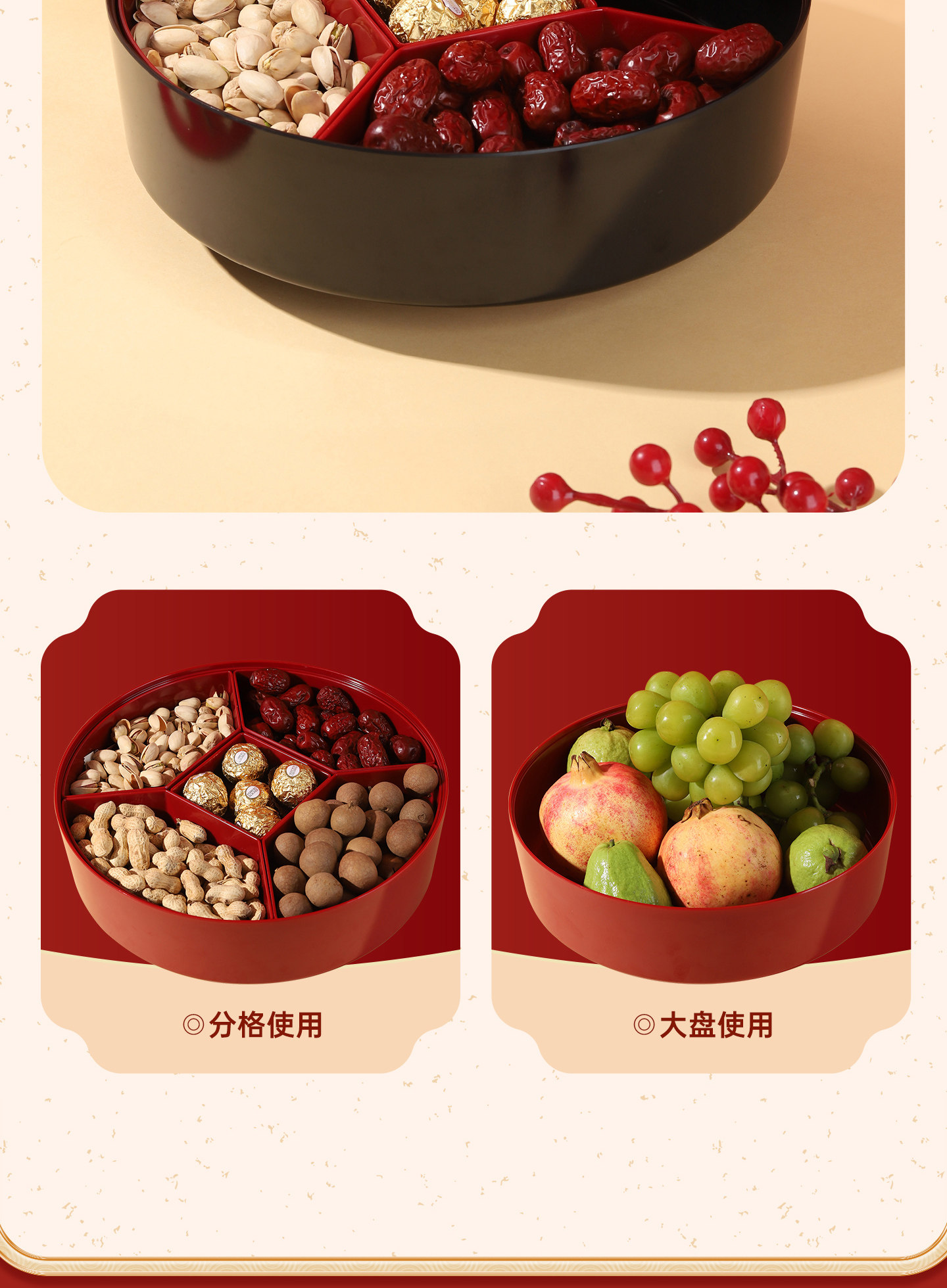 Color Classification [Good Luck-1]5-Compartment Detachable/Bottom 360°Rotate,[Good Luck-2]5-Compartment Detachable/Bottom 360°Rotate,[Ginkgo]7-Compartment Detachable / 360° Bottom Base°Rotate,[Peace and Joy]7-Compartment Detachable / 360° Bottom Base°Rotate,[Eight Treasures Fruit Box]5-Compartment Detachable/Bottom 360°Rotate