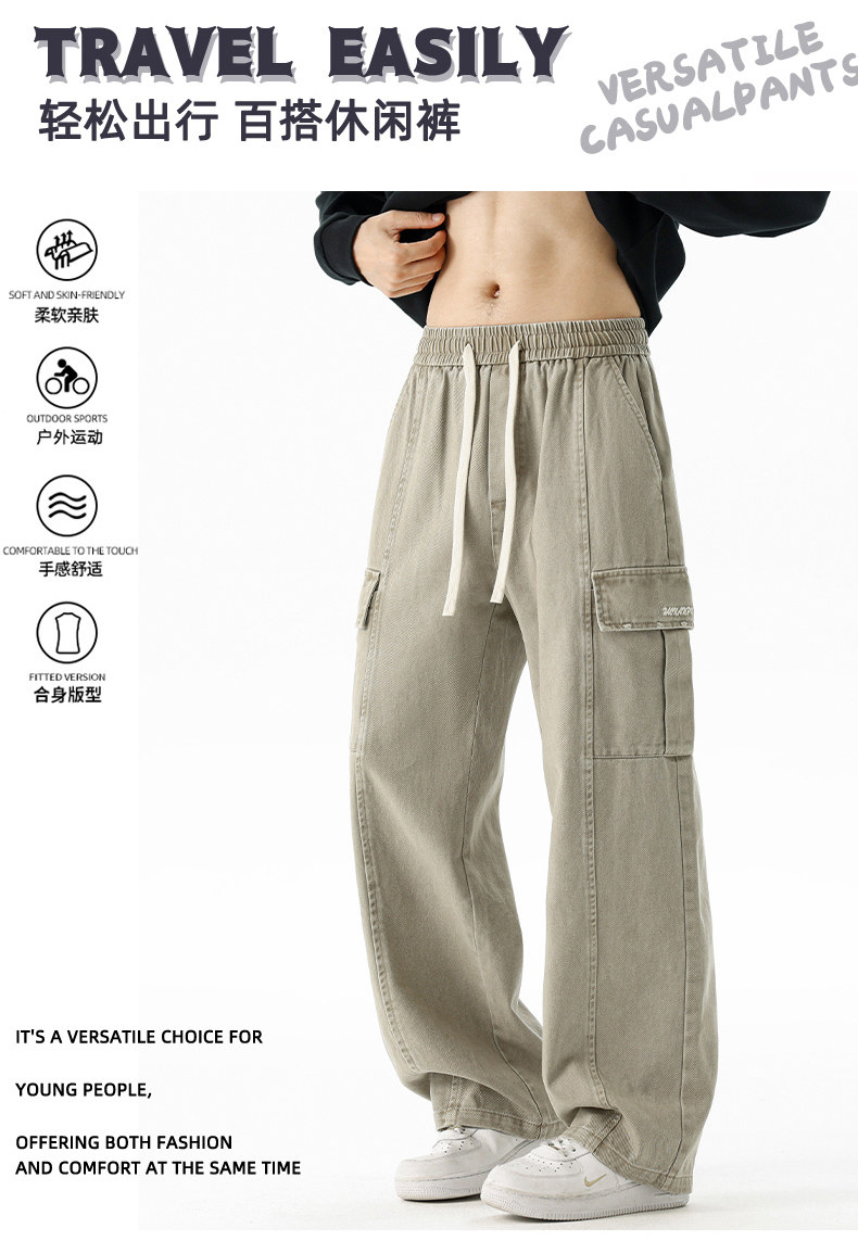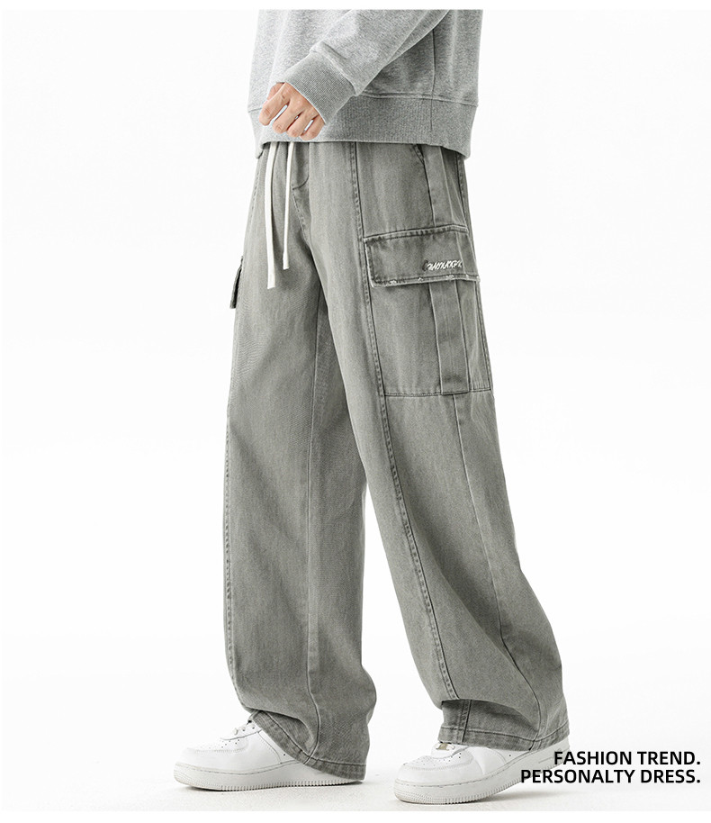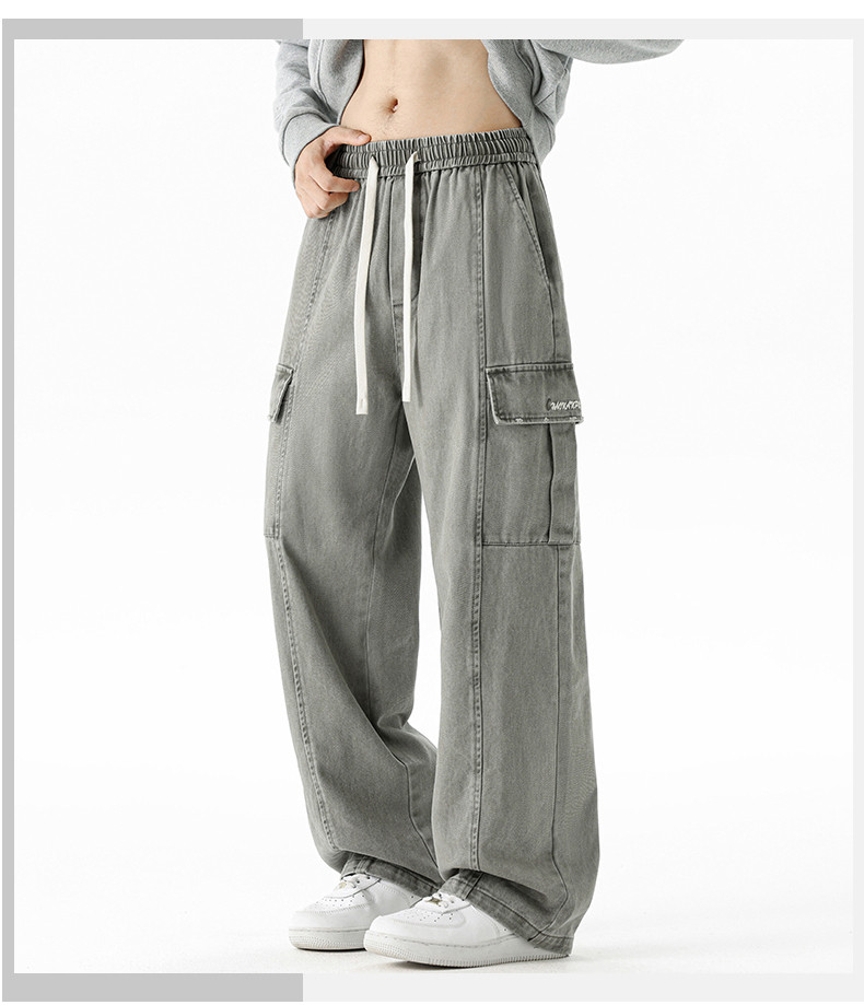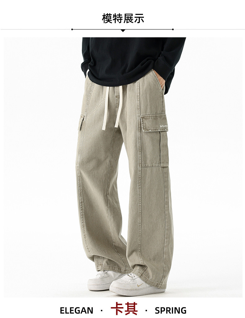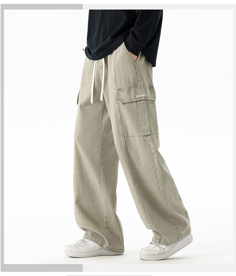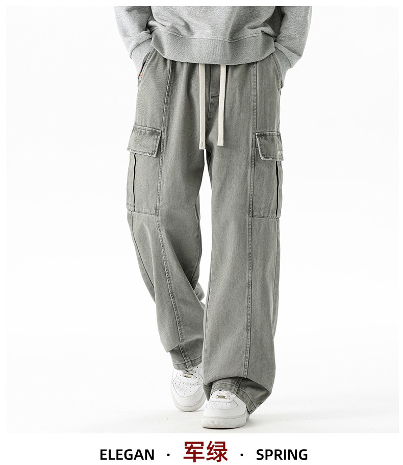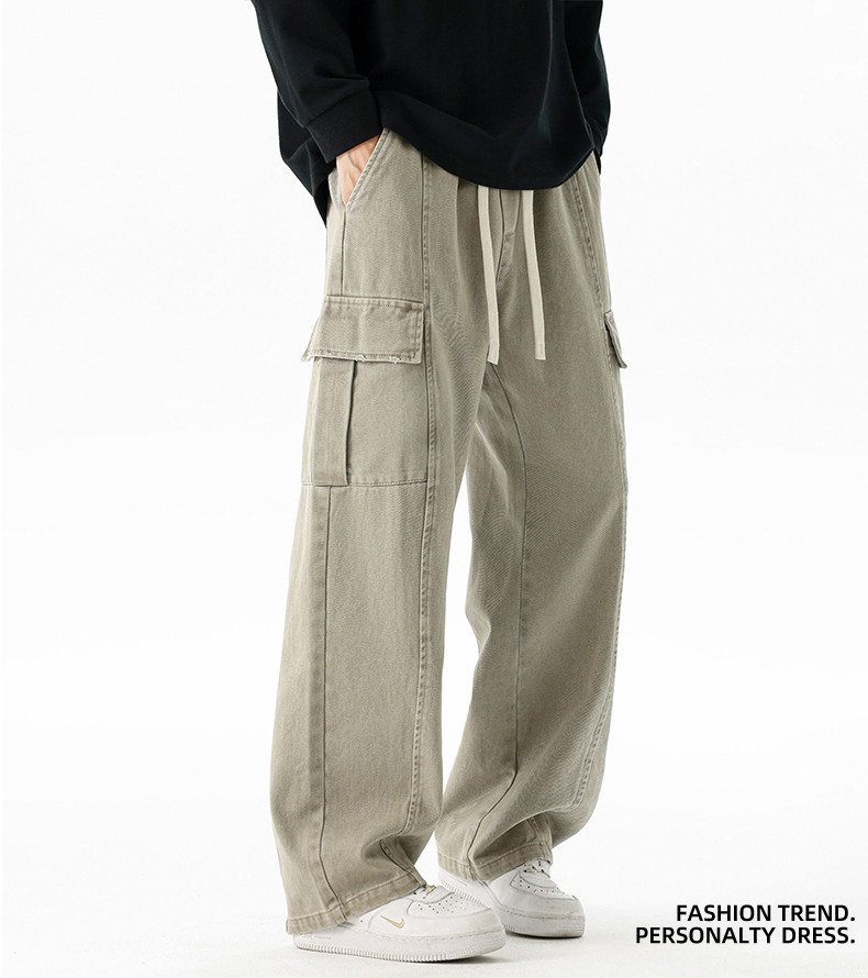 Pure cotton overalls men's autumn and winter 2025 new American retro multi-pocket loose wide-leg casual trousers