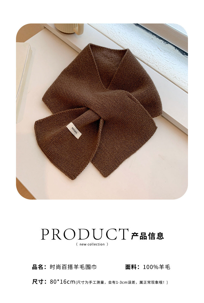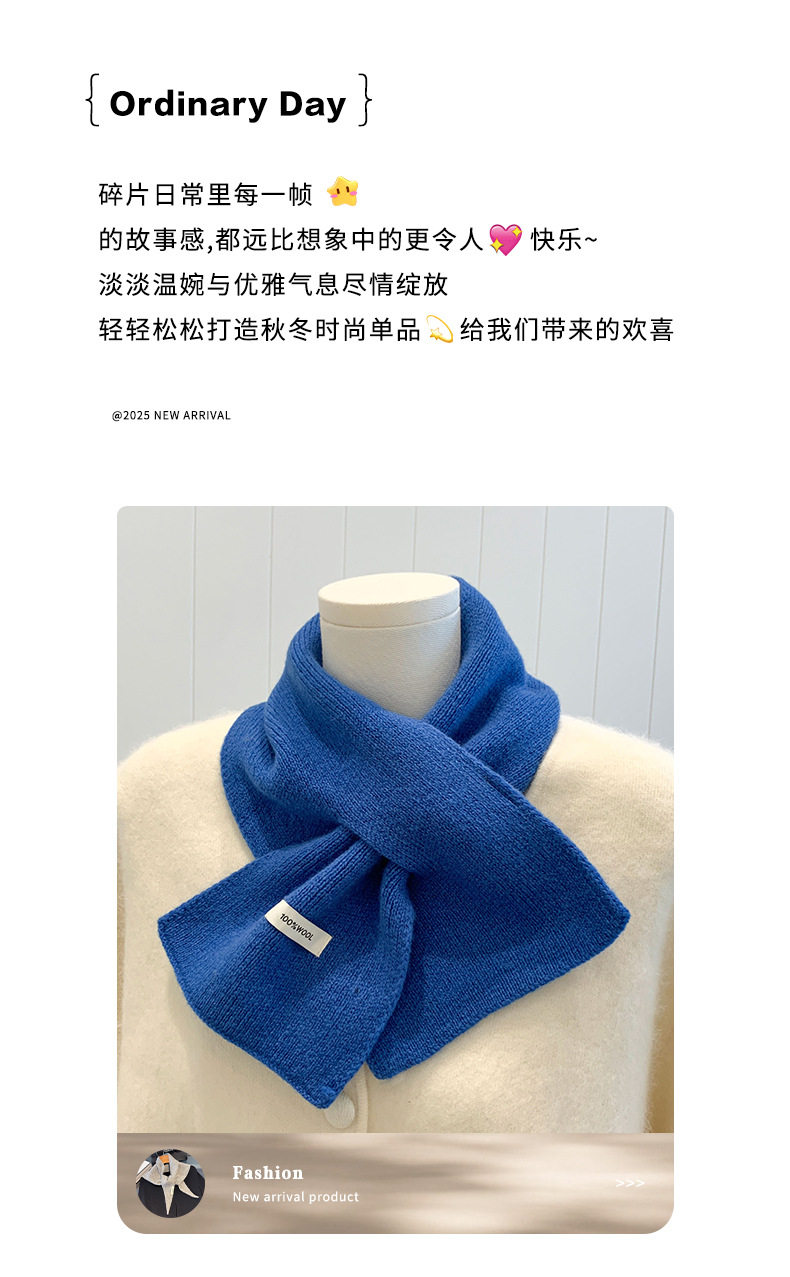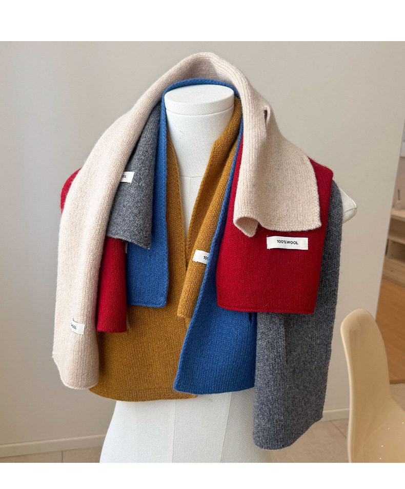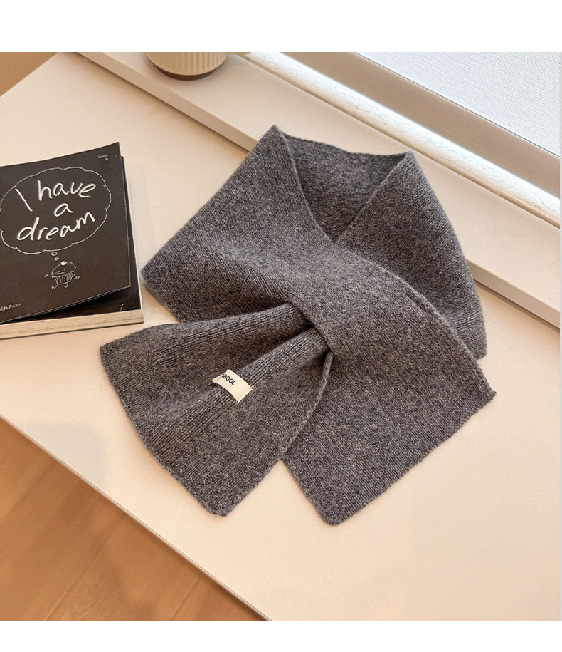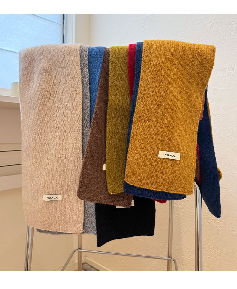 2024 New 100% Wool Knitted Scarf for Women, Autumn and Winter Korean Style, Versatile Warm Cross Scarf for Couples, Men's Small Scarf