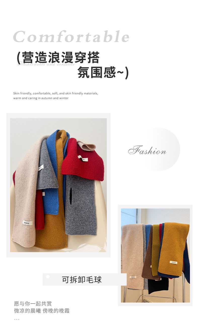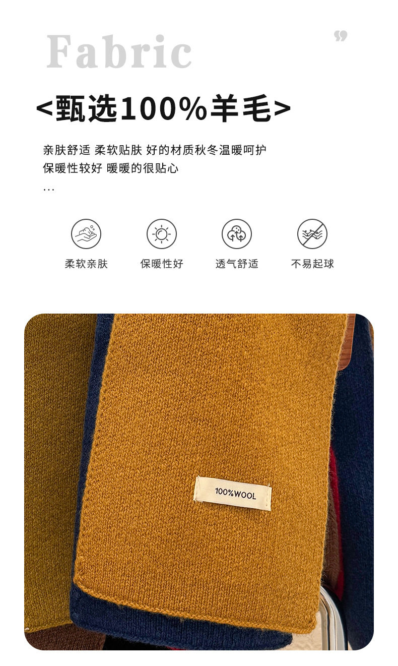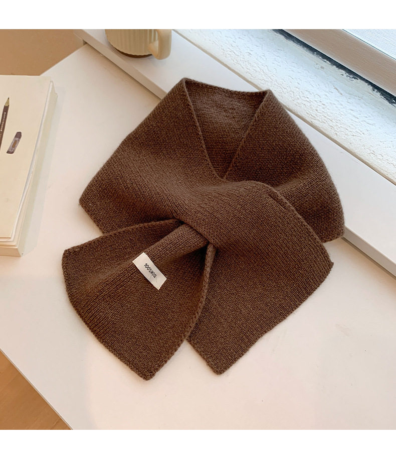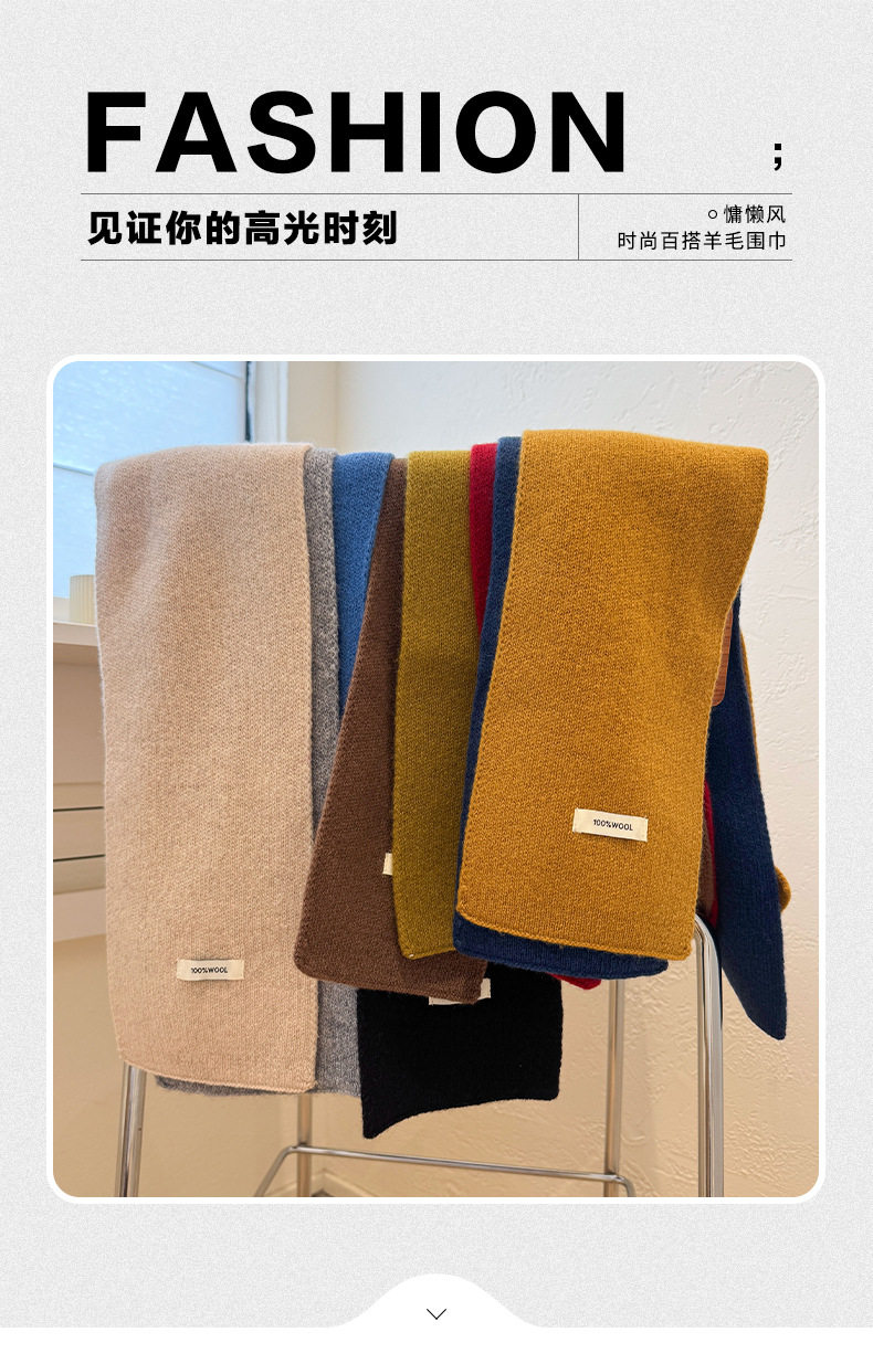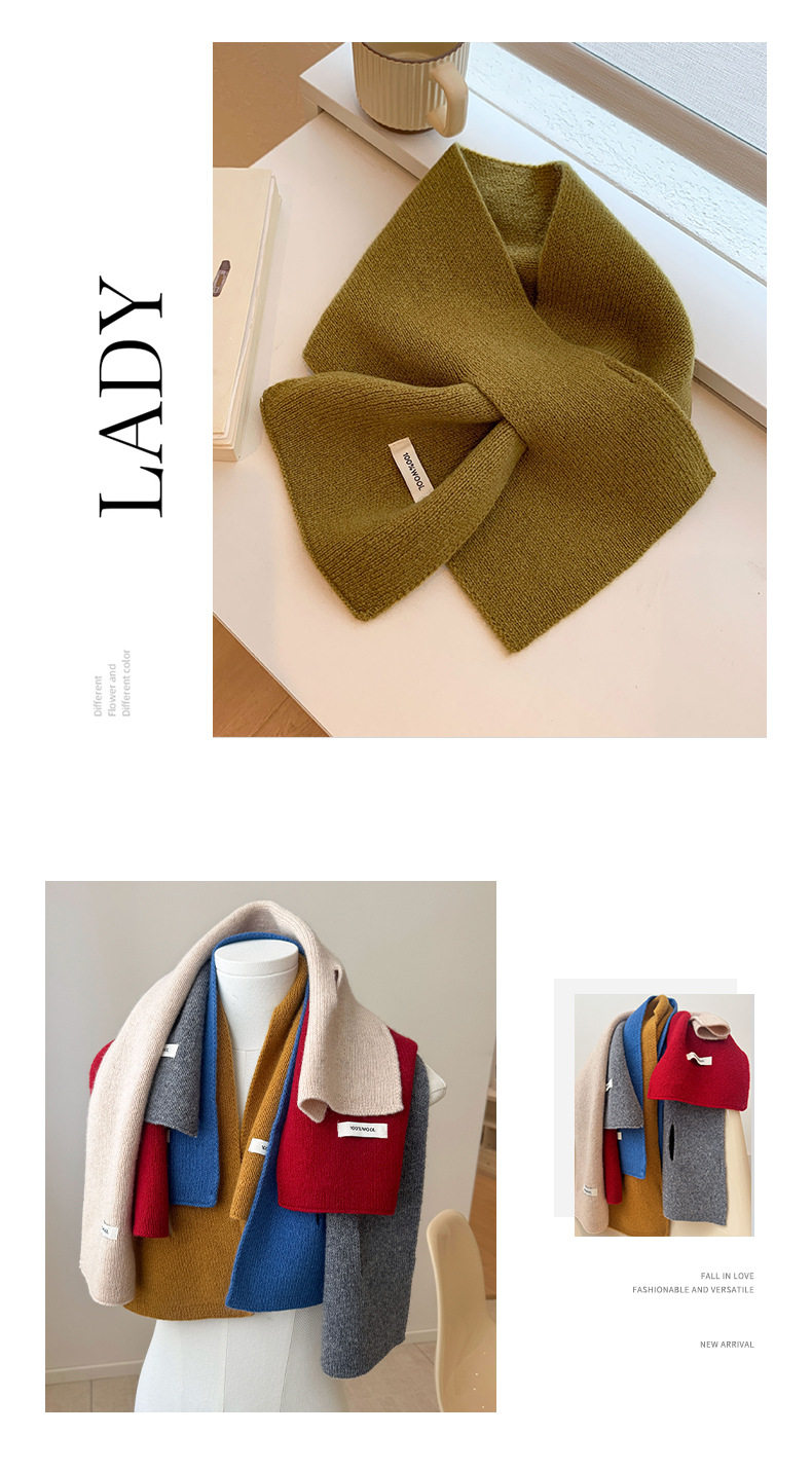 2024 New 100% Wool Knitted Scarf for Women, Autumn and Winter Korean Style, Versatile Warm Cross Scarf for Couples, Men's Small Scarf
