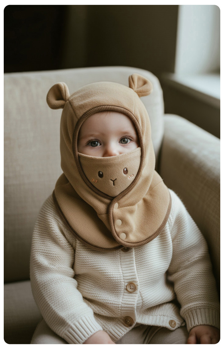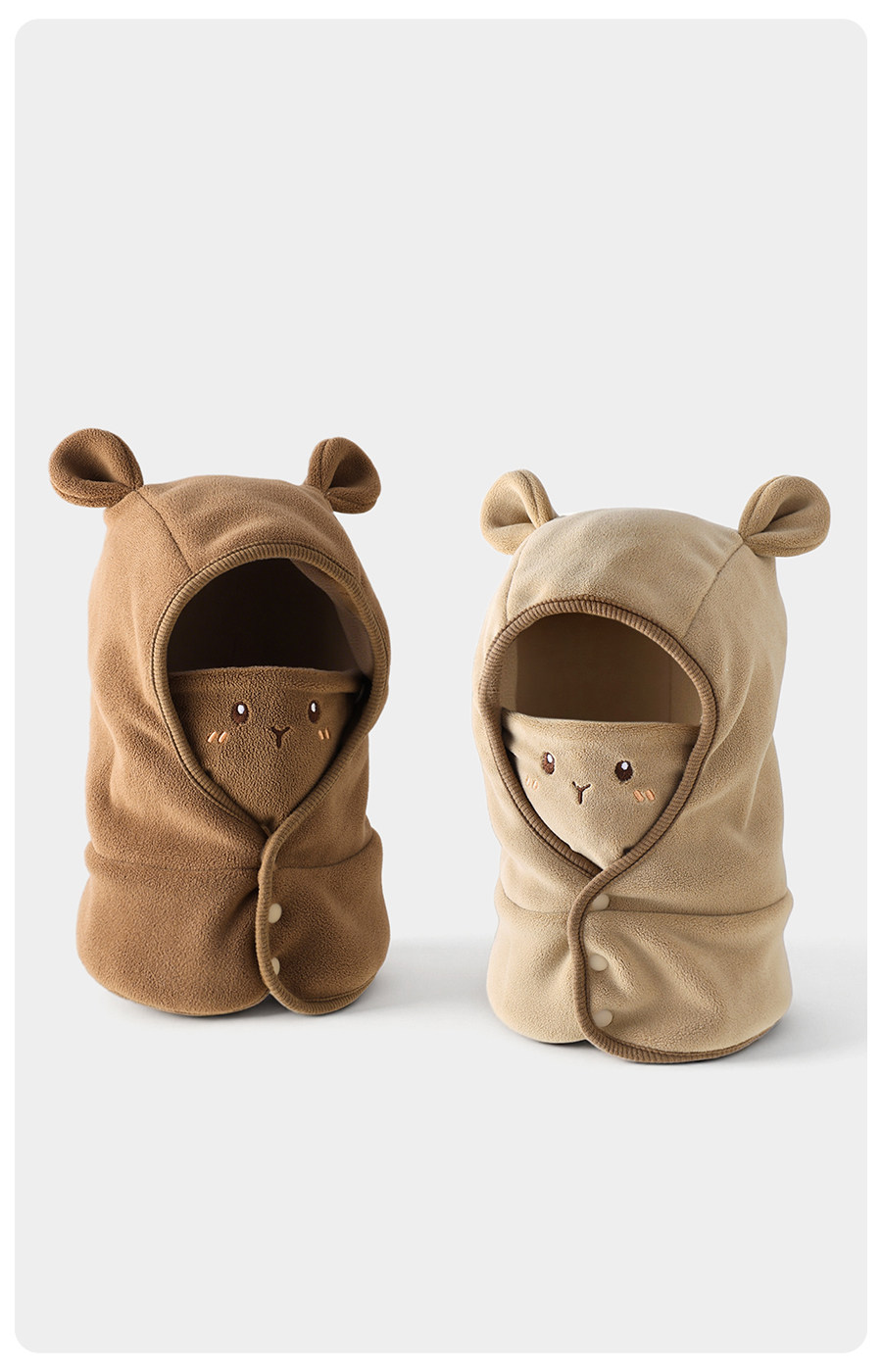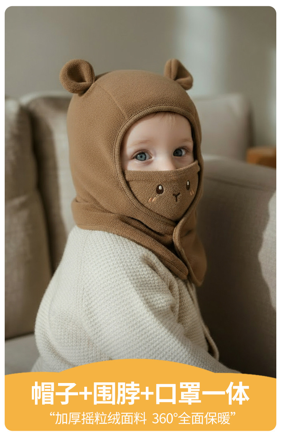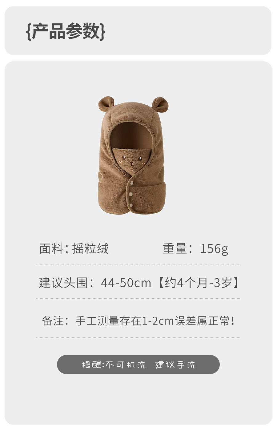 Baby Hat Autumn and Winter Baby Neck Warmer Mask Integrated Boys' Plush Girls' Ear Protection Hat Warm Face Mask Children