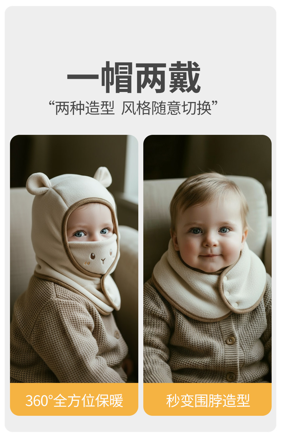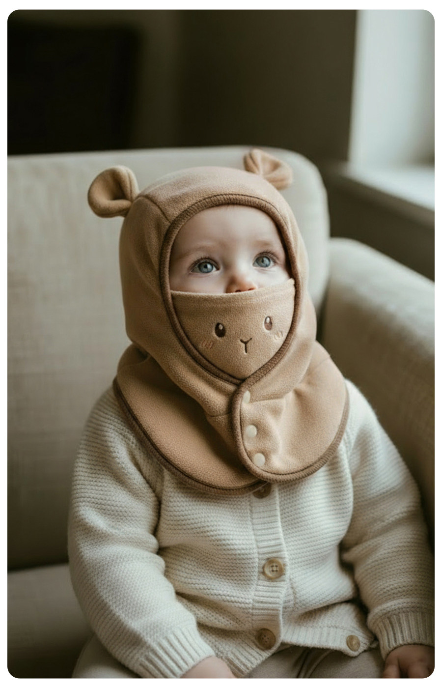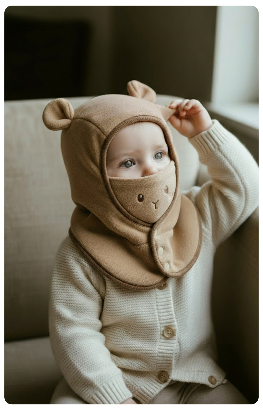 Baby Hat Autumn and Winter Baby Neck Warmer Mask Integrated Boys' Plush Girls' Ear Protection Hat Warm Face Mask Children