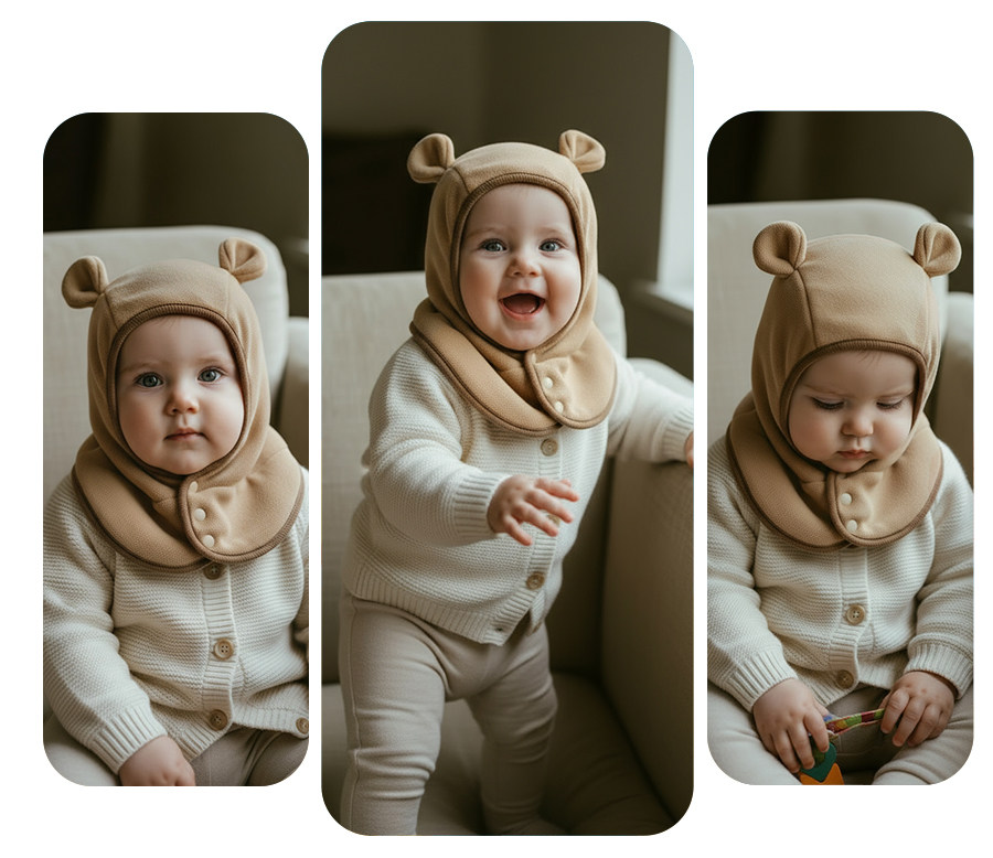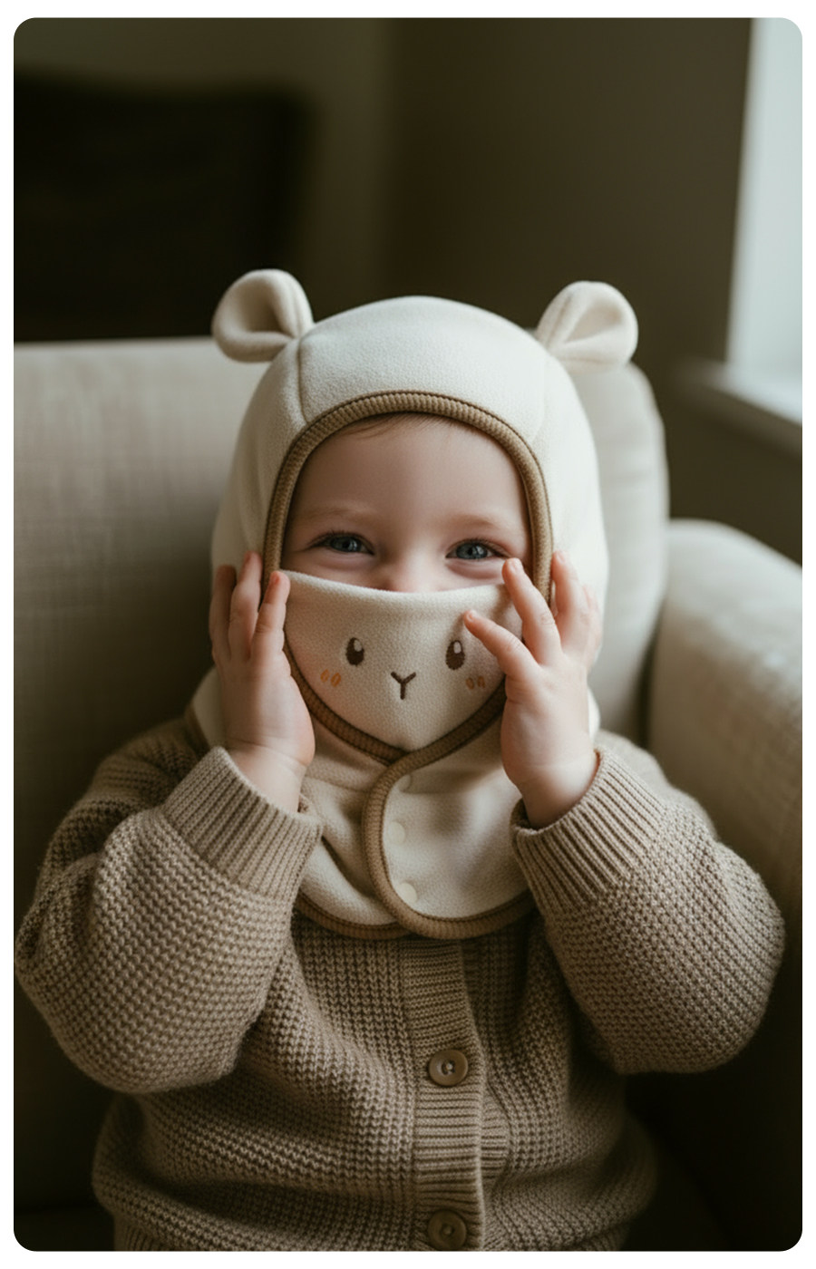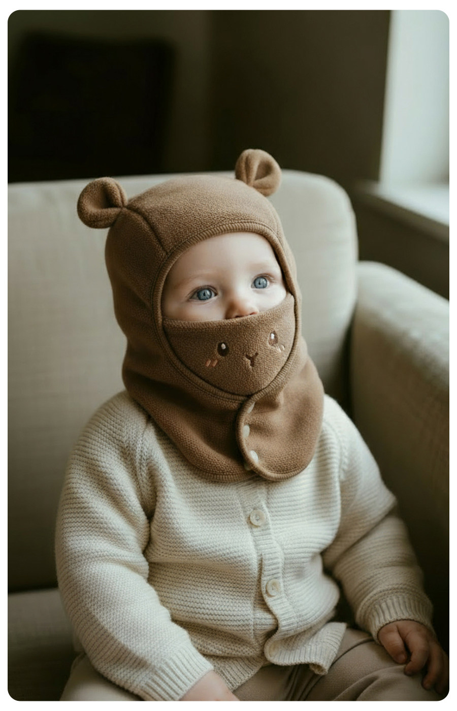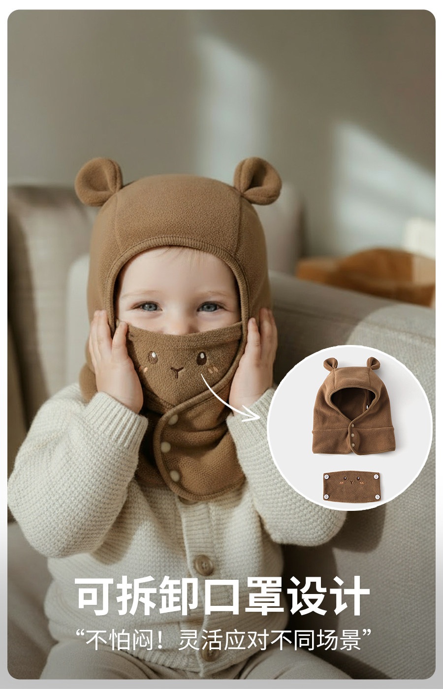 Baby Hat Autumn and Winter Baby Neck Warmer Mask Integrated Boys' Plush Girls' Ear Protection Hat Warm Face Mask Children