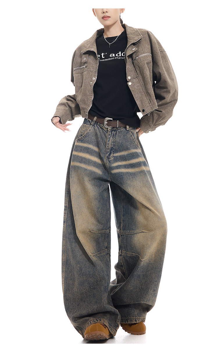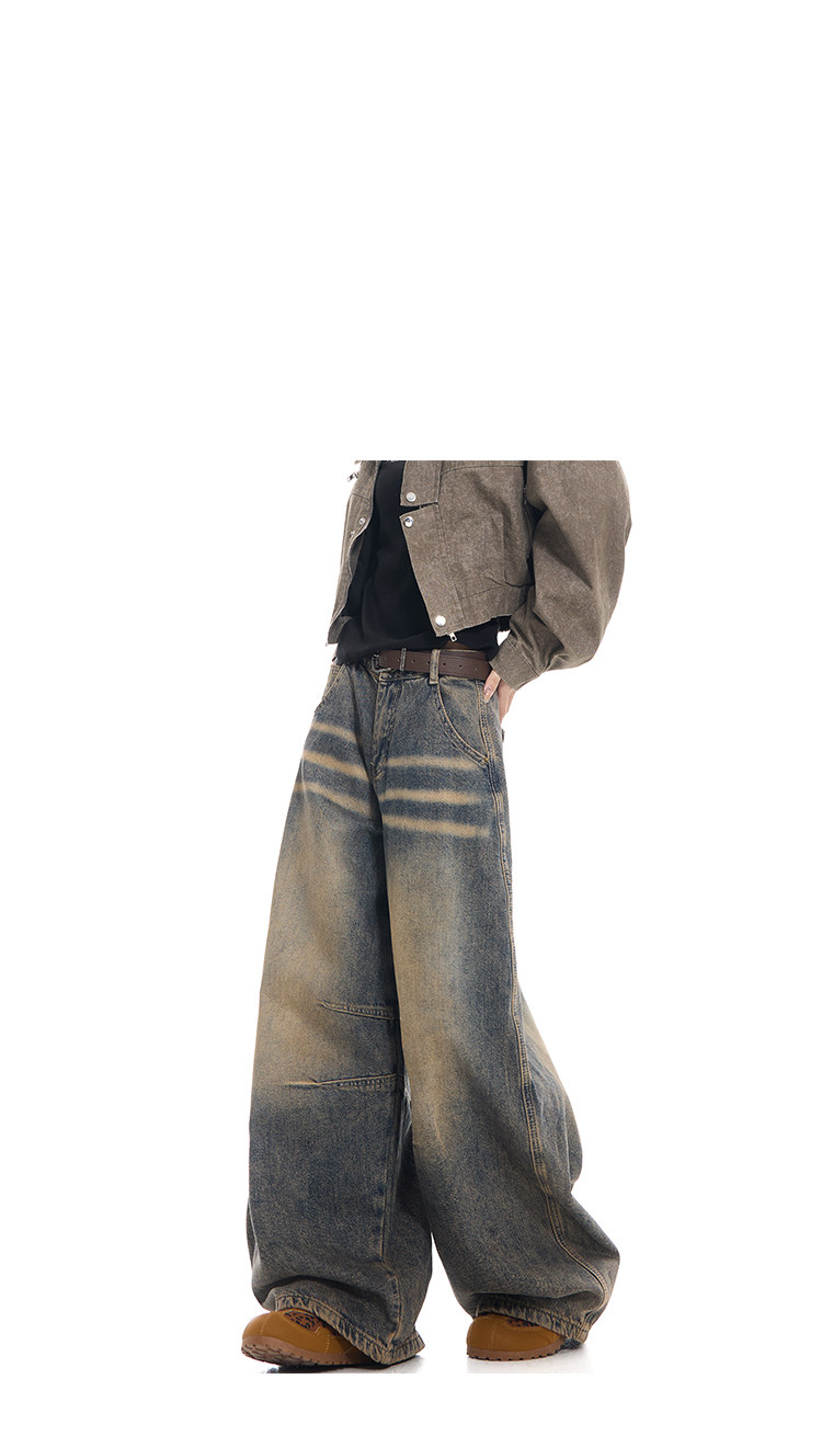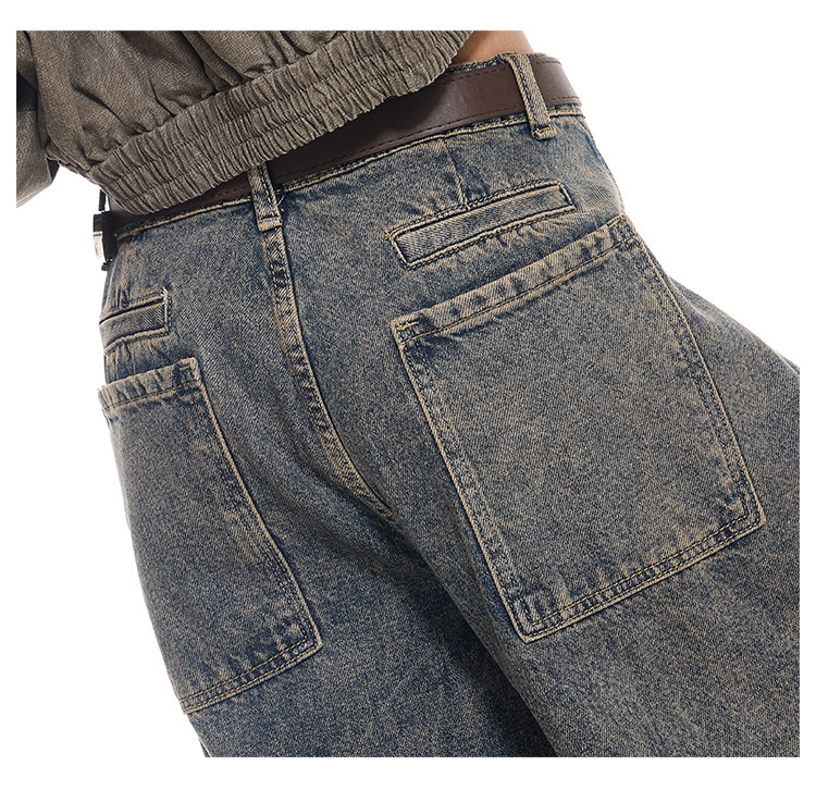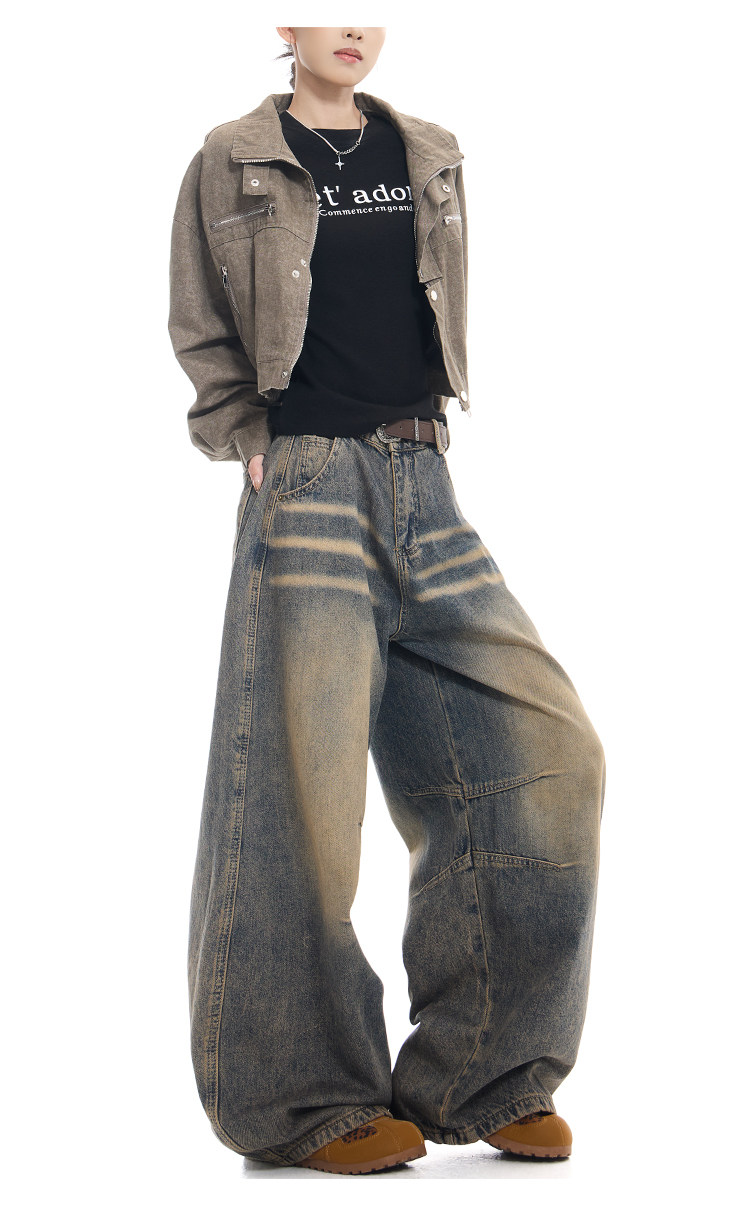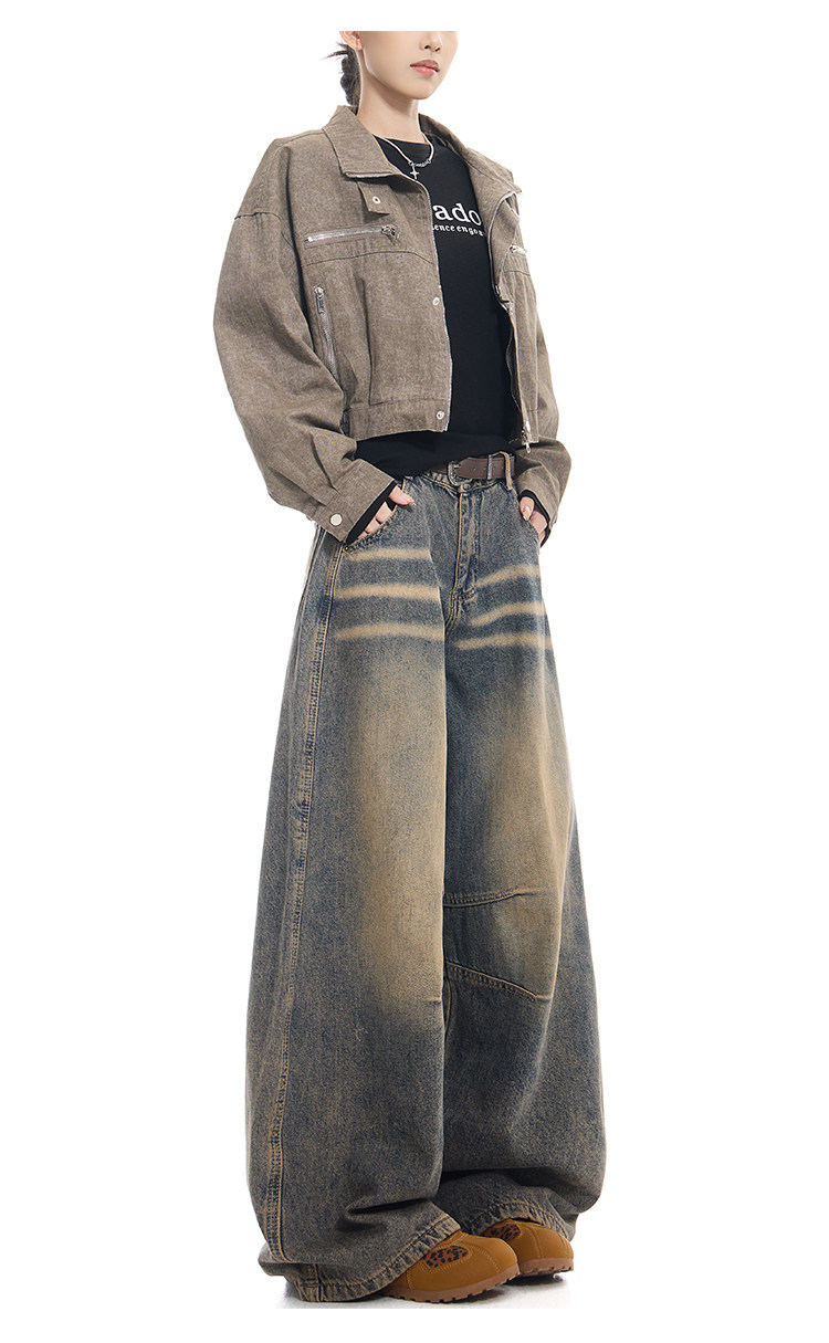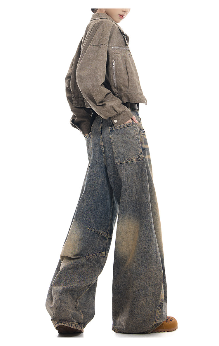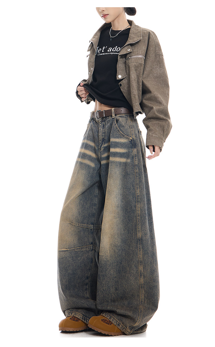 Gezunnu spring and autumn new retro washed distressed jeans women's high waist loose wide leg scimitar pants