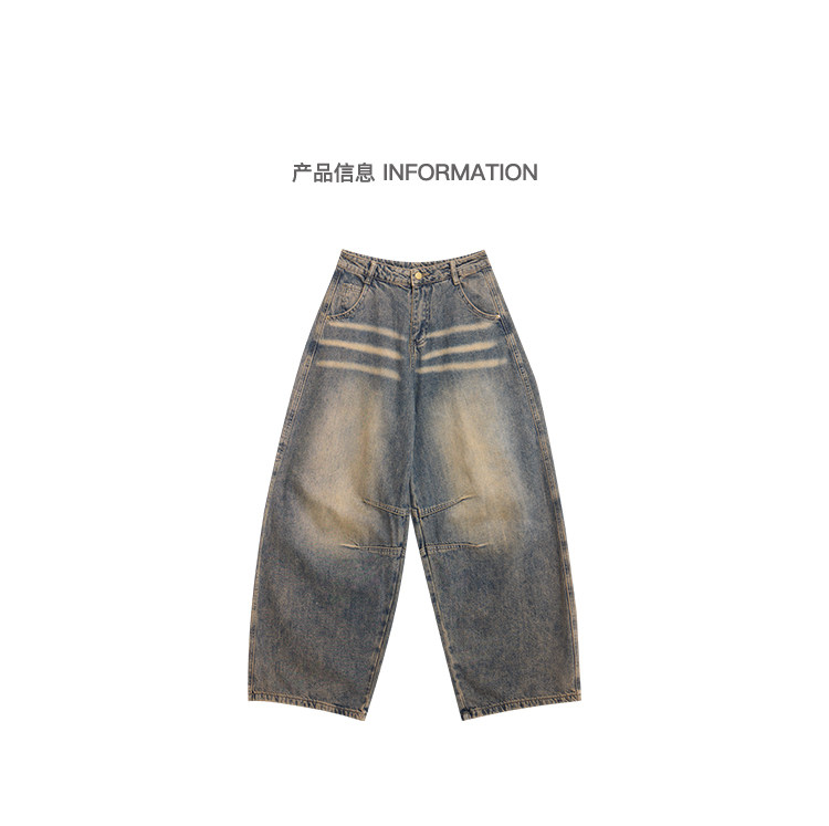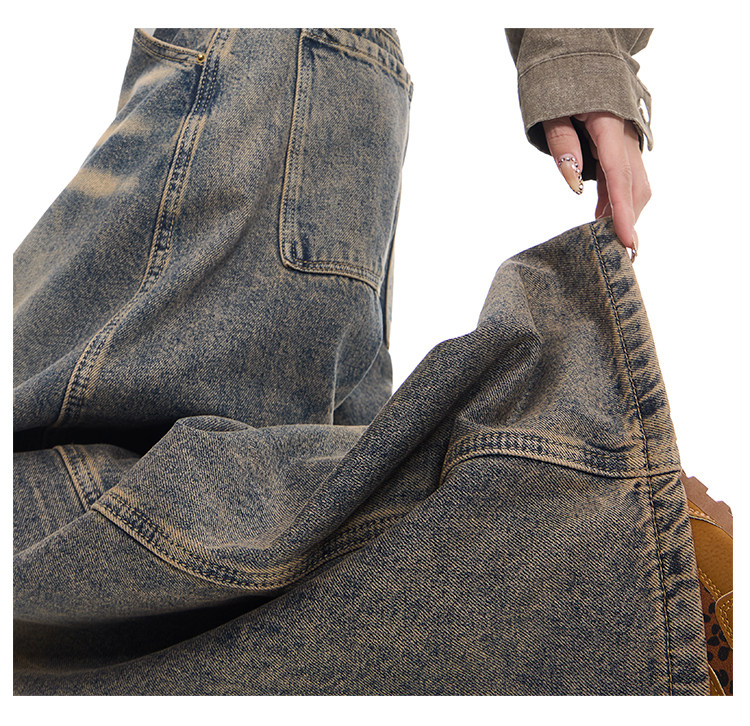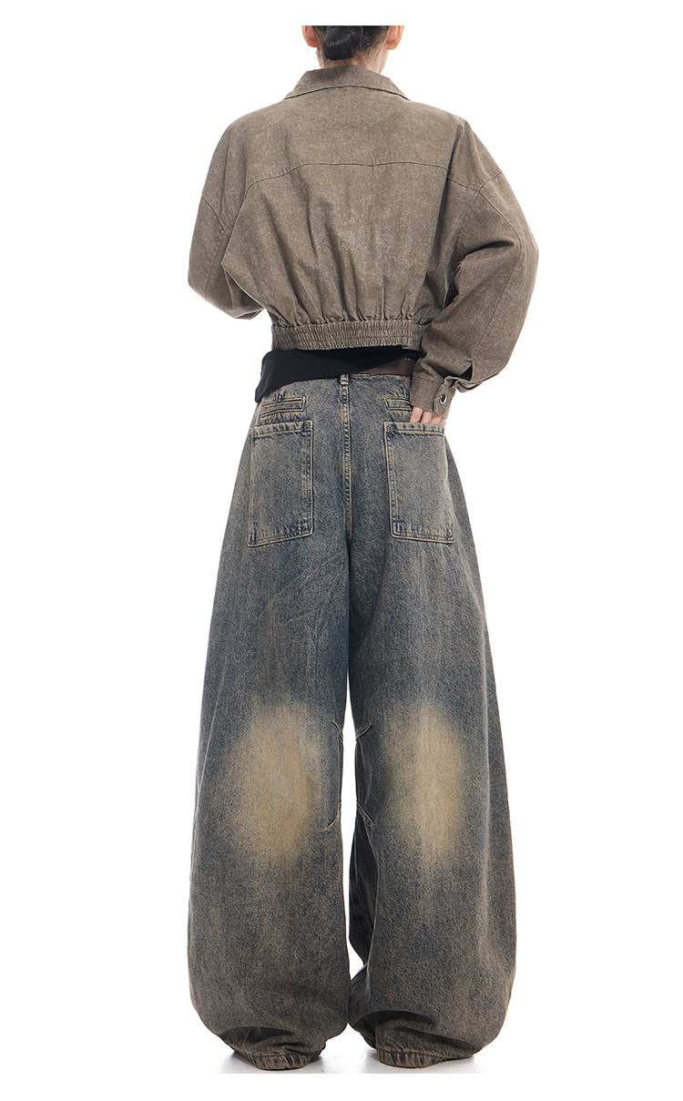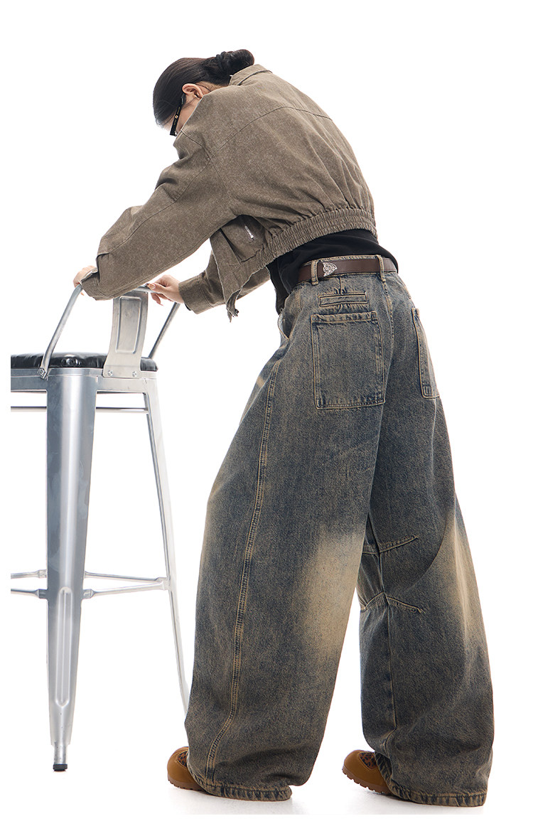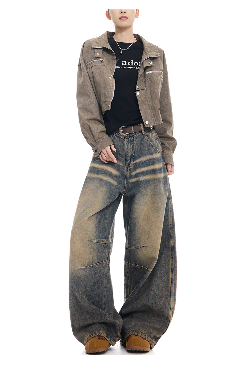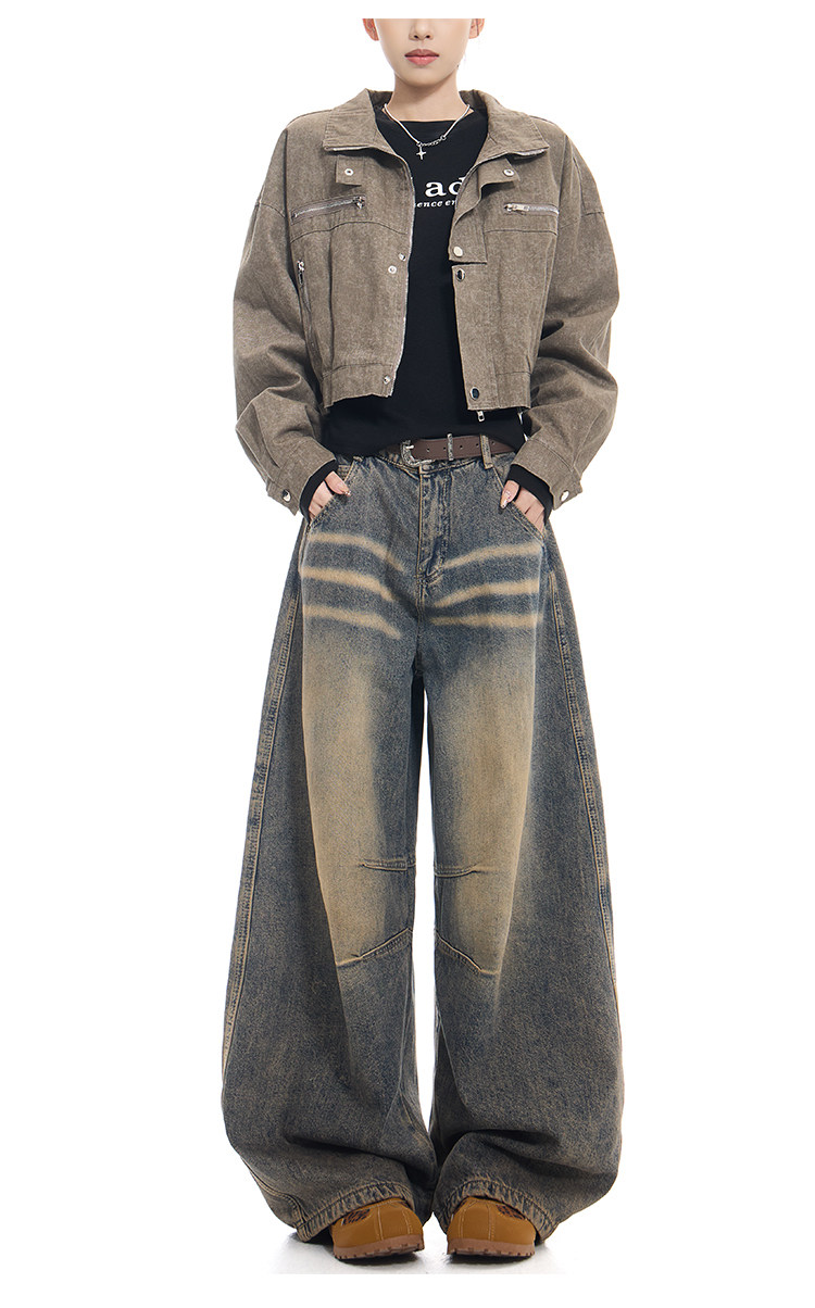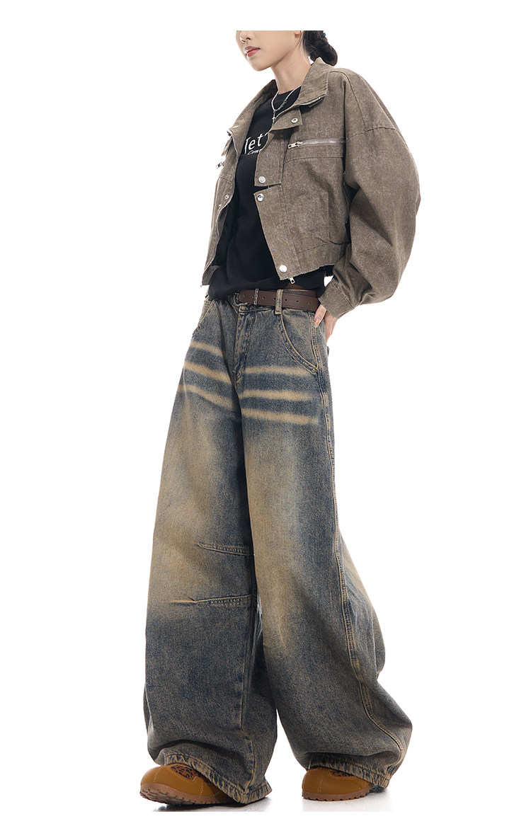 Gezunnu spring and autumn new retro washed distressed jeans women's high waist loose wide leg scimitar pants