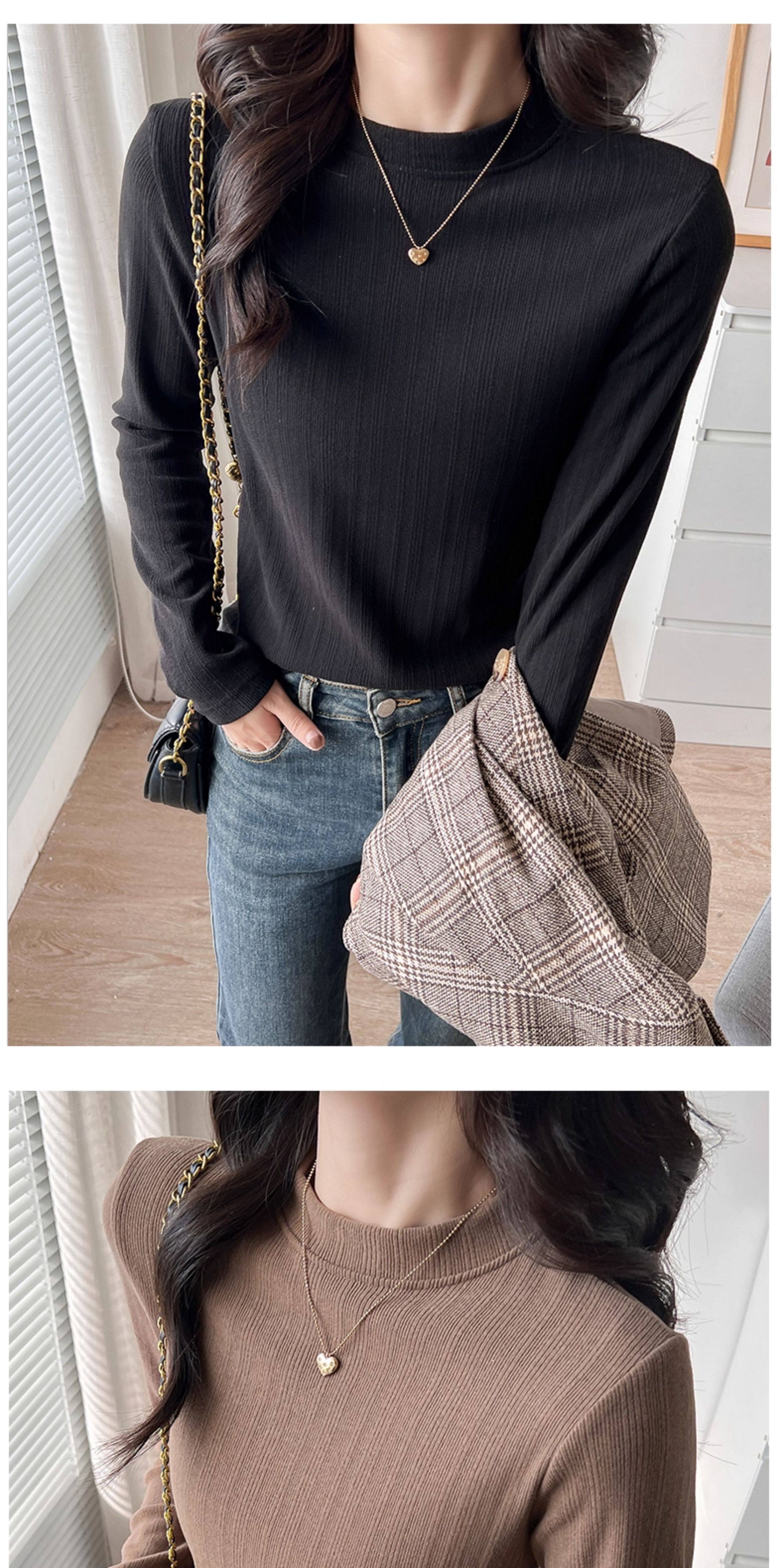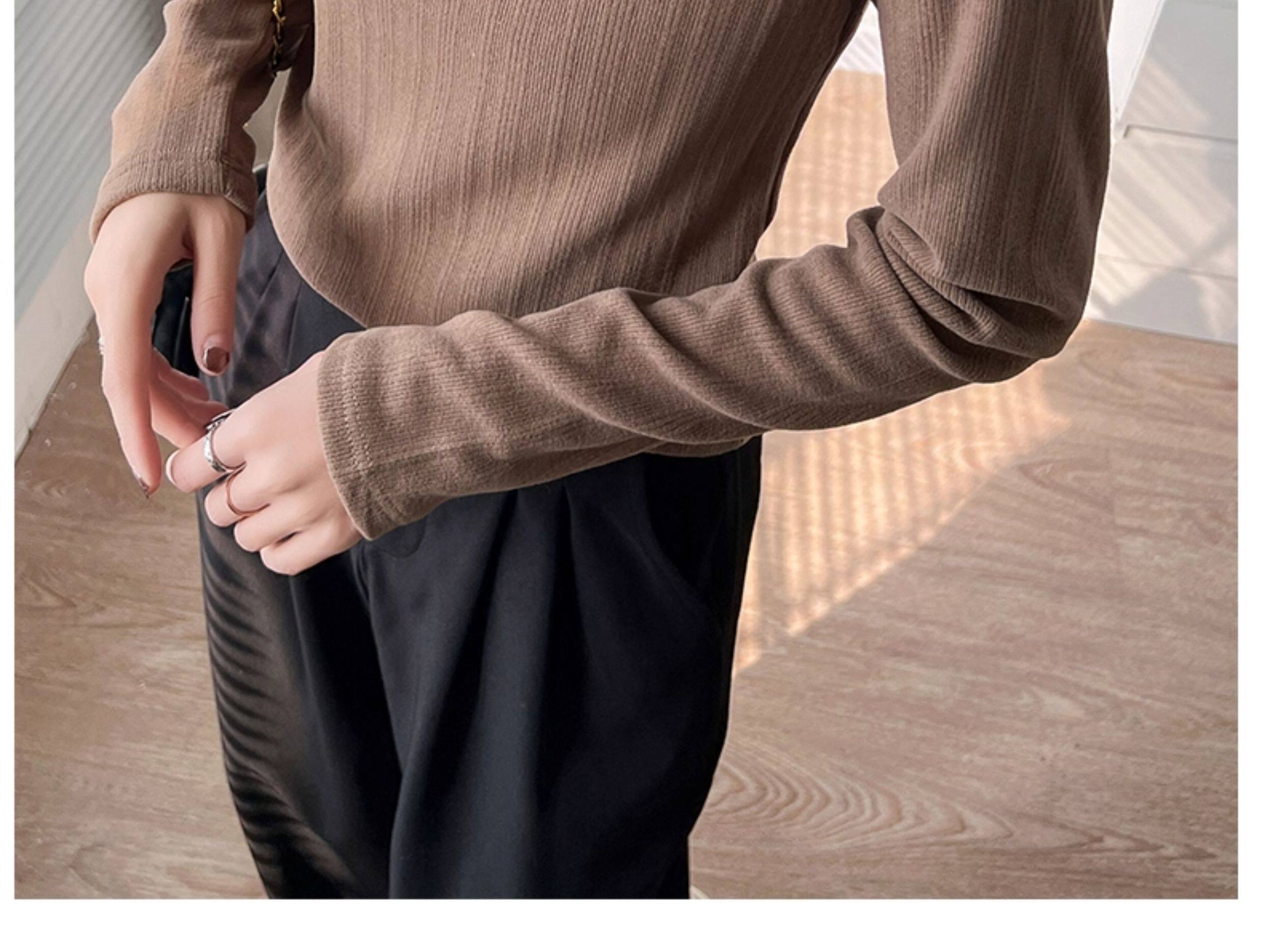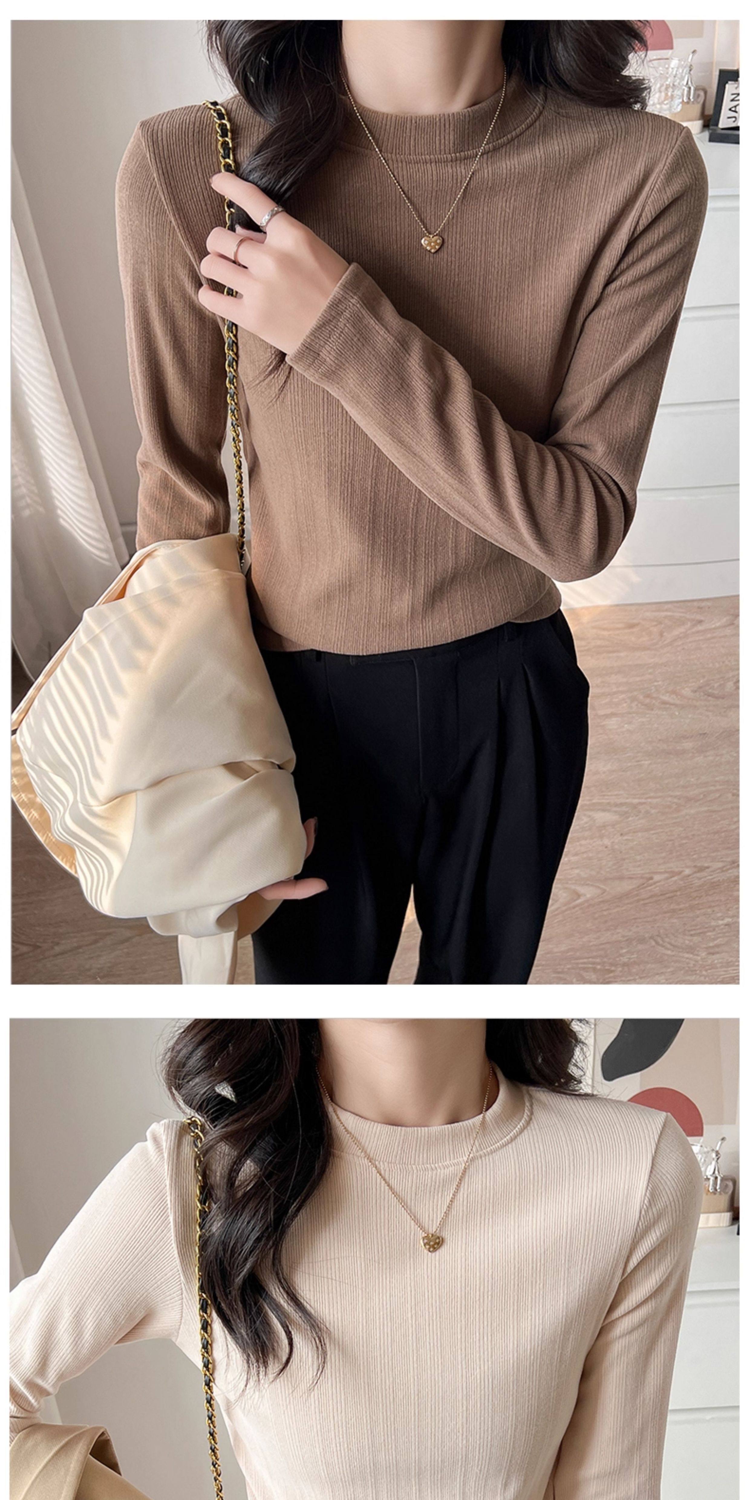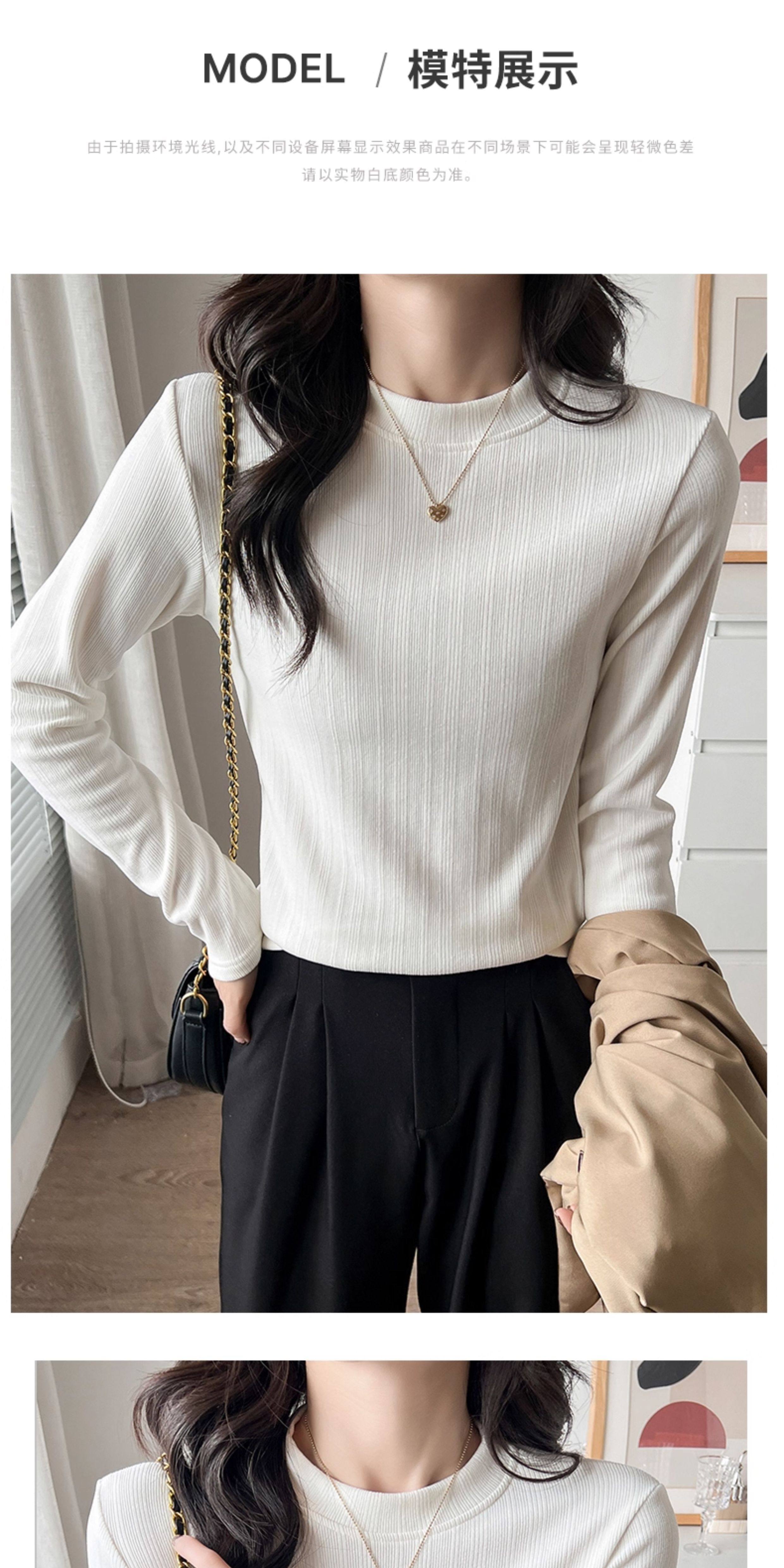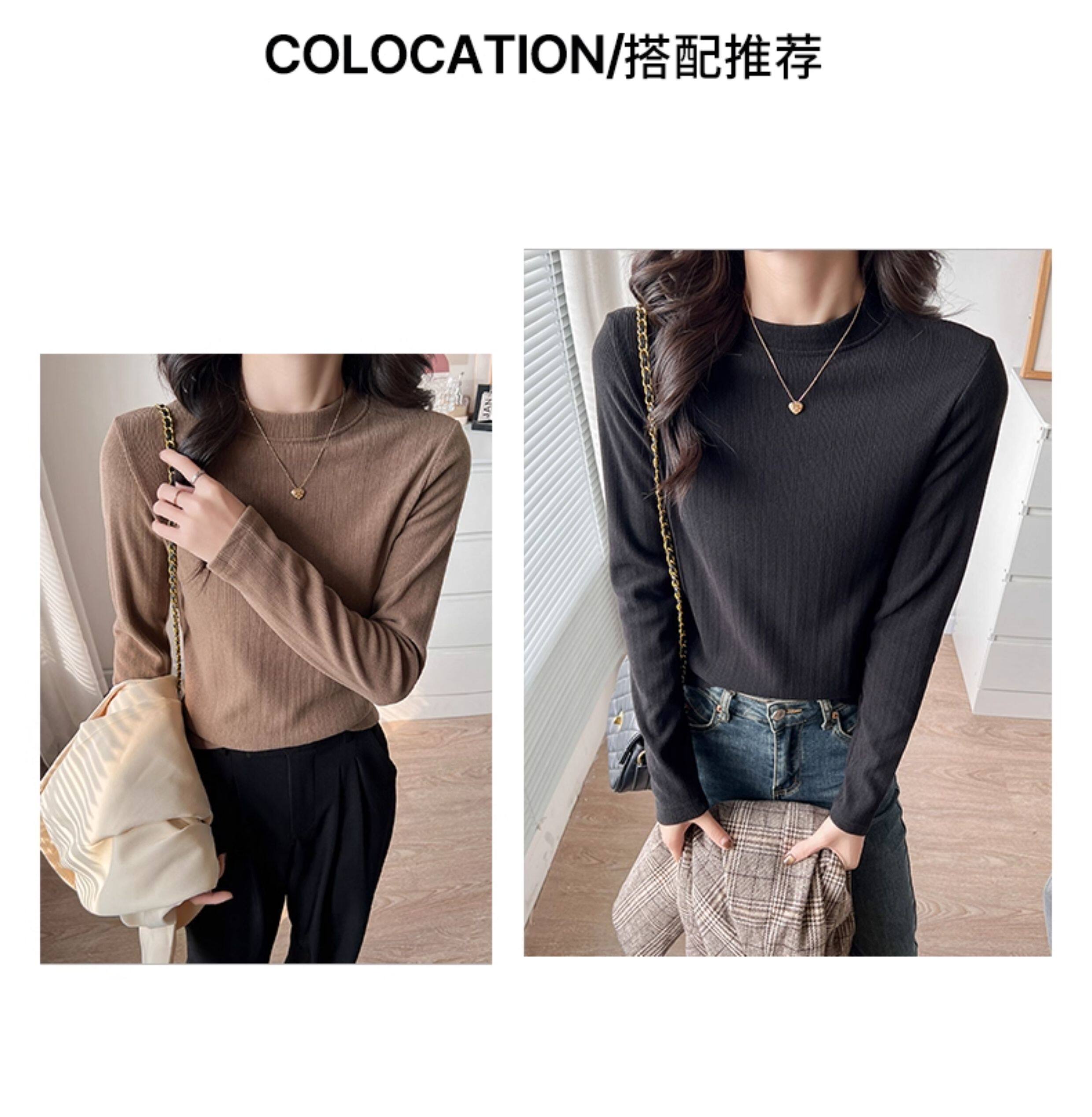 Women's Autumn and Winter Slim-Fit Long-Sleeve Turtleneck Thermal Shirt with Brushed Interior, Suitable for Wearing as an Outer Layer or T-Shirt