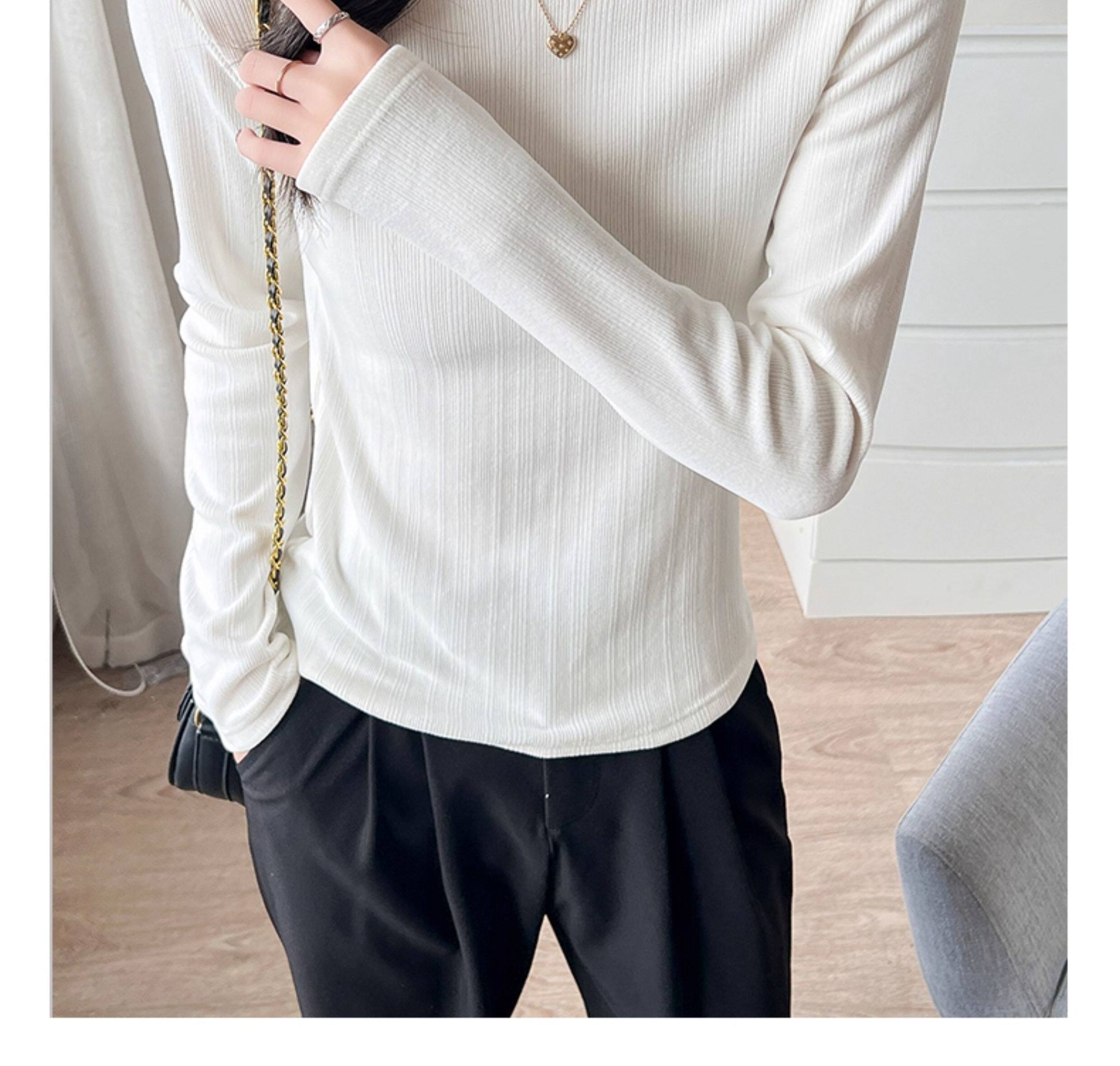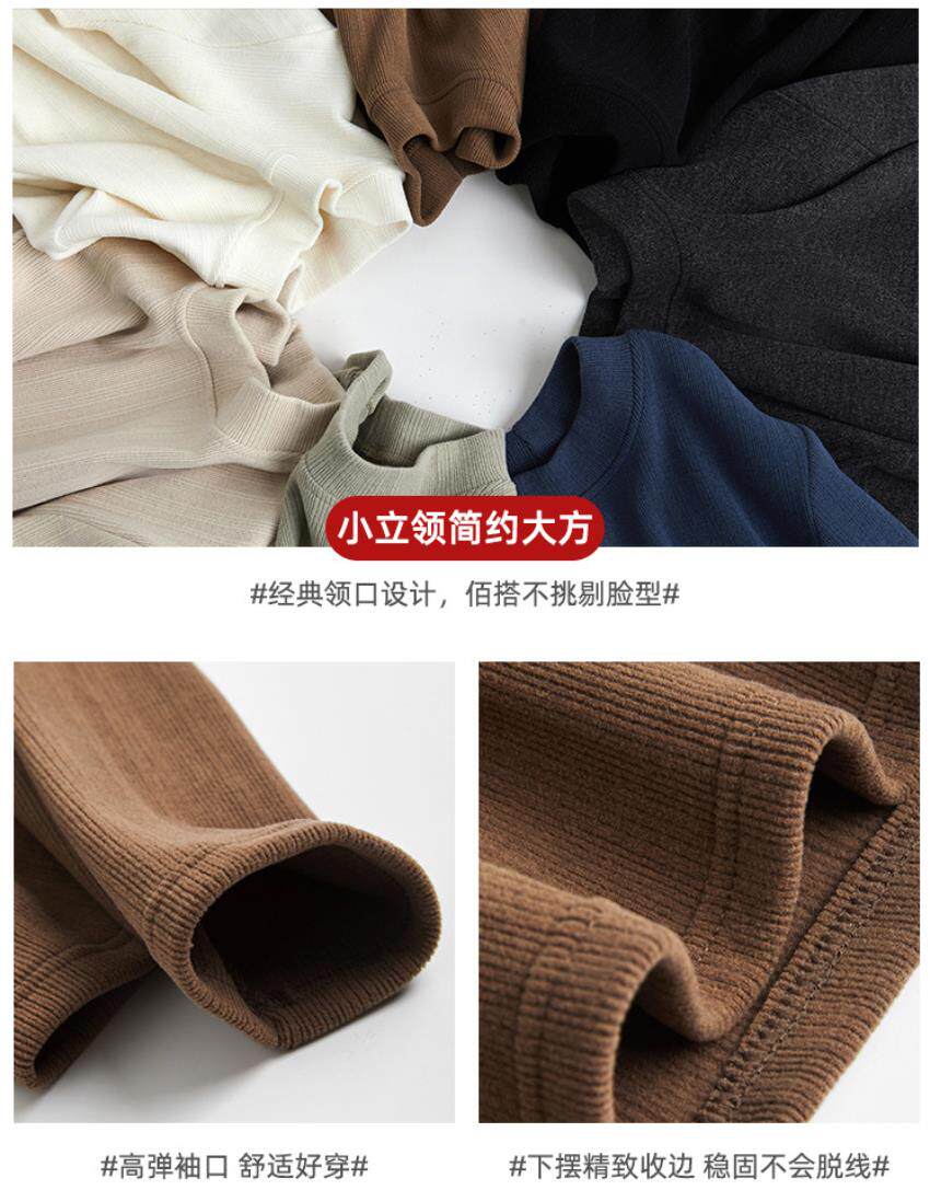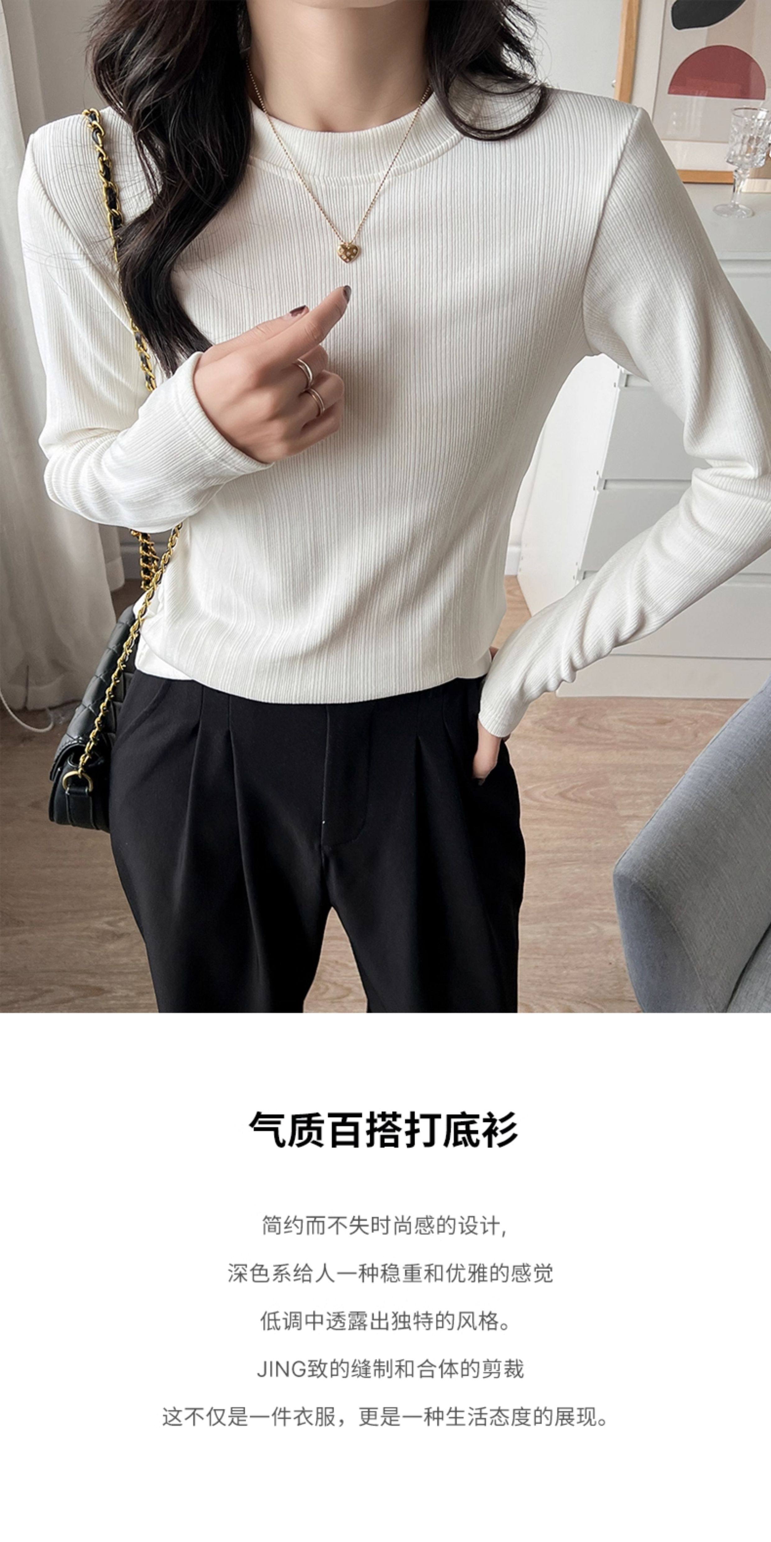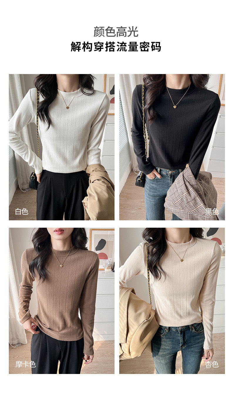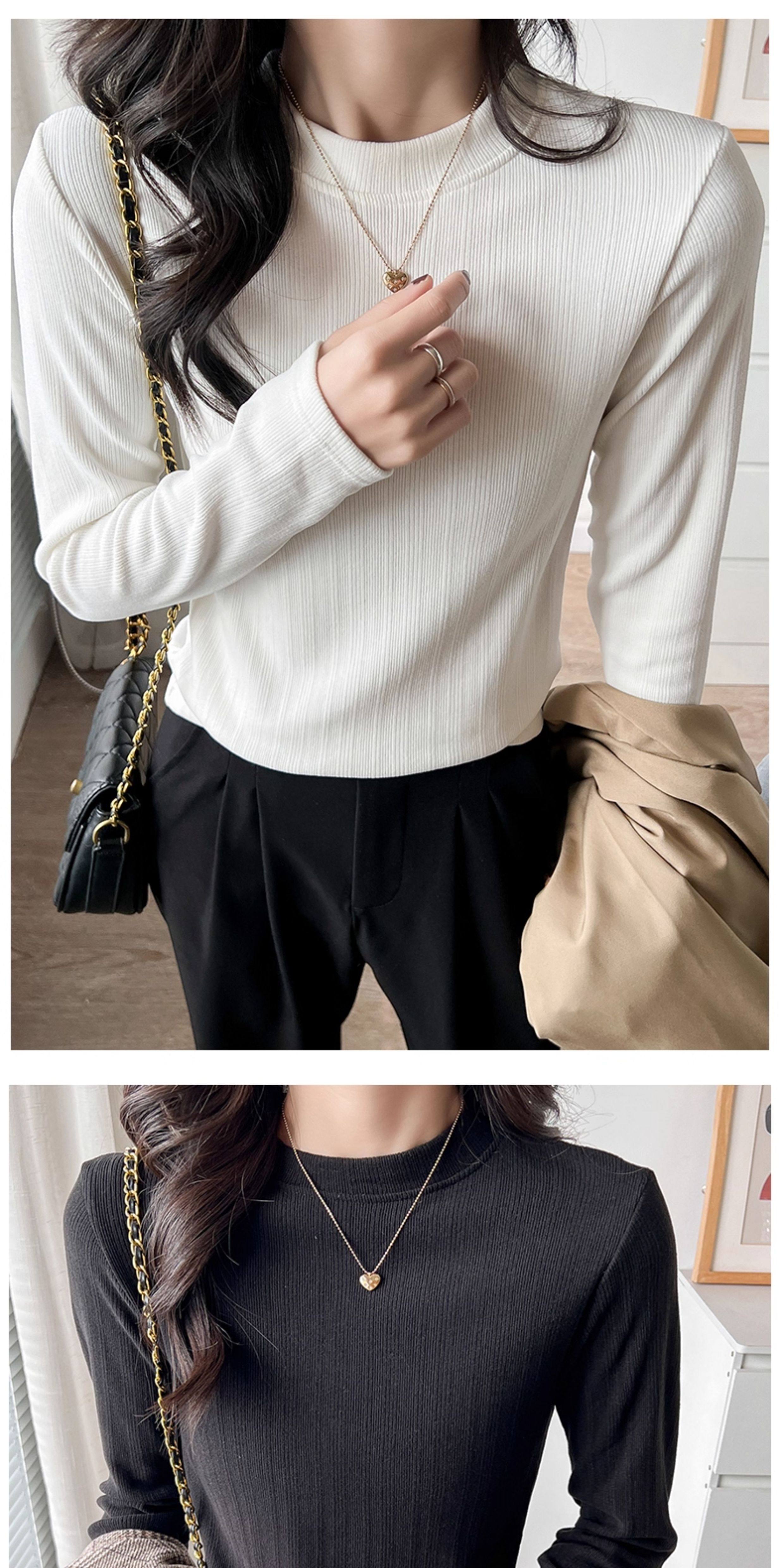 Women's Autumn and Winter Slim-Fit Long-Sleeve Turtleneck Thermal Shirt with Brushed Interior, Suitable for Wearing as an Outer Layer or T-Shirt