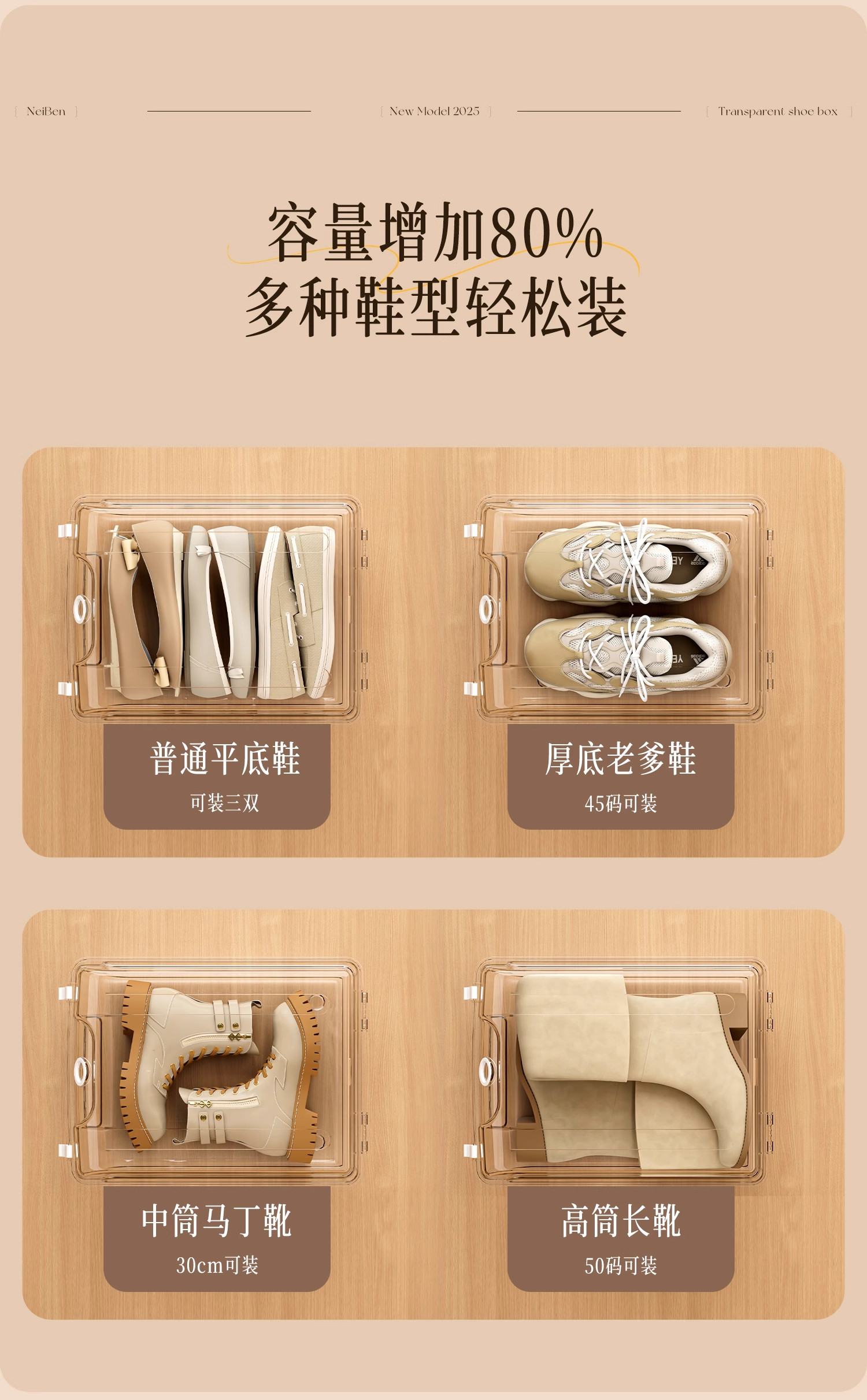 Shoe Box Storage Box, Transparent, Special for Boots and Shoes, Large Capacity, Space-Saving Storage Artifact, No Installation Required, Plastic Shoe Cabinet