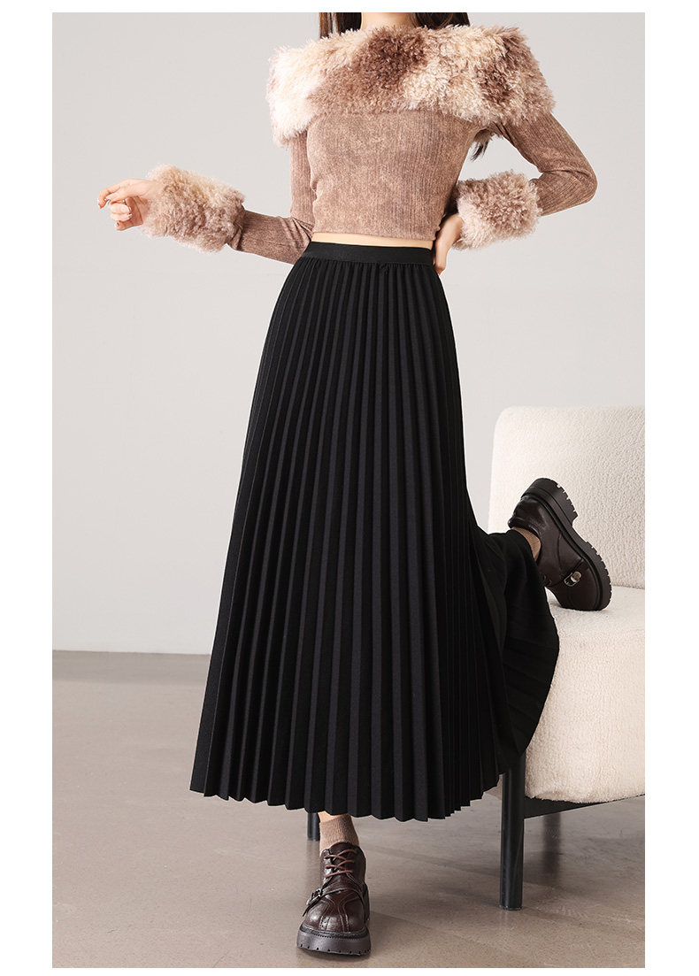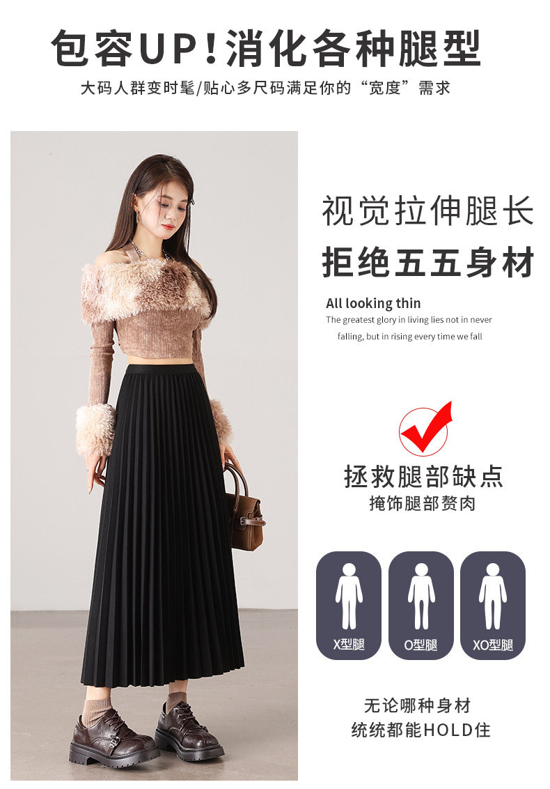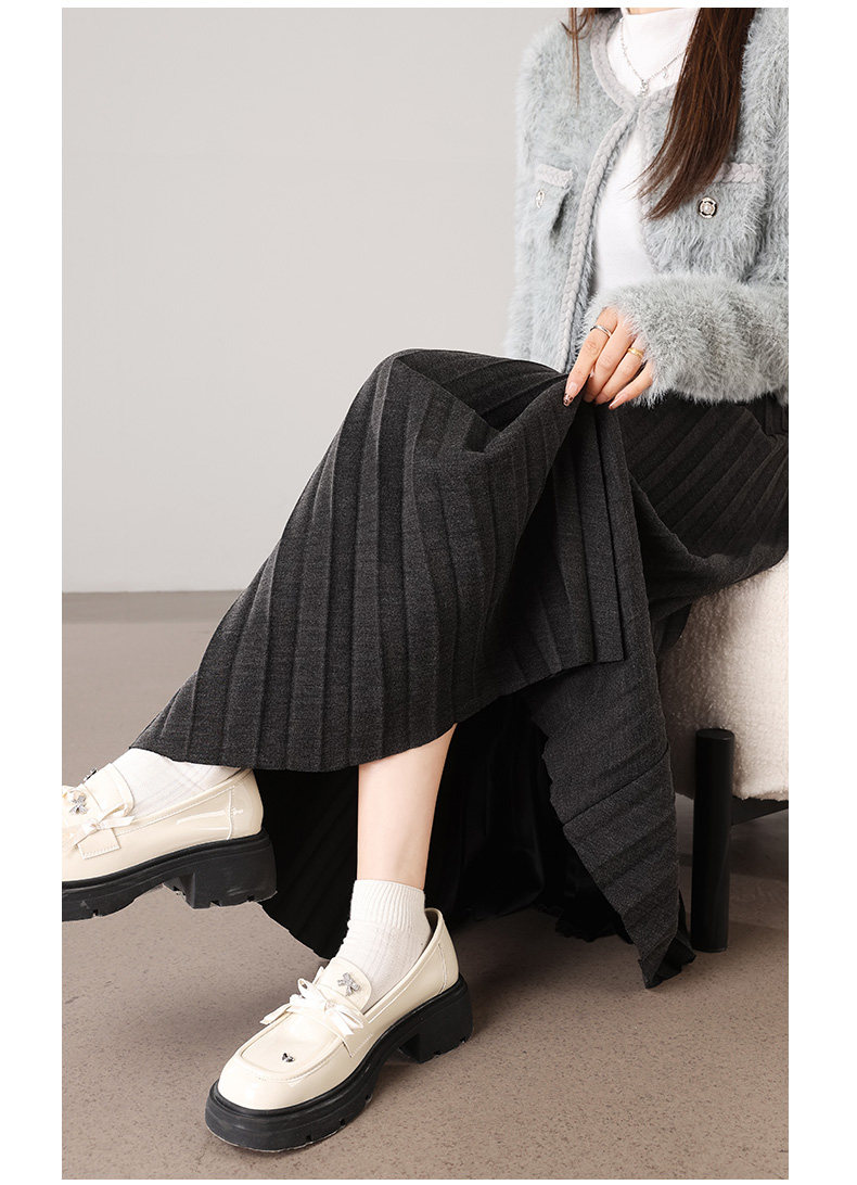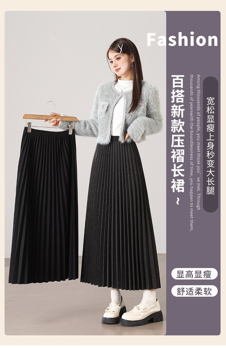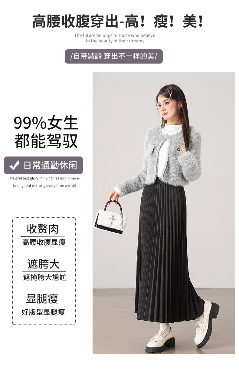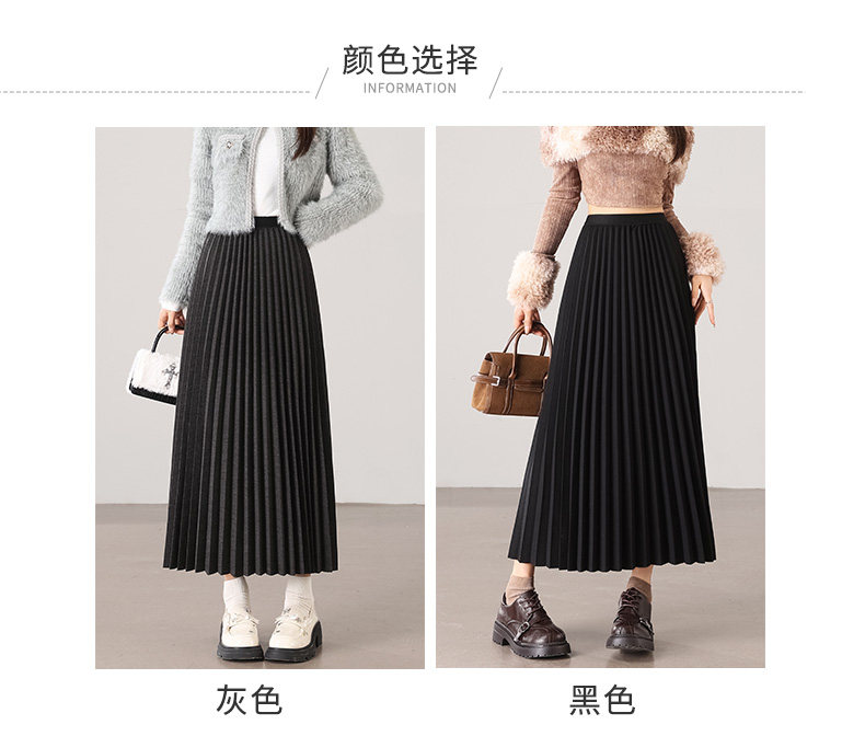 Accordion pleated pleated skirt for women in autumn and winter new style woolen versatile slimming A-line high-waist pleated long skirt intellectual skirt
