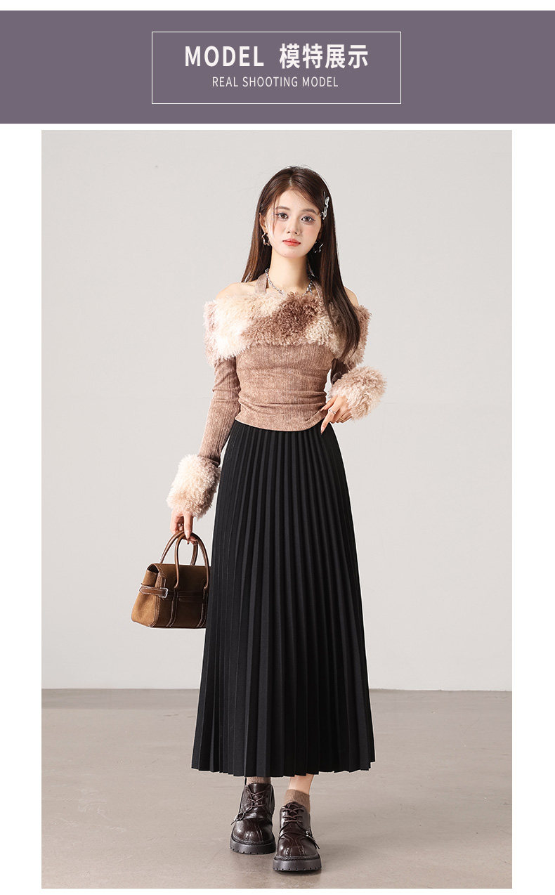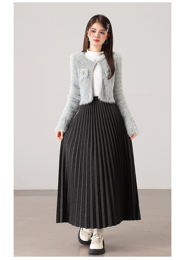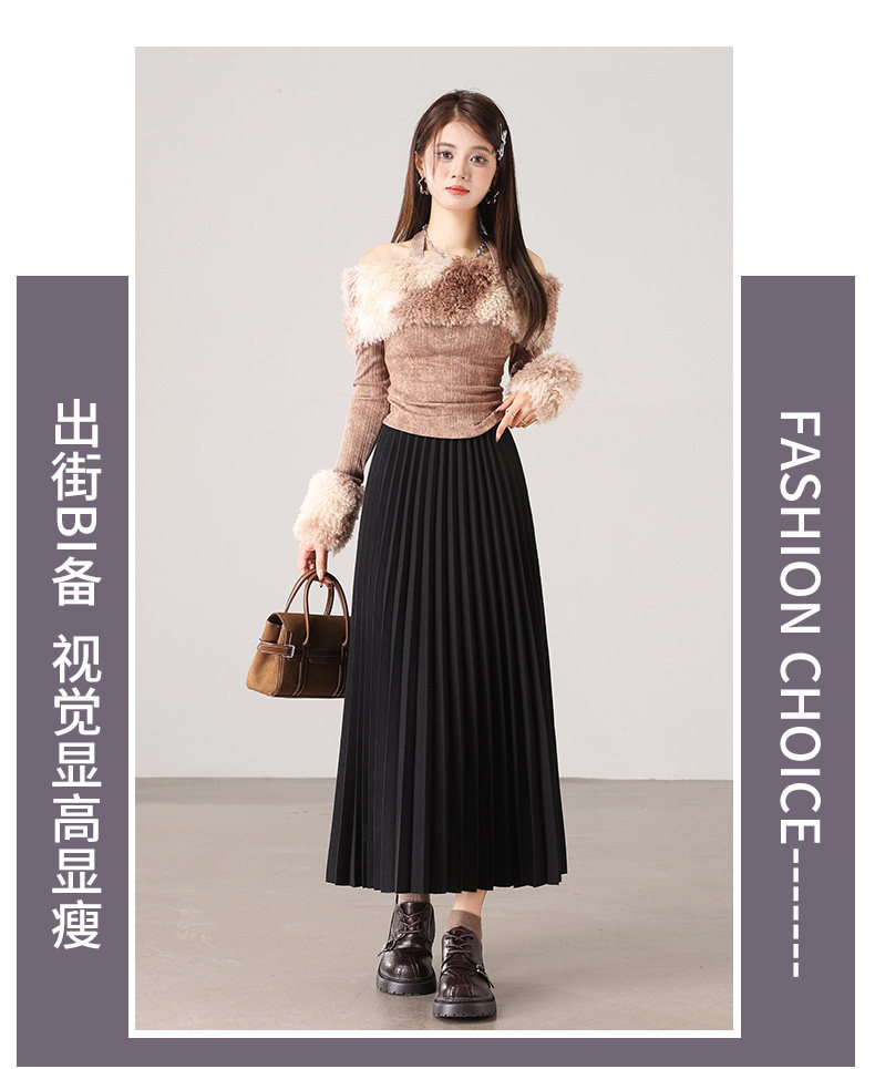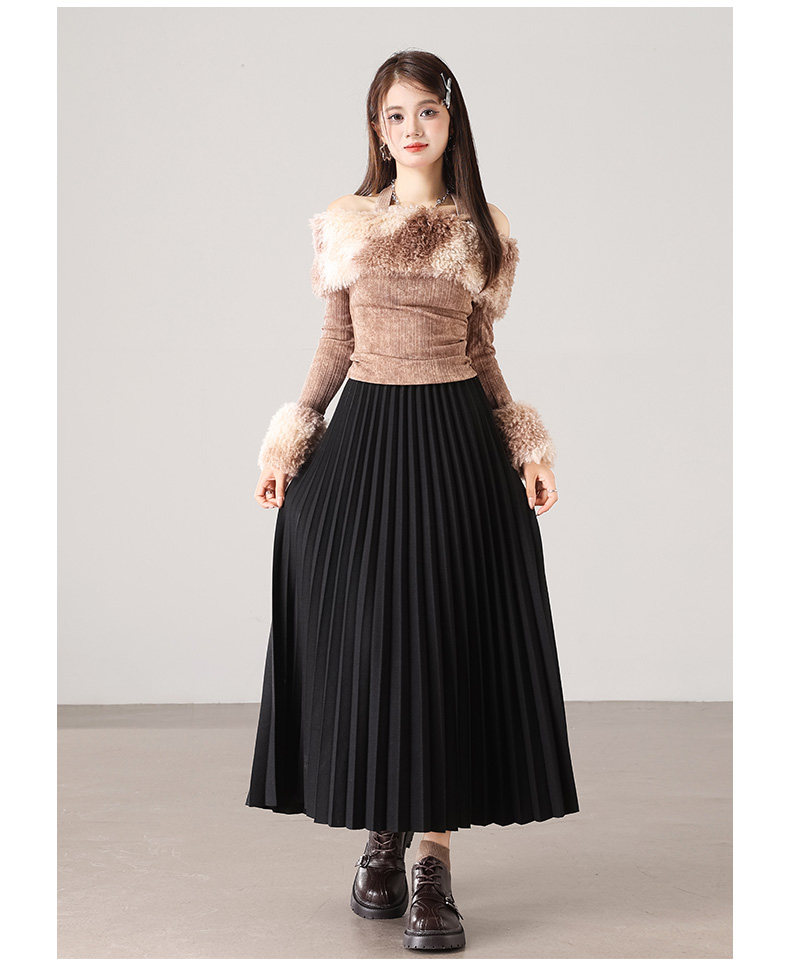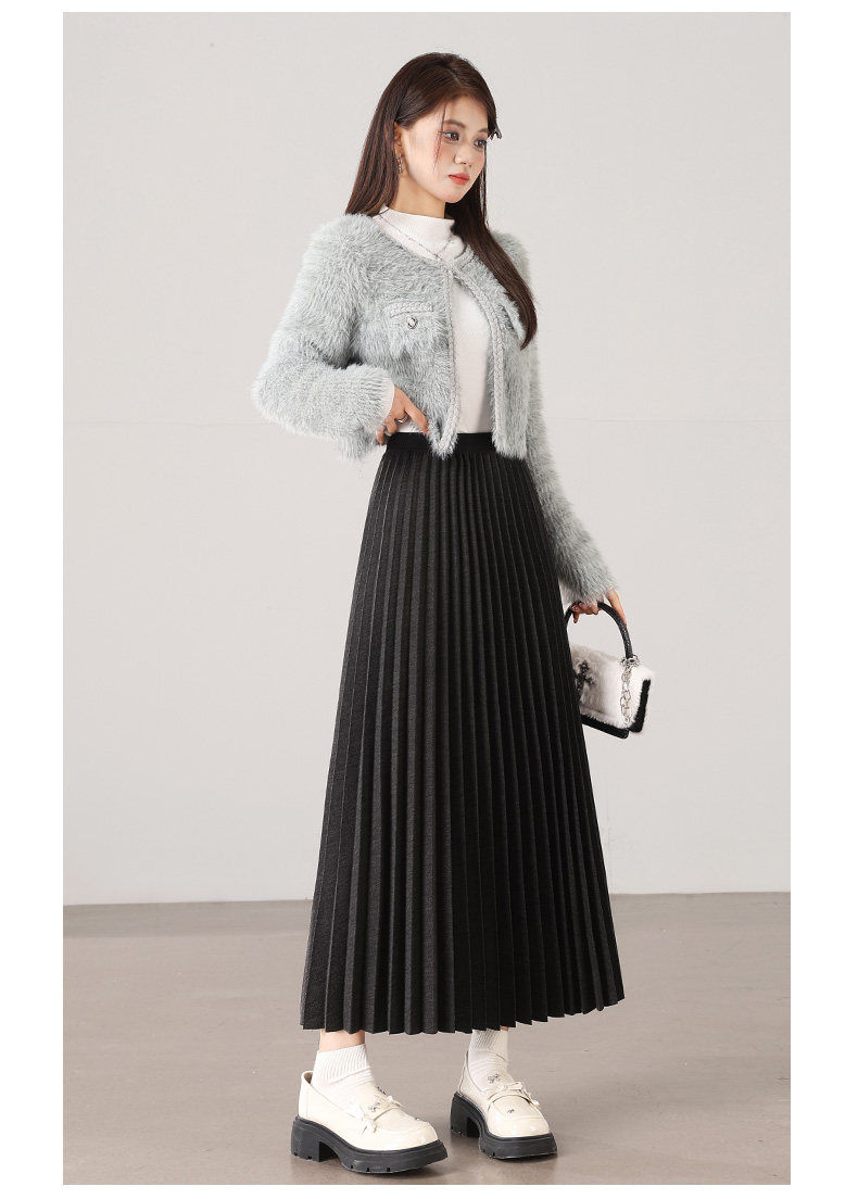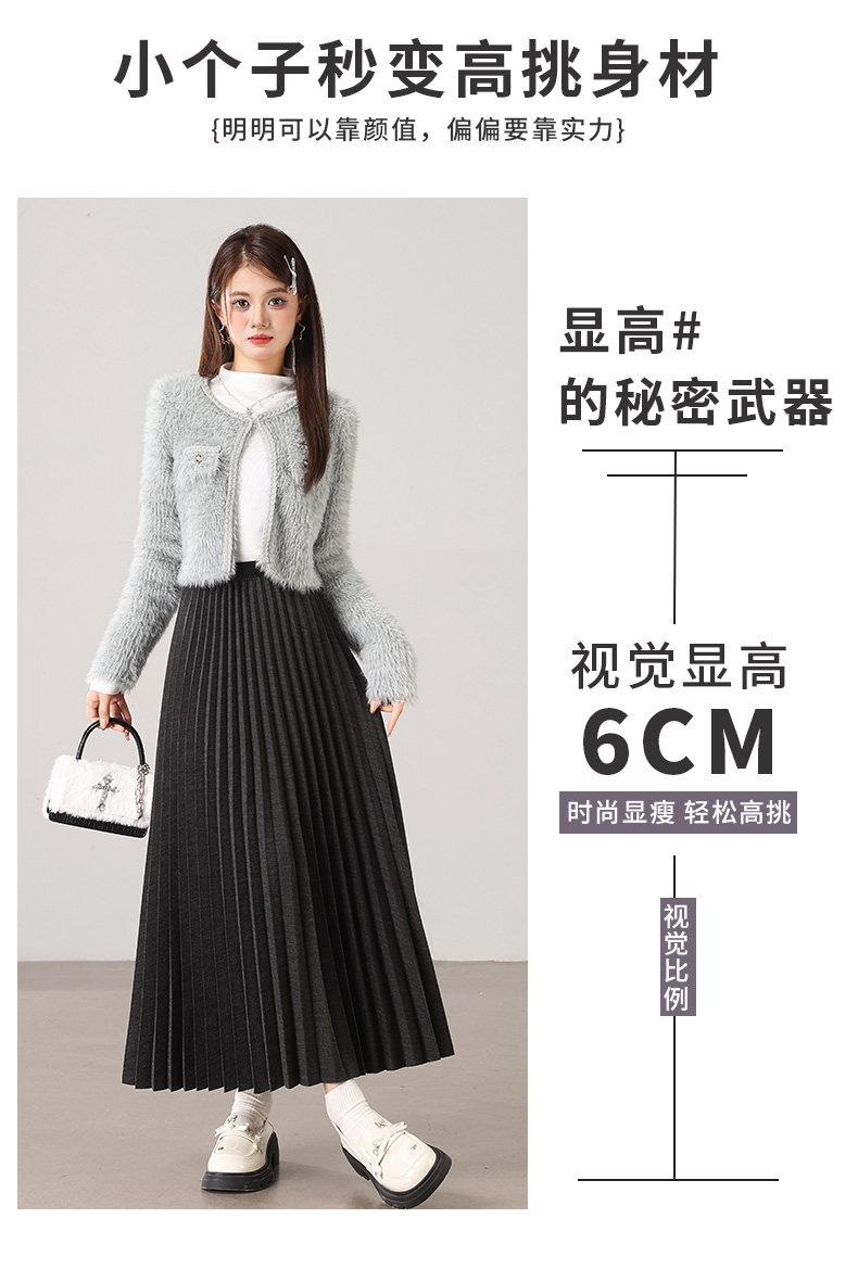 Accordion pleated pleated skirt for women in autumn and winter new style woolen versatile slimming A-line high-waist pleated long skirt intellectual skirt