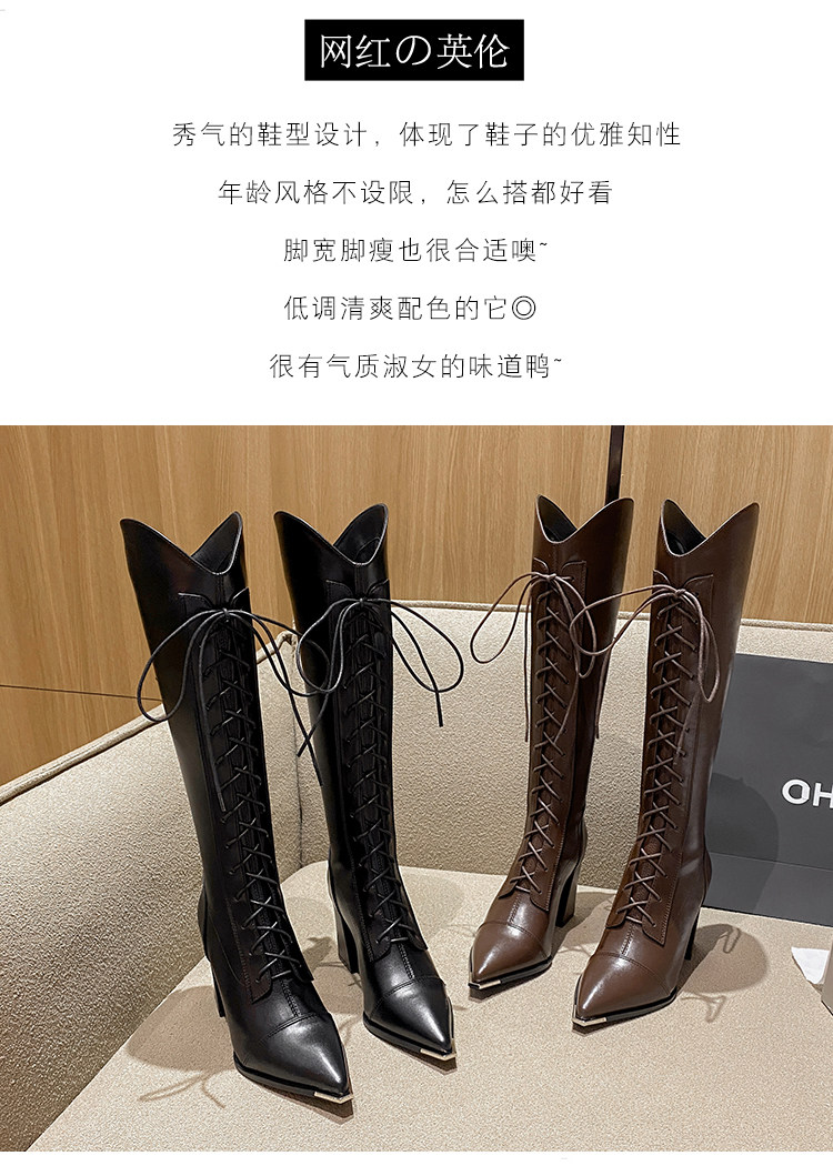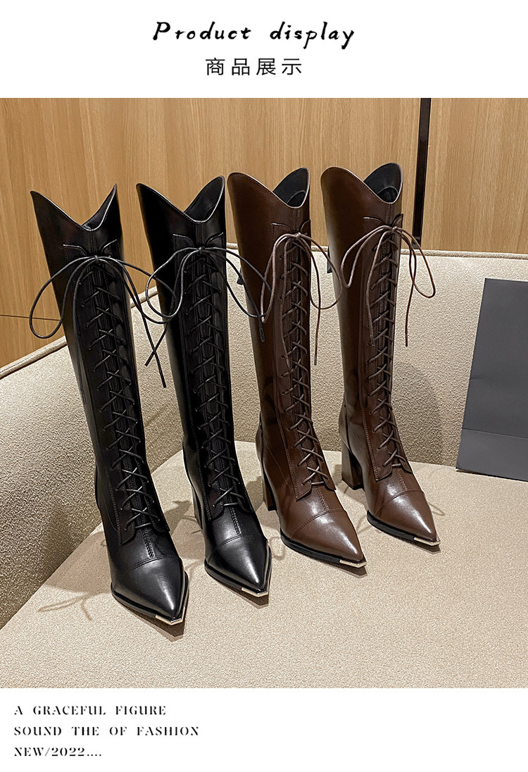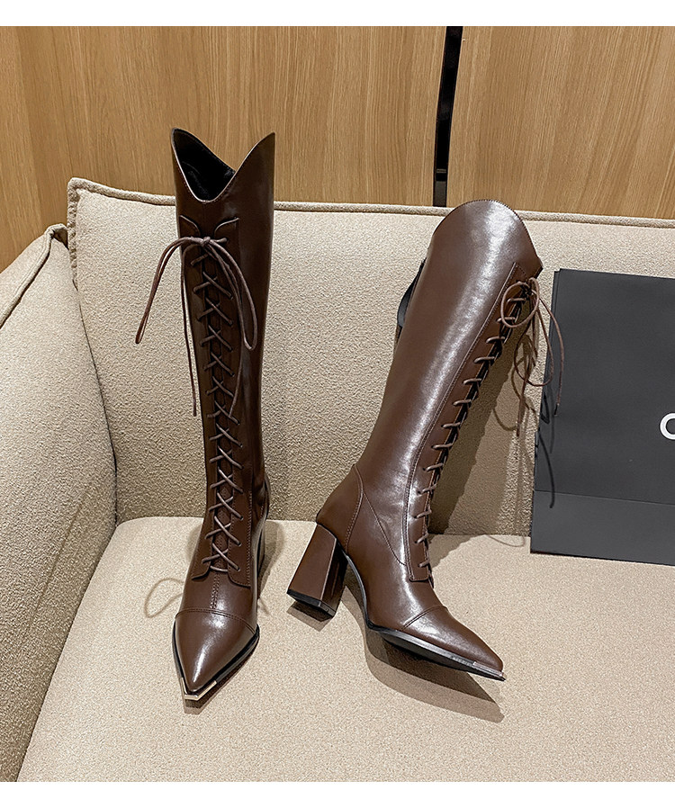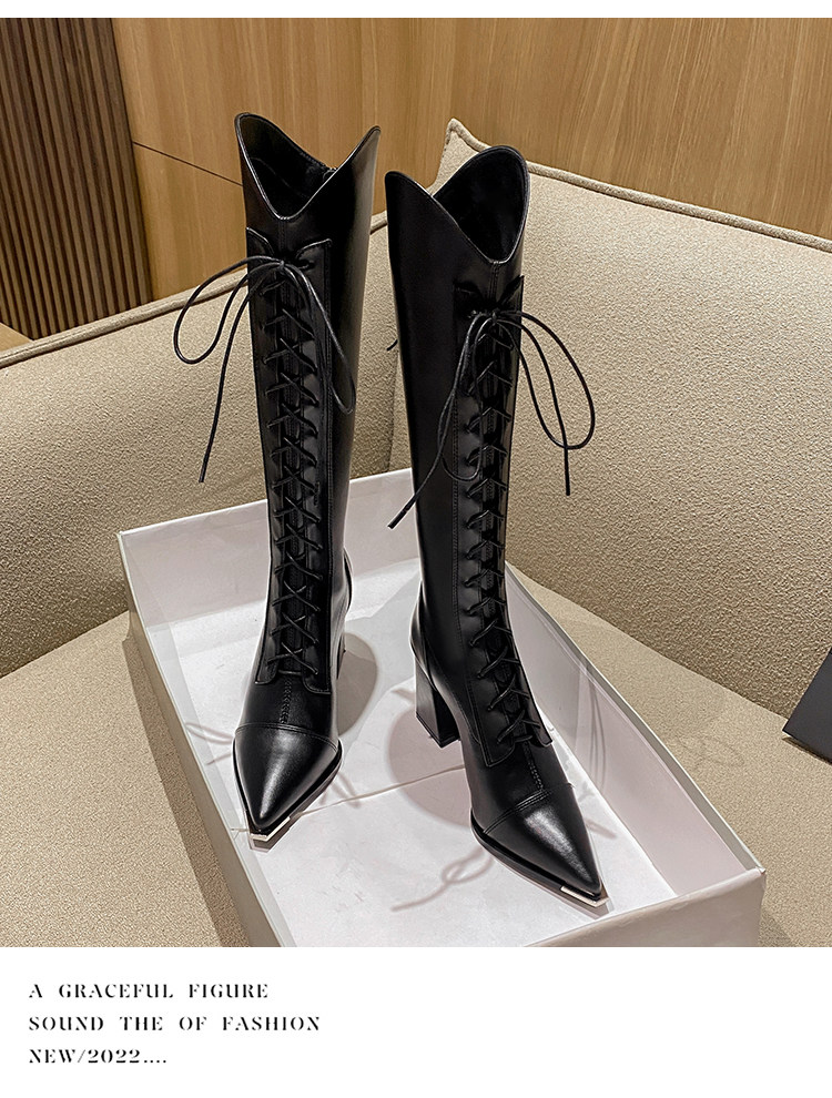 Genuine Leather, Very Stylish and Elegant, High-Heeled Pointed-Toe French-Style Long Boots for Women, 2025 Autumn and Winter V-Cut High Boots