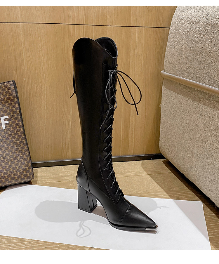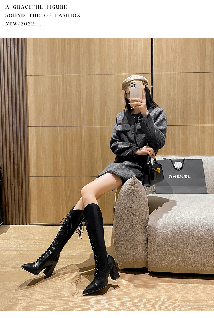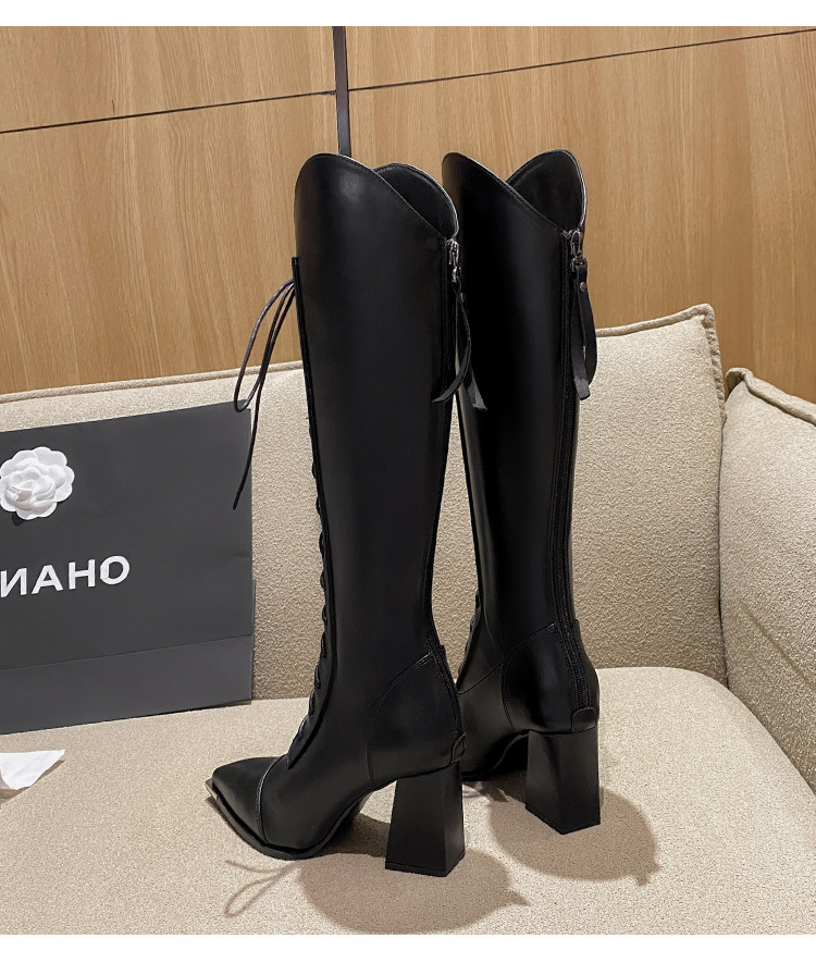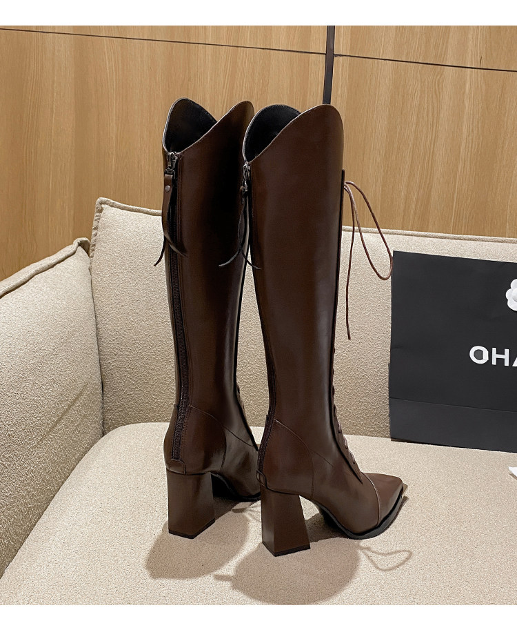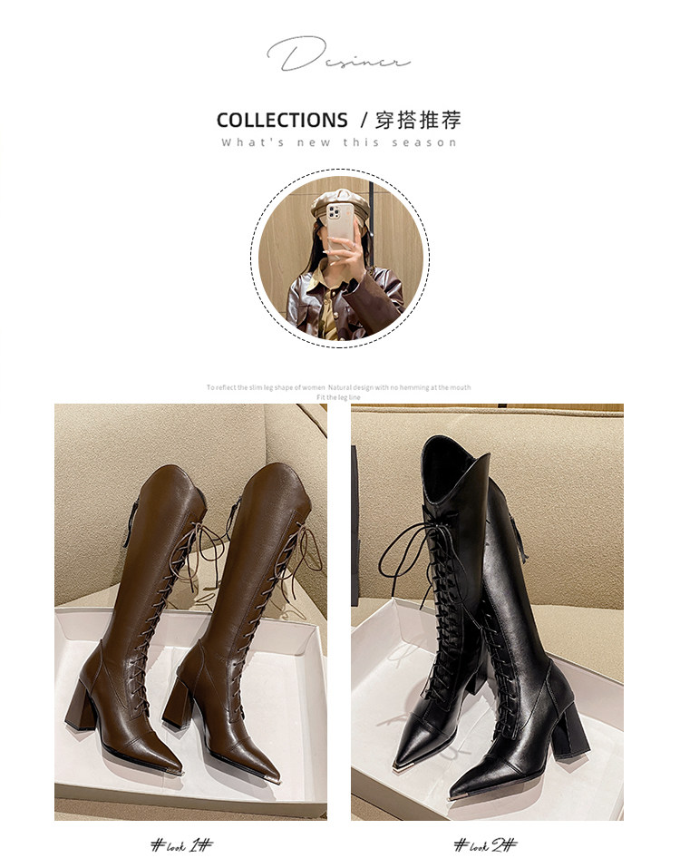 Genuine Leather, Very Stylish and Elegant, High-Heeled Pointed-Toe French-Style Long Boots for Women, 2025 Autumn and Winter V-Cut High Boots