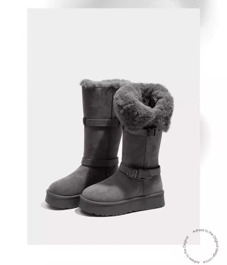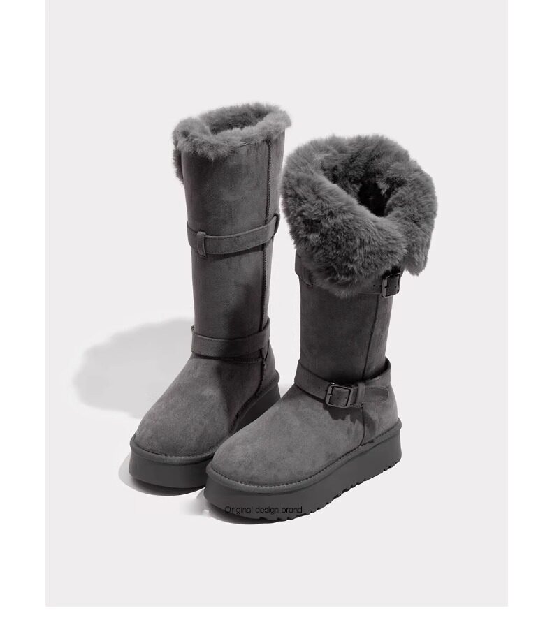 高筒灰色雪地靴女2025冬季新款厚底加绒加厚中长筒雪地棉靴子棉鞋