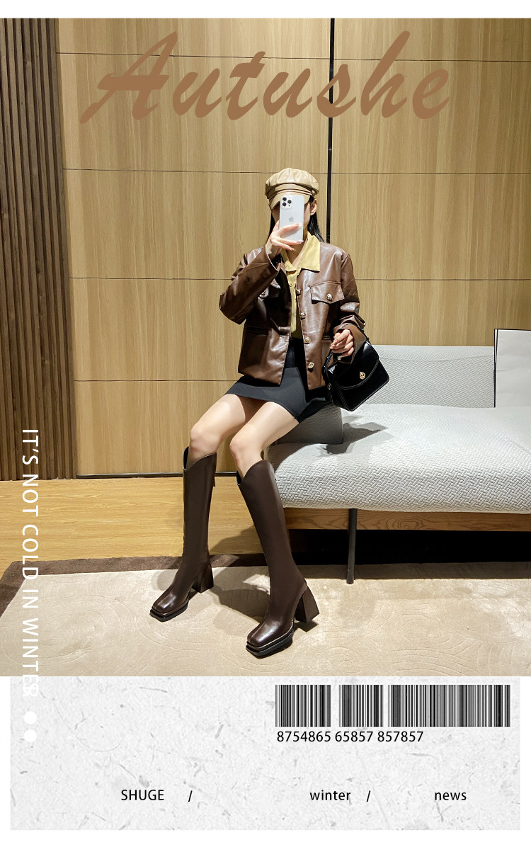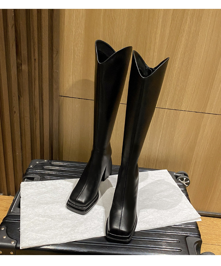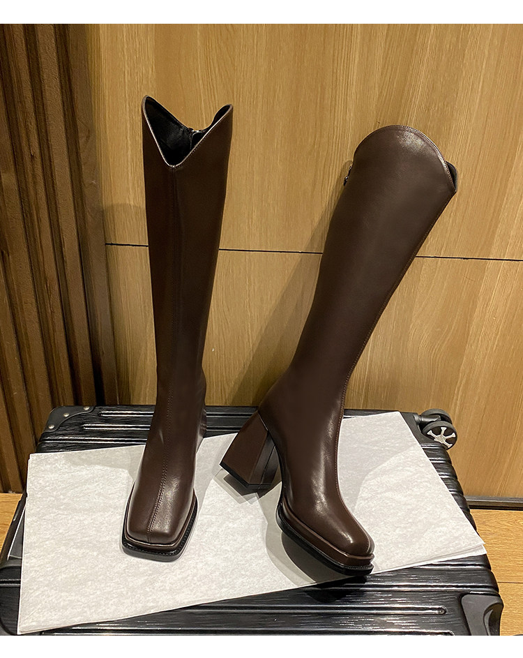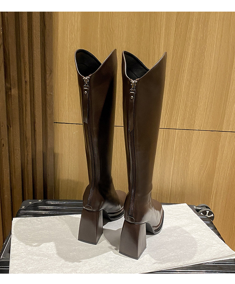 Genuine Leather, Very Stylish, Early Autumn Thick-Soled, Height-Increasing Long Boots for Petite Women, Super Popular, 2025 Autumn and Winter High-Heeled Long Boots