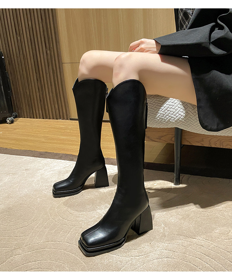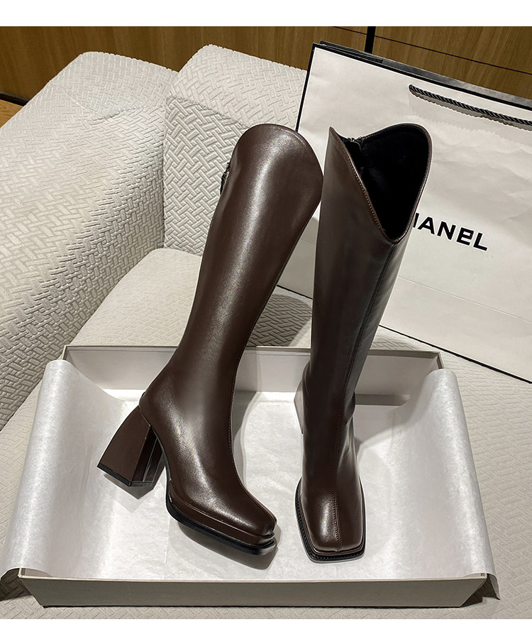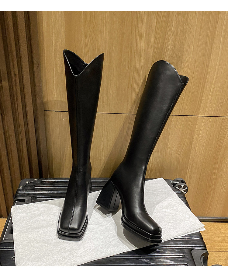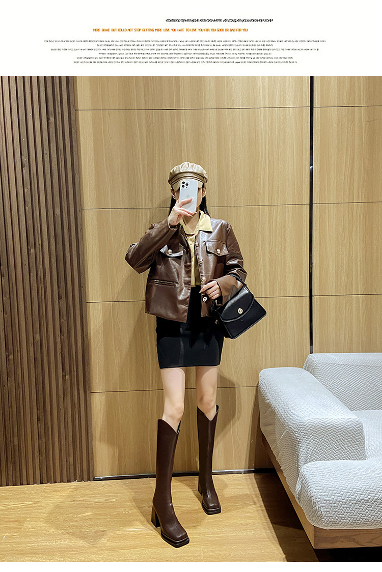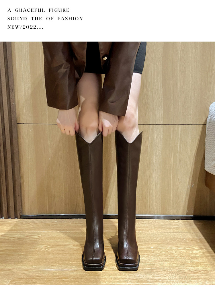 Genuine Leather, Very Stylish, Early Autumn Thick-Soled, Height-Increasing Long Boots for Petite Women, Super Popular, 2025 Autumn and Winter High-Heeled Long Boots