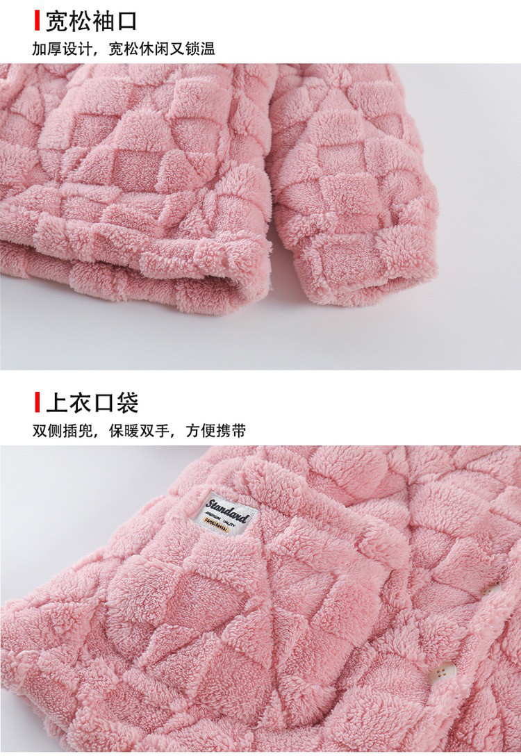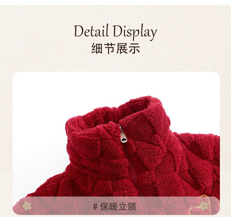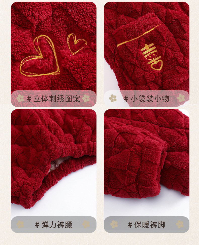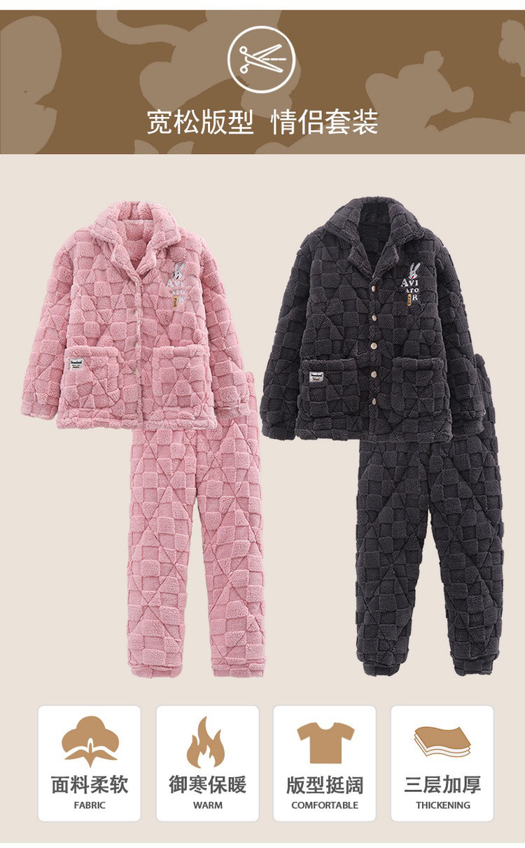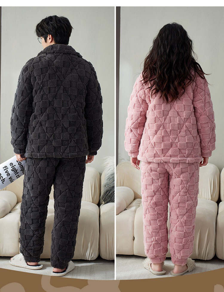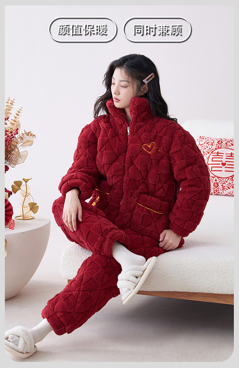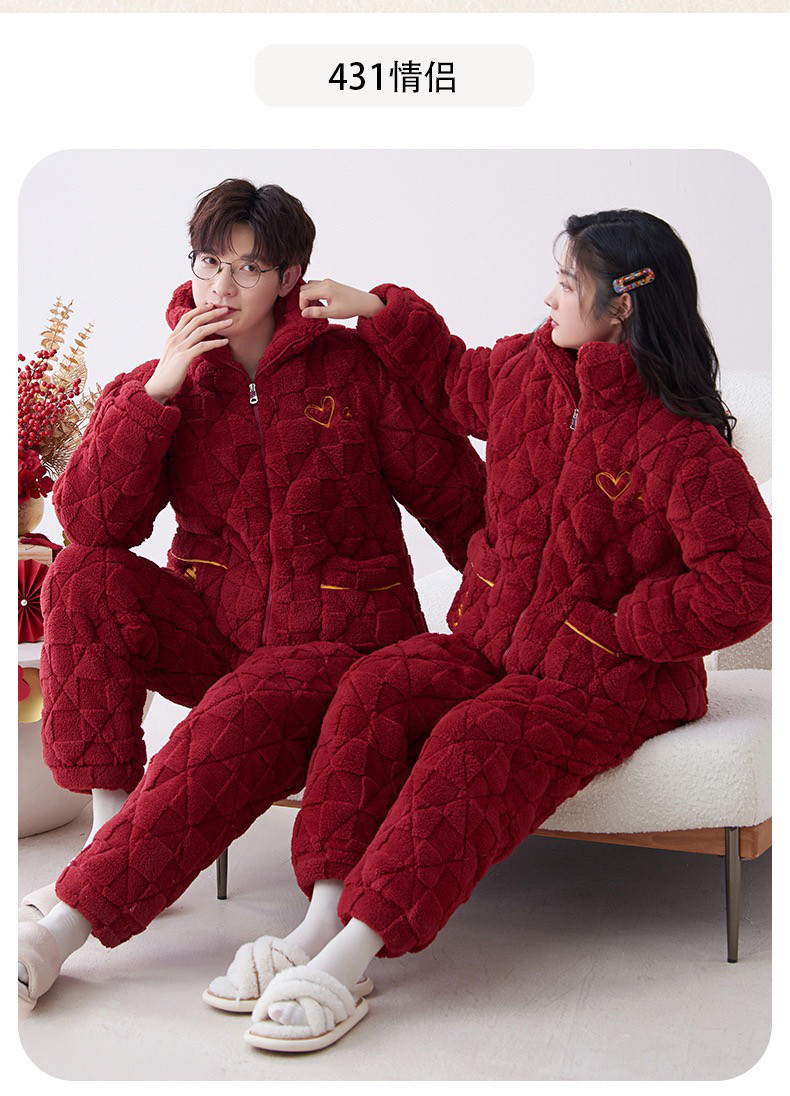 New Winter Three-Layer Quilted Couple's Pajamas for Men and Women, Bright Red Wedding Warm Fleece-Lined Thickened Winter Loungewear