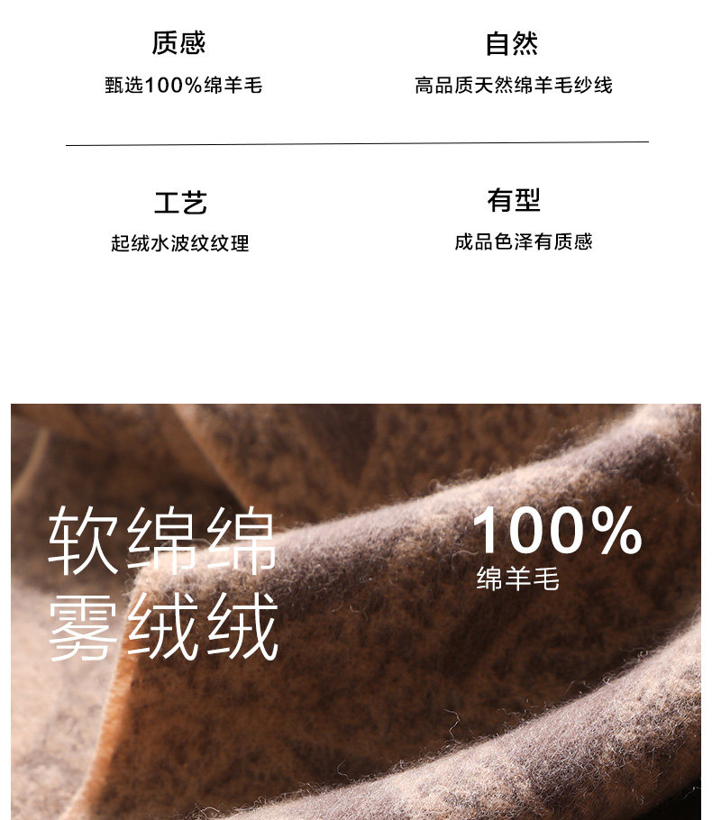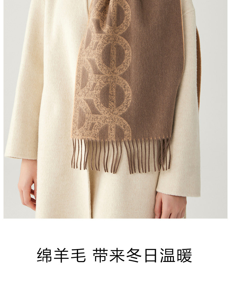 100% Wool Scarf for Women in Winter 2025 New Geometric Brown High-End Melard Neck Scarf Shawl to Match with Coat
