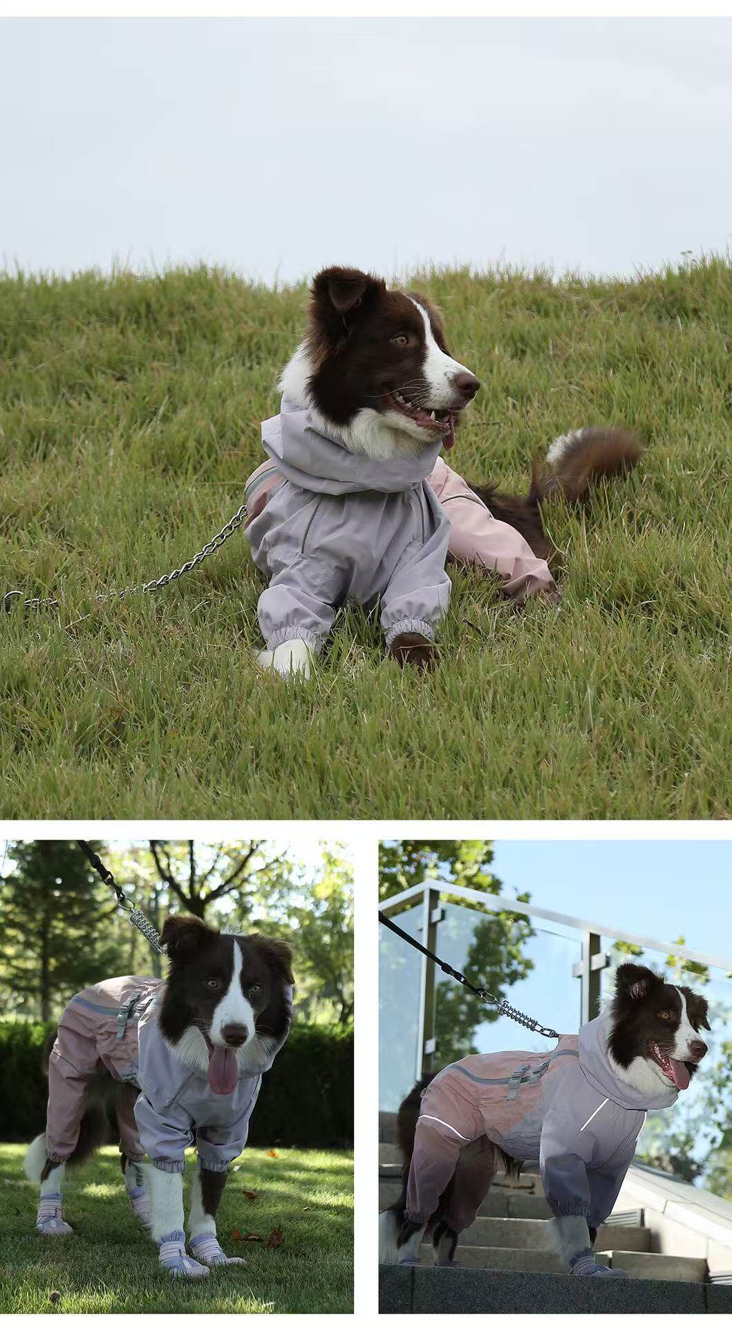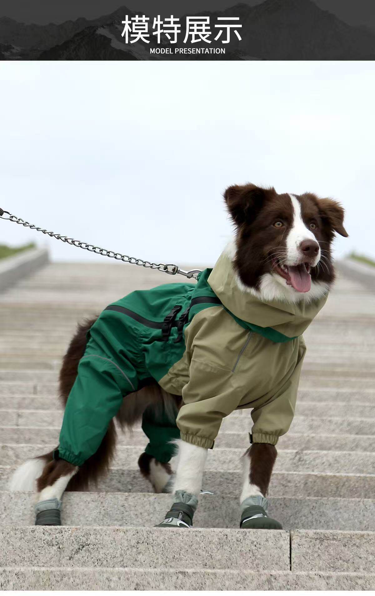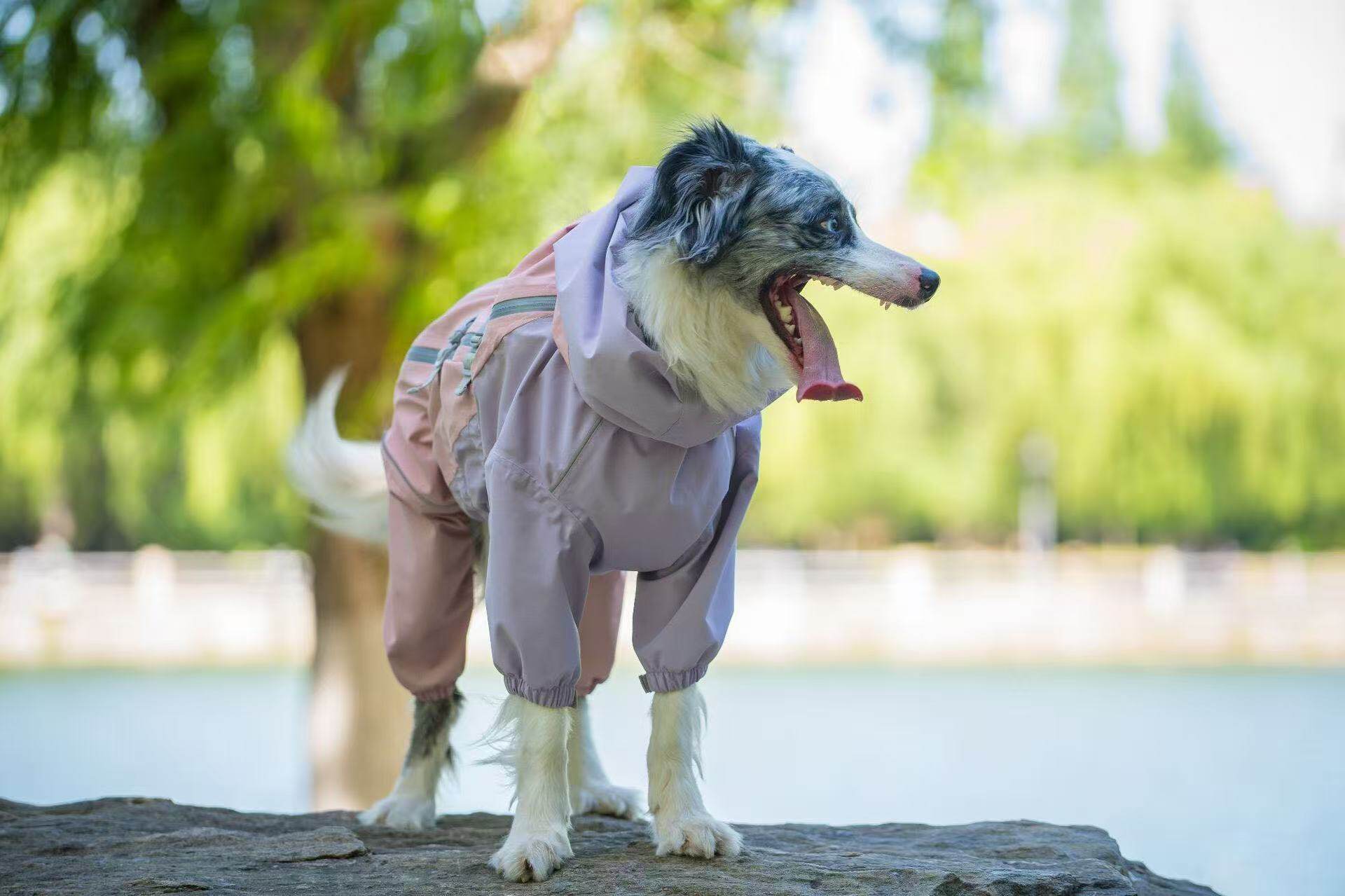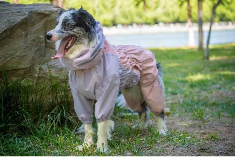 Dog Raincoat, Four-Legged Full-Cover Hooded Jacket for Border Collies, Golden Retrievers, Medium and Large Dogs, Waterproof All-Season Dog Clothing, Rain Poncho