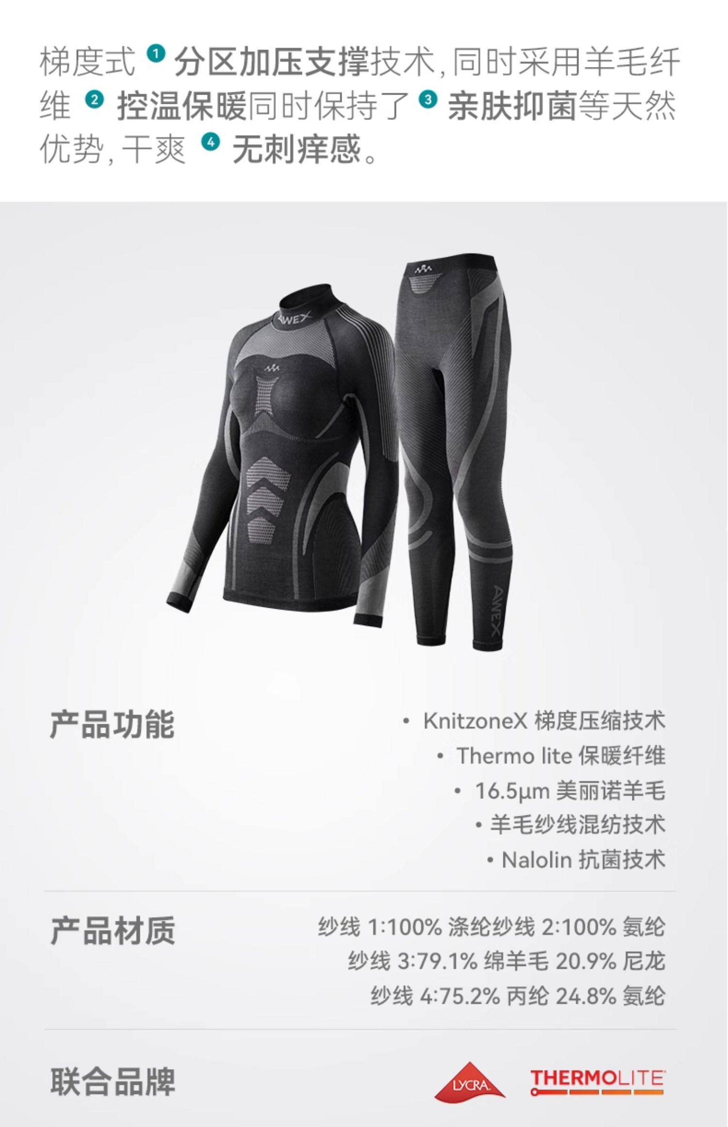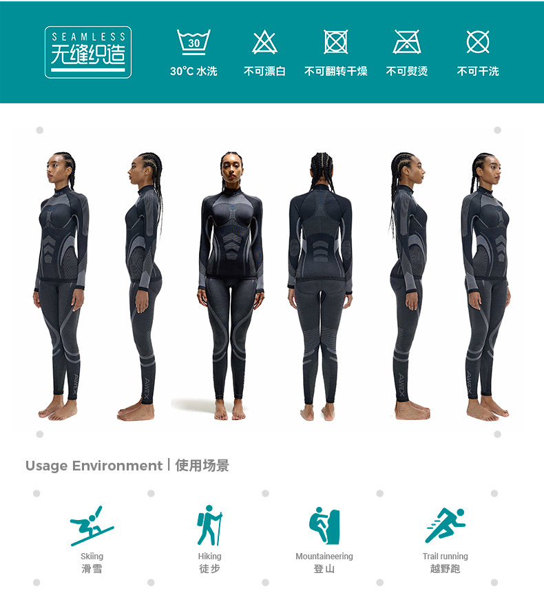 Merino wool ski quick-drying women's outdoor thermal functional underwear