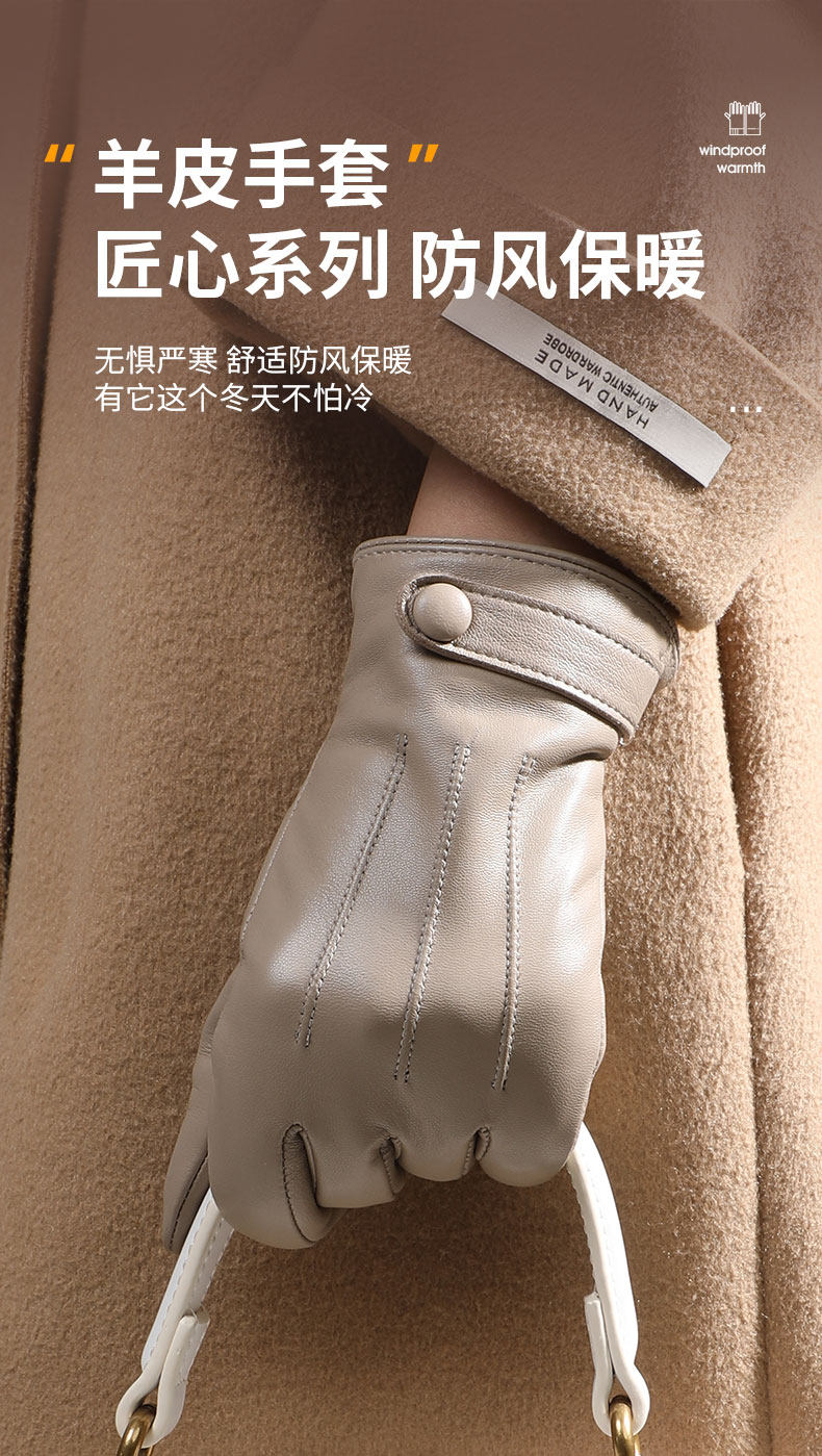 Sheepskin Gloves for Women, Winter Fleece-Lined, Warm, Suitable for Driving, Outdoor Cycling, Windproof, Cold-Resistant, Genuine Leather Gloves, Touch Screen Compatible