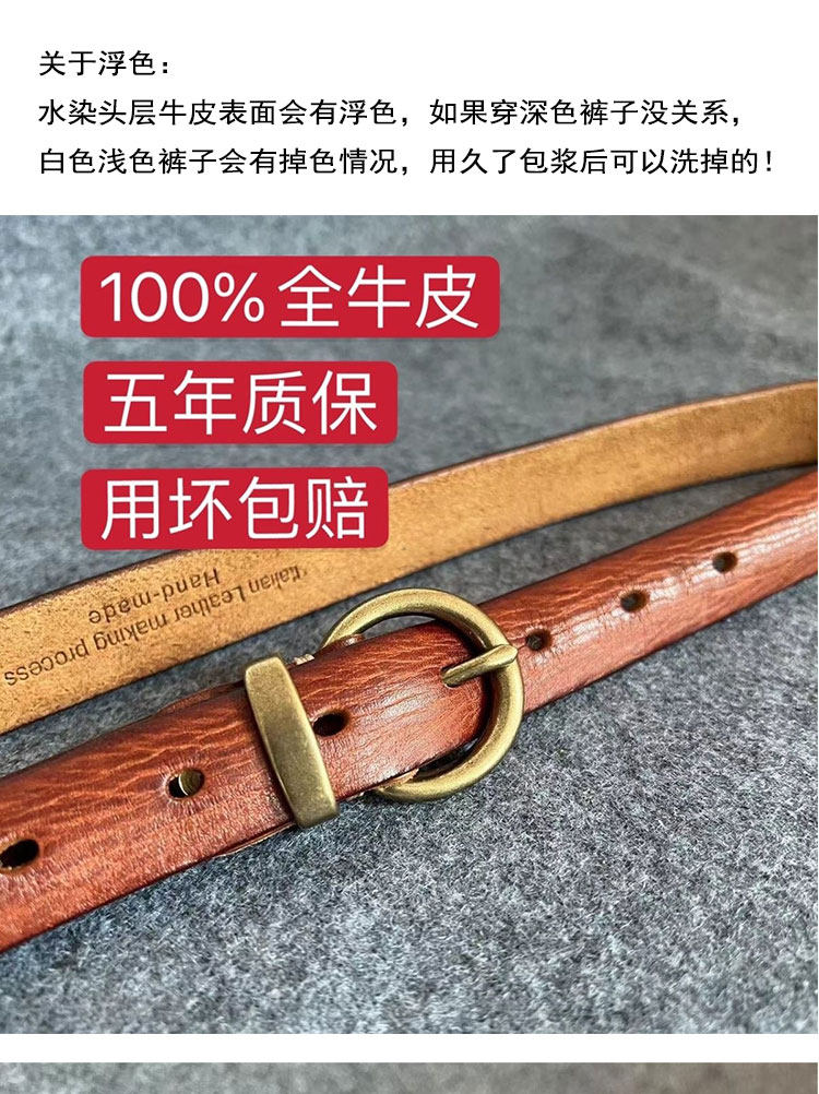 Brown Genuine Leather Women's Belt, 2025 New Model, Suitable for Jeans, High-End Feel, Versatile Cowhide Belt for Women