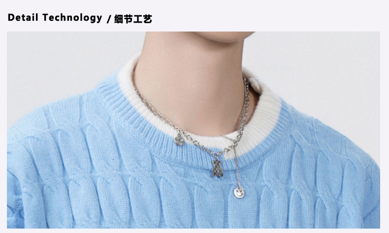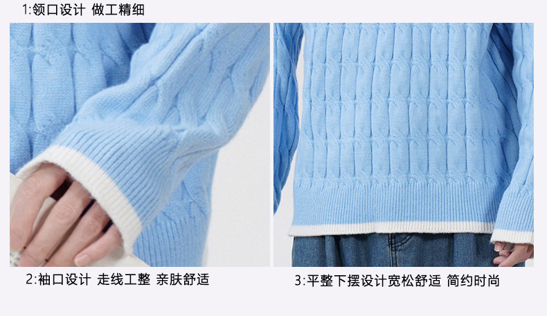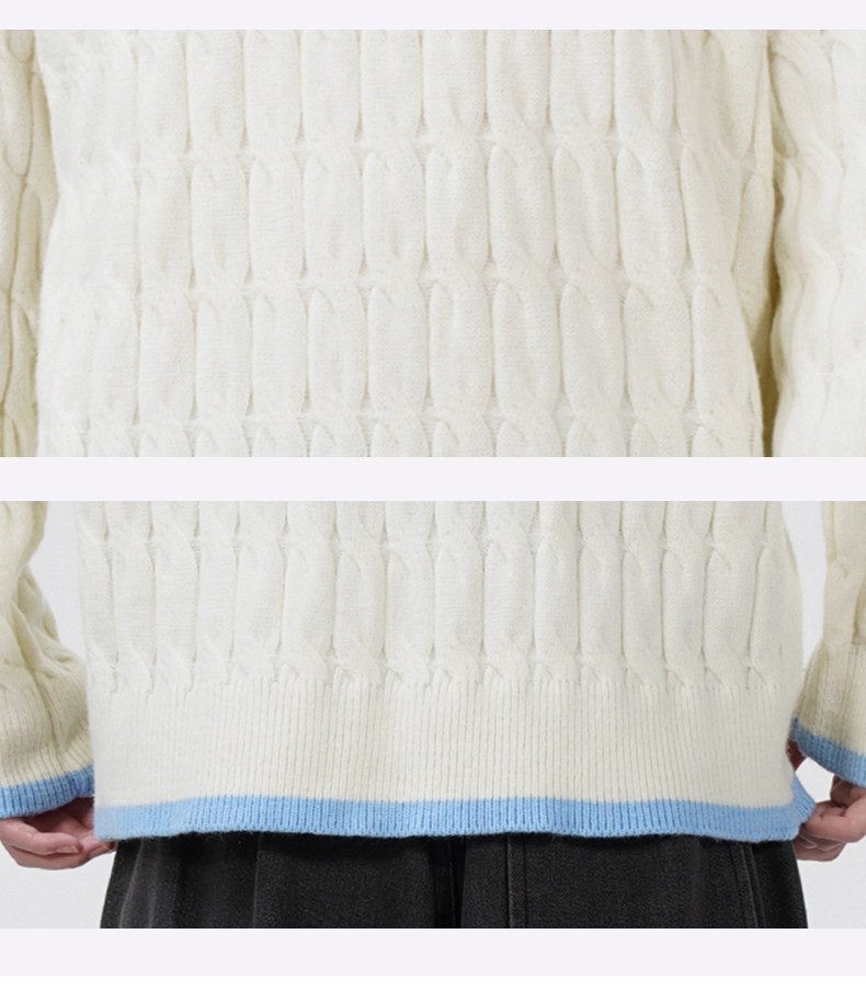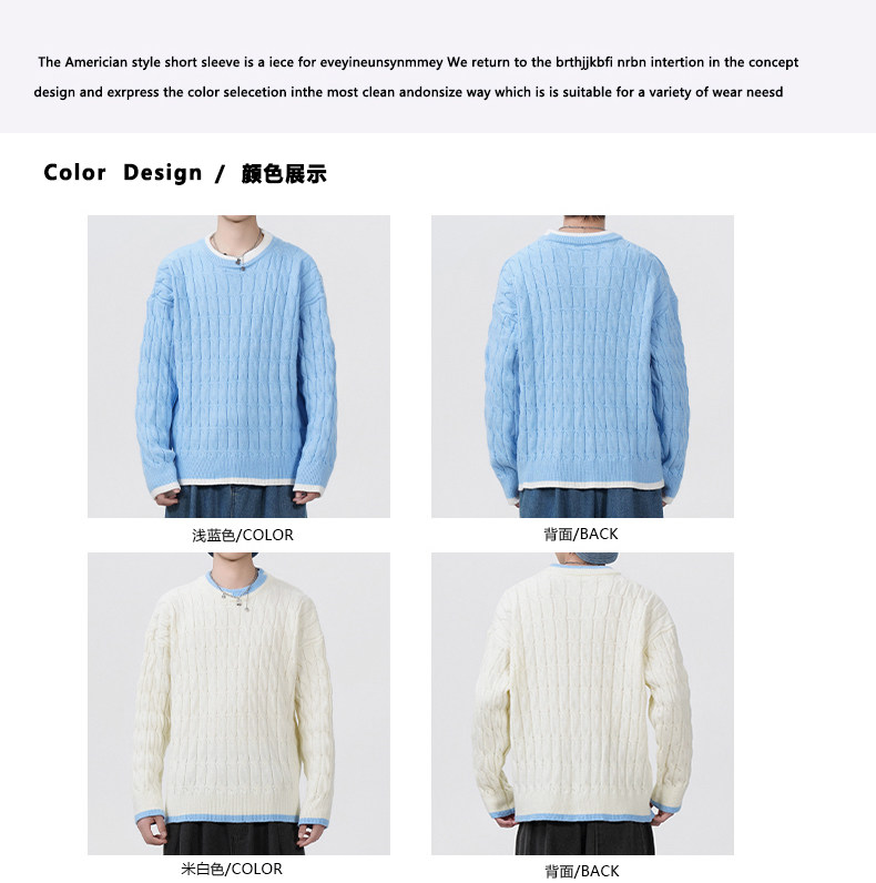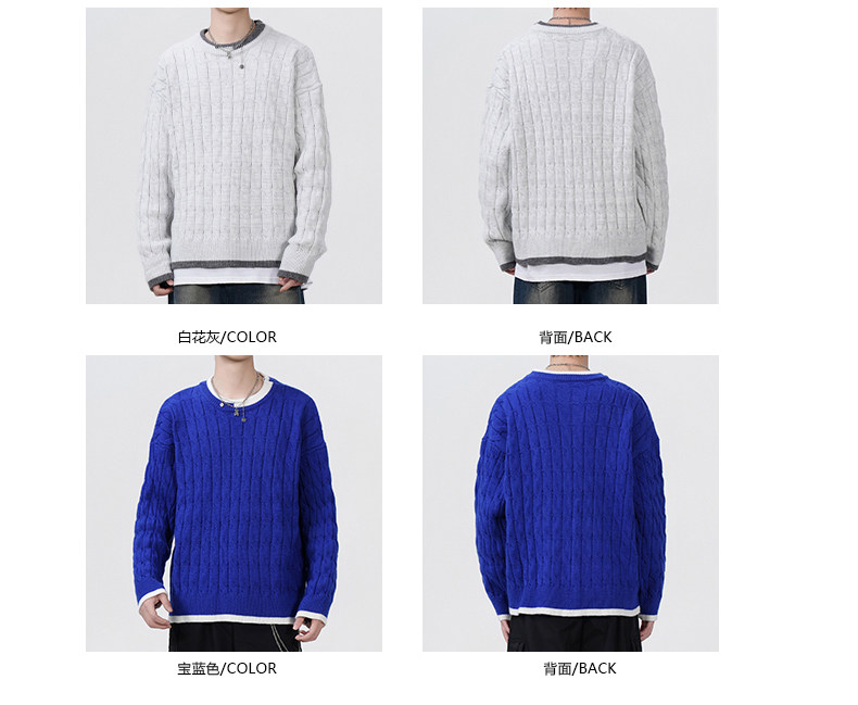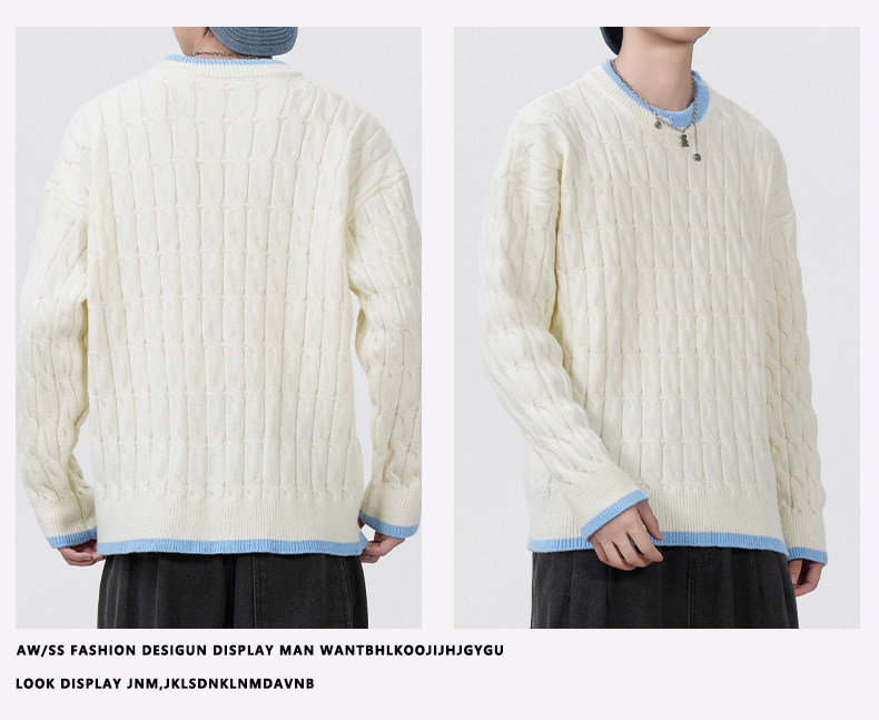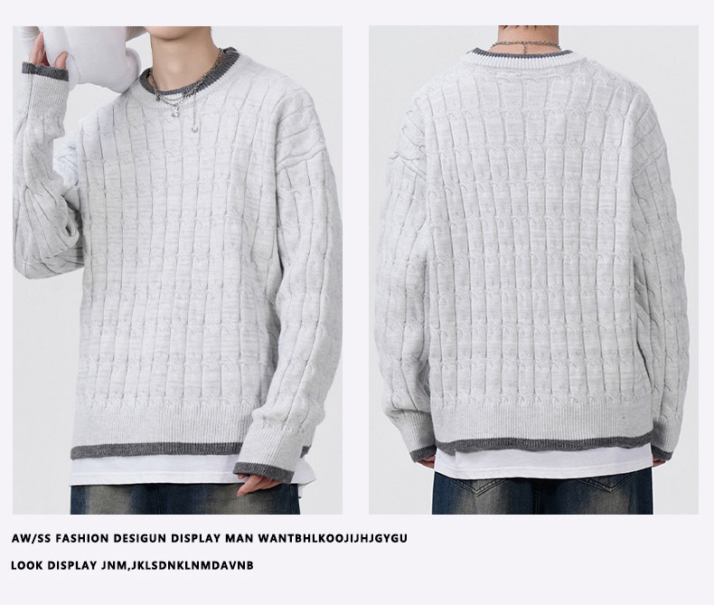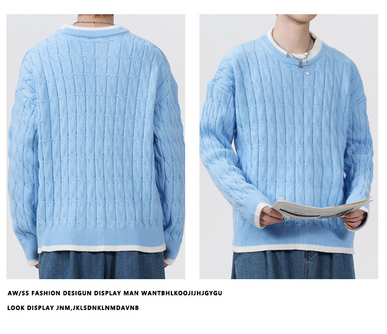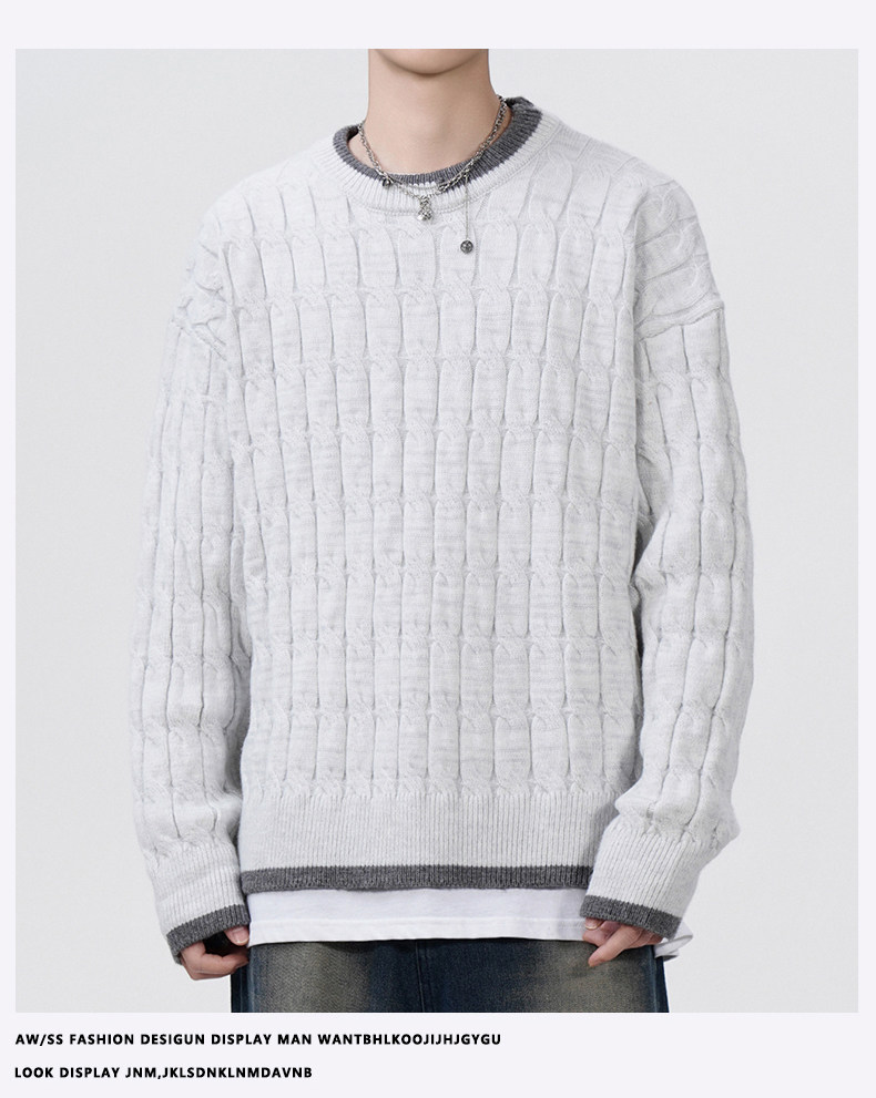 Cable pattern round neck sweater men's autumn and winter 2025 new high-end loose contrast color plus velvet pullover sweater