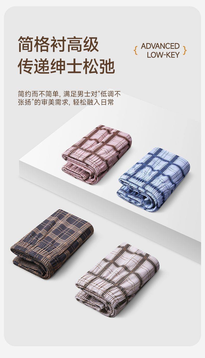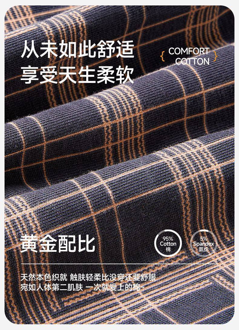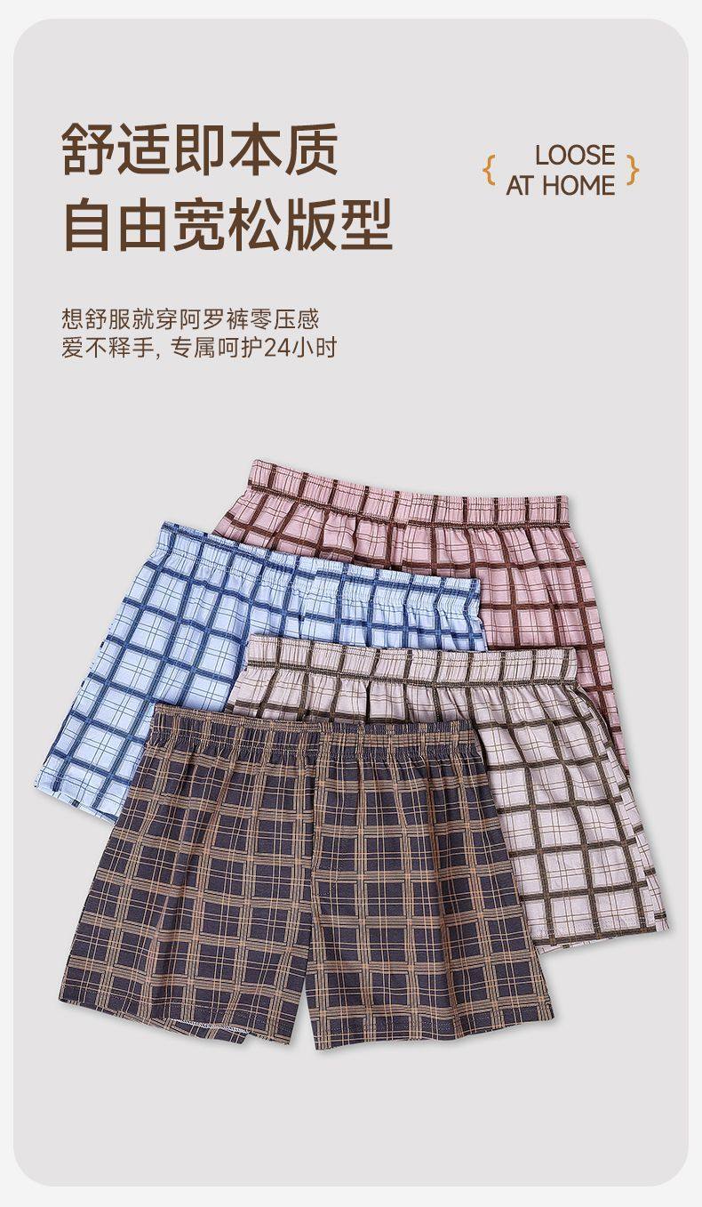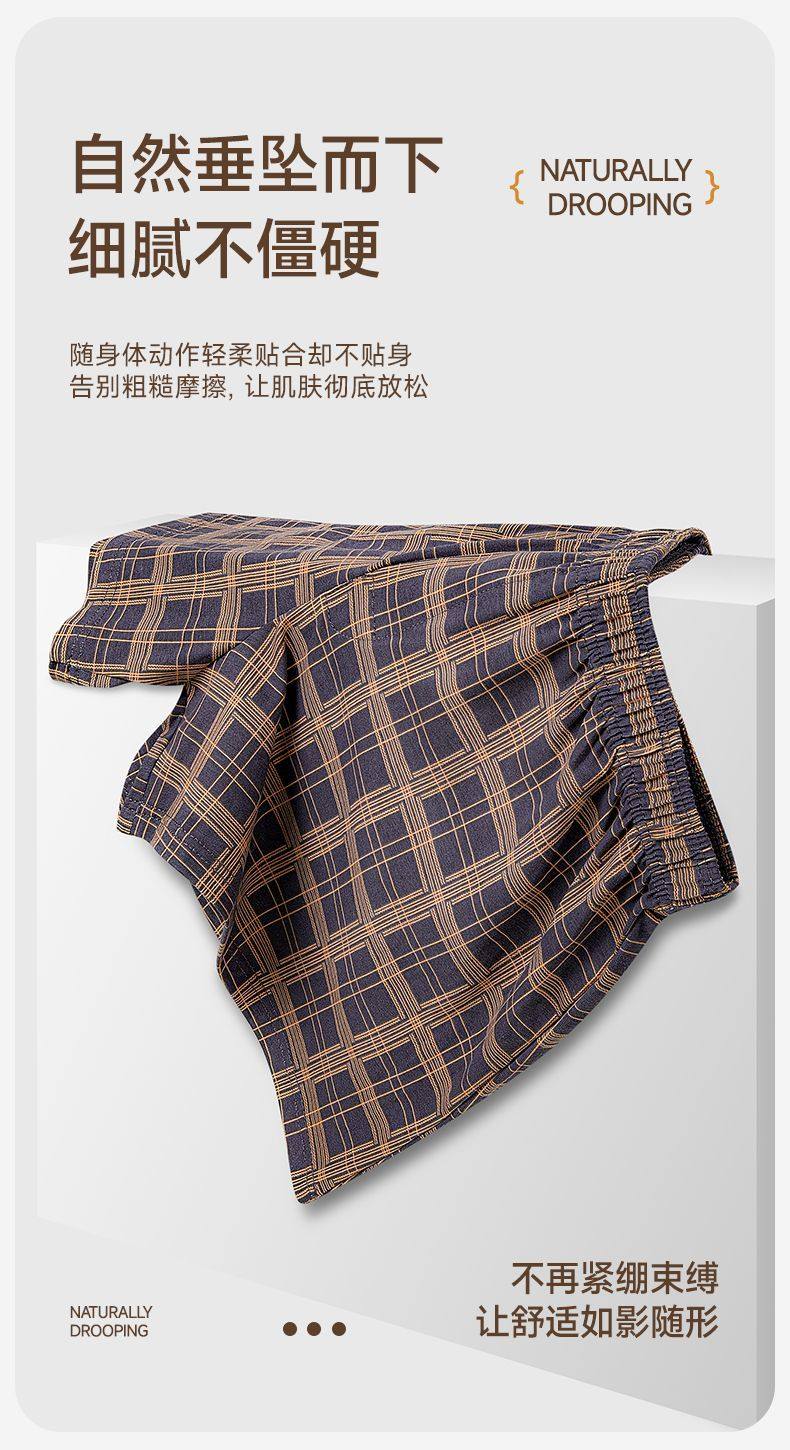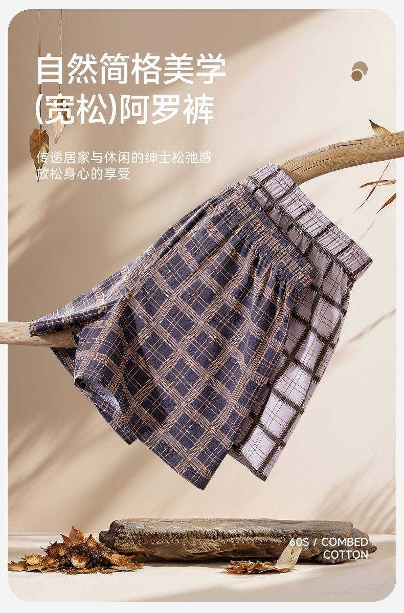 [One Pair, Multiple Wears]Men's Underwear, Boxer Shorts, Pure Cotton, Plaid, Casual, Large Size, Sleep Pants, Home Wear, Four-Corner Shorts
