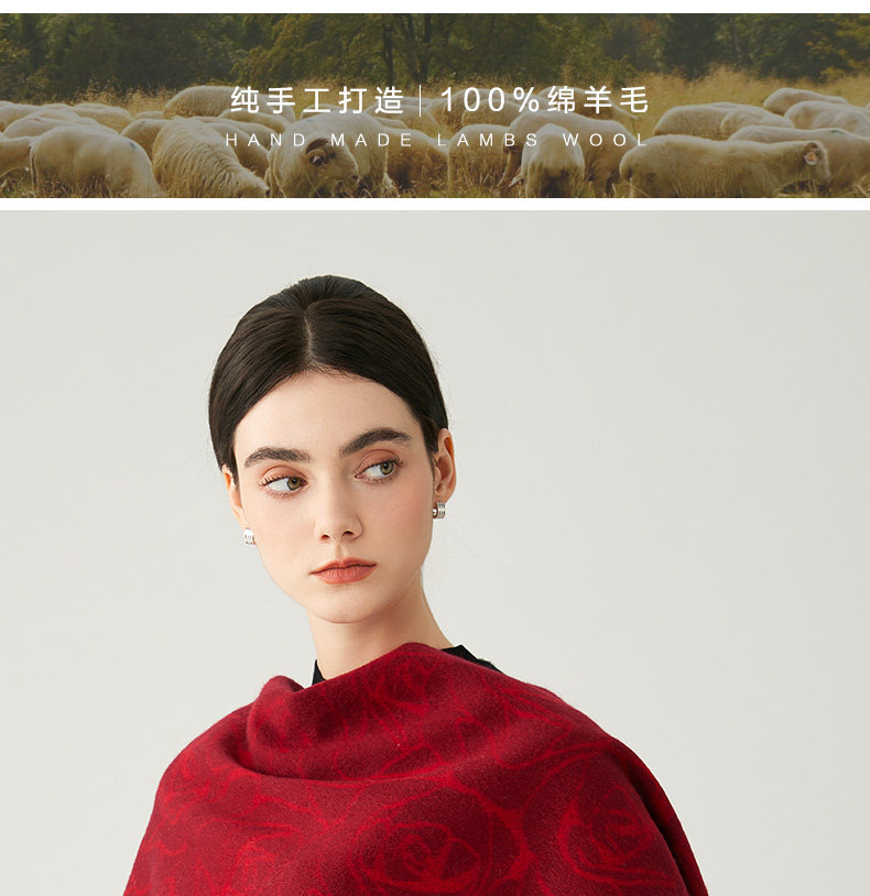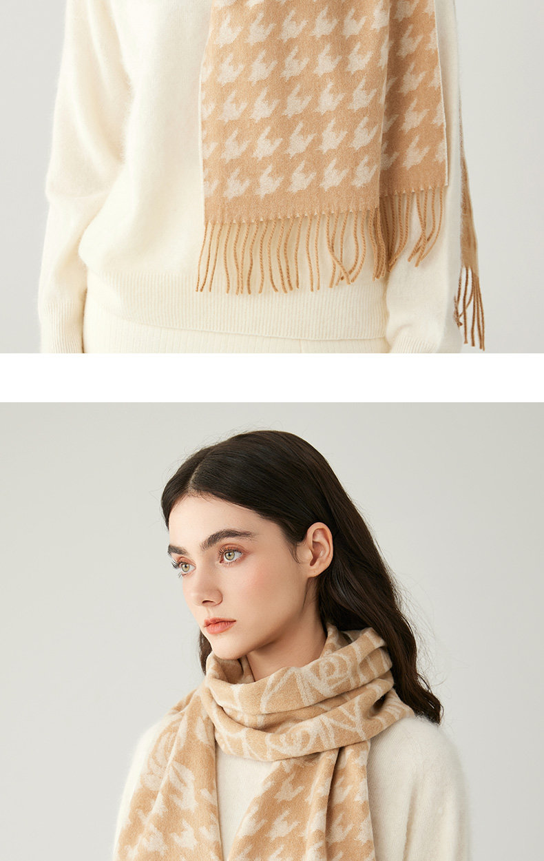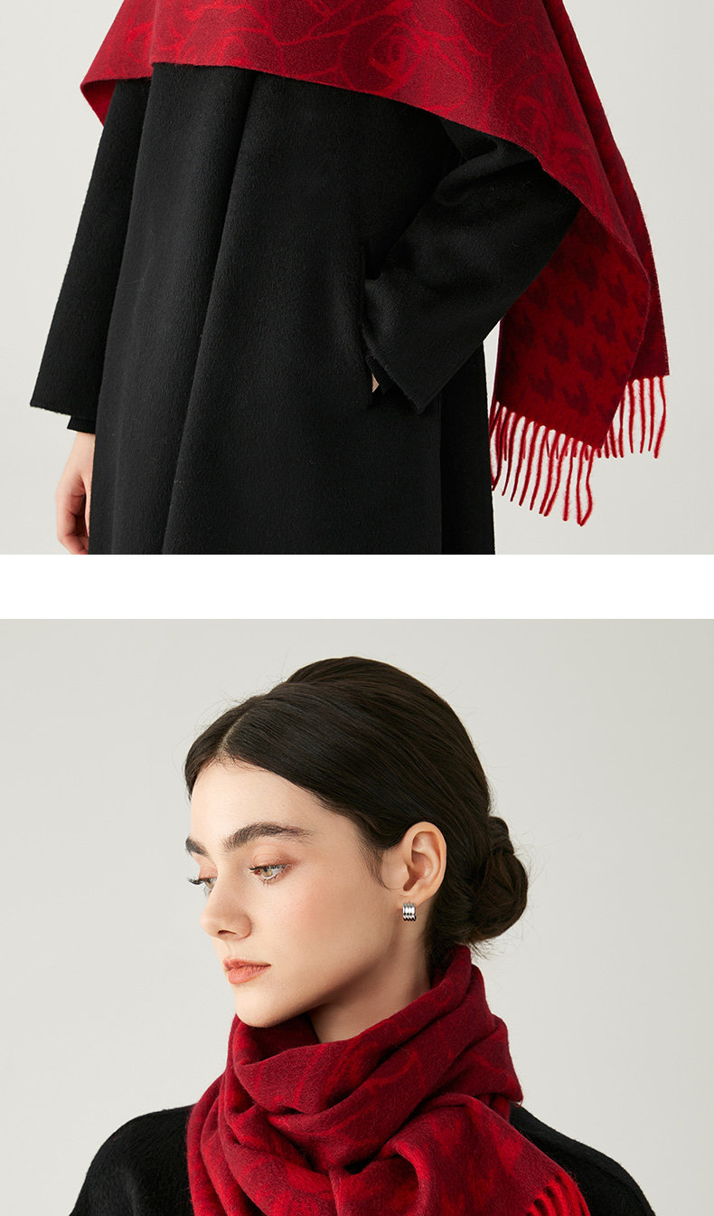 Pure Wool Scarf for Women, Winter 2025 New Model, High-End Red Chinese Red Scarf, Houndstooth Shawl to Match with Coat