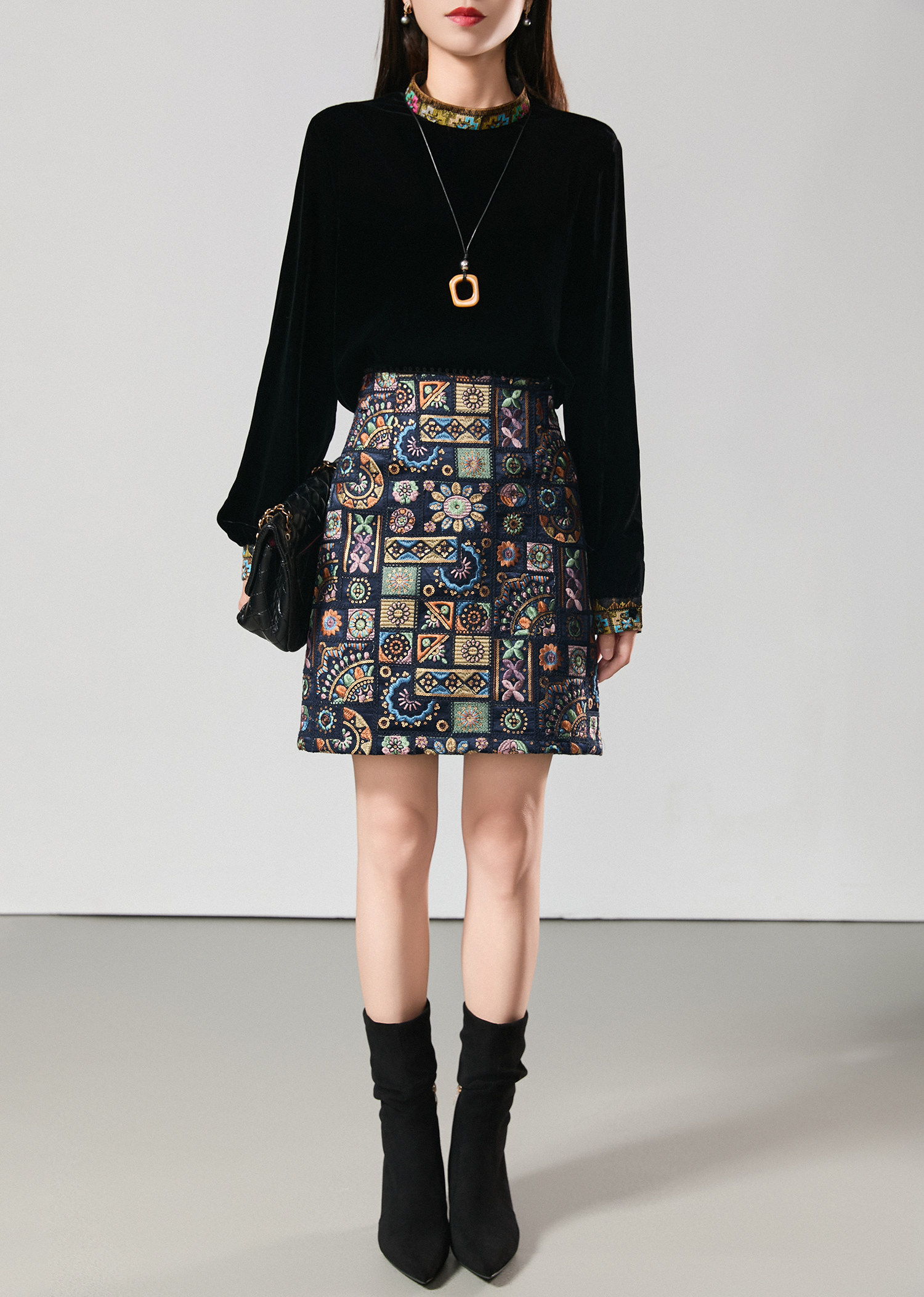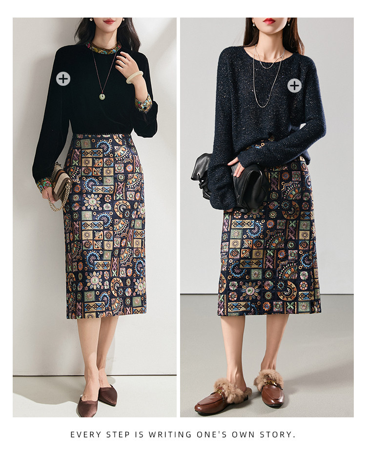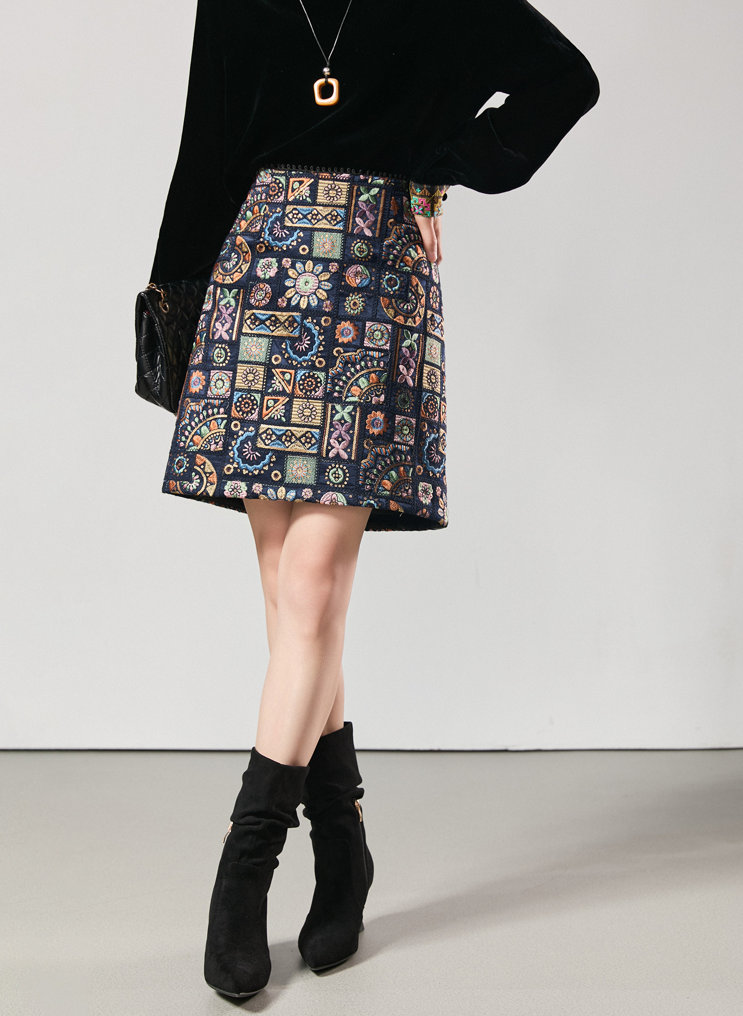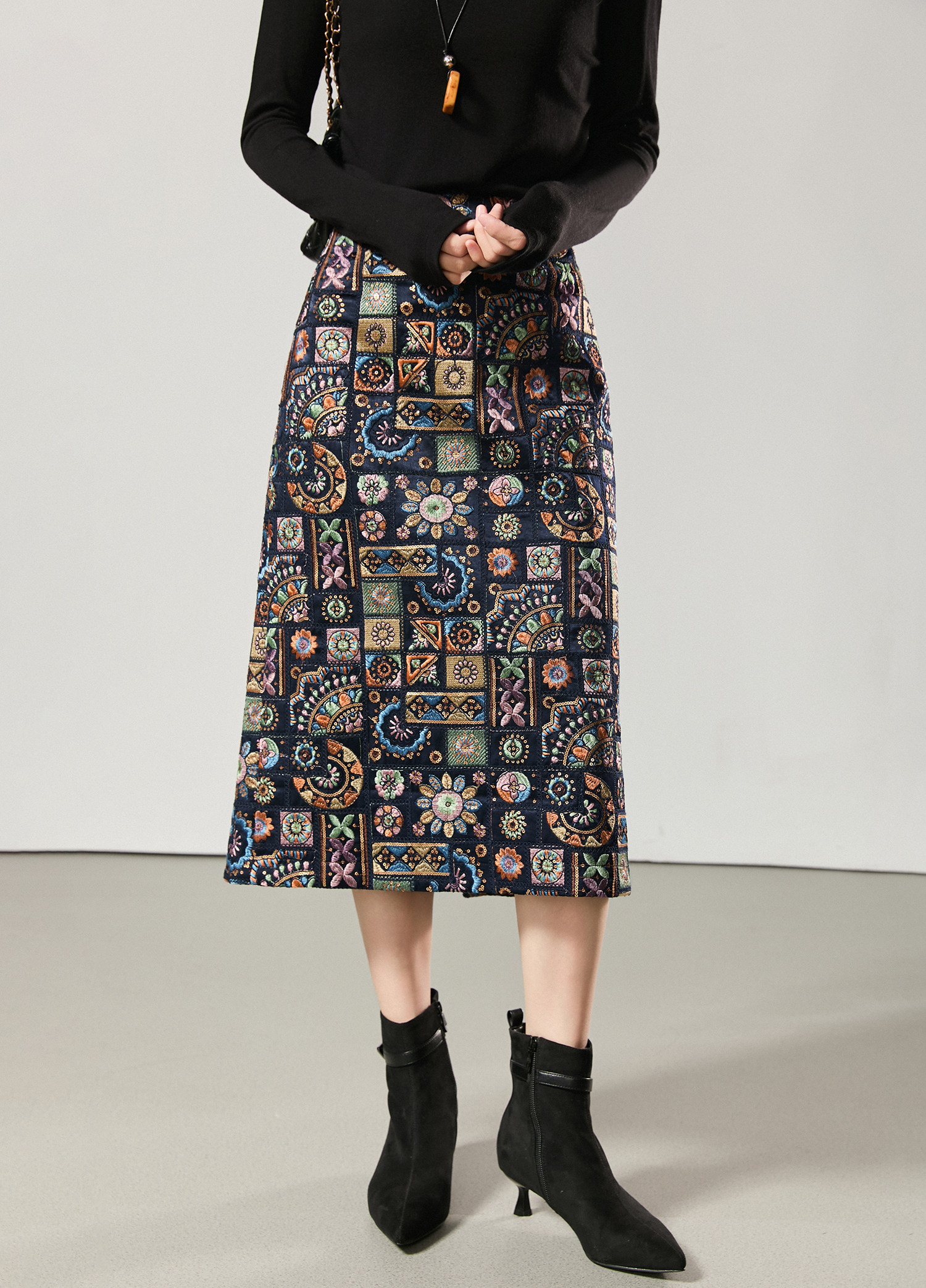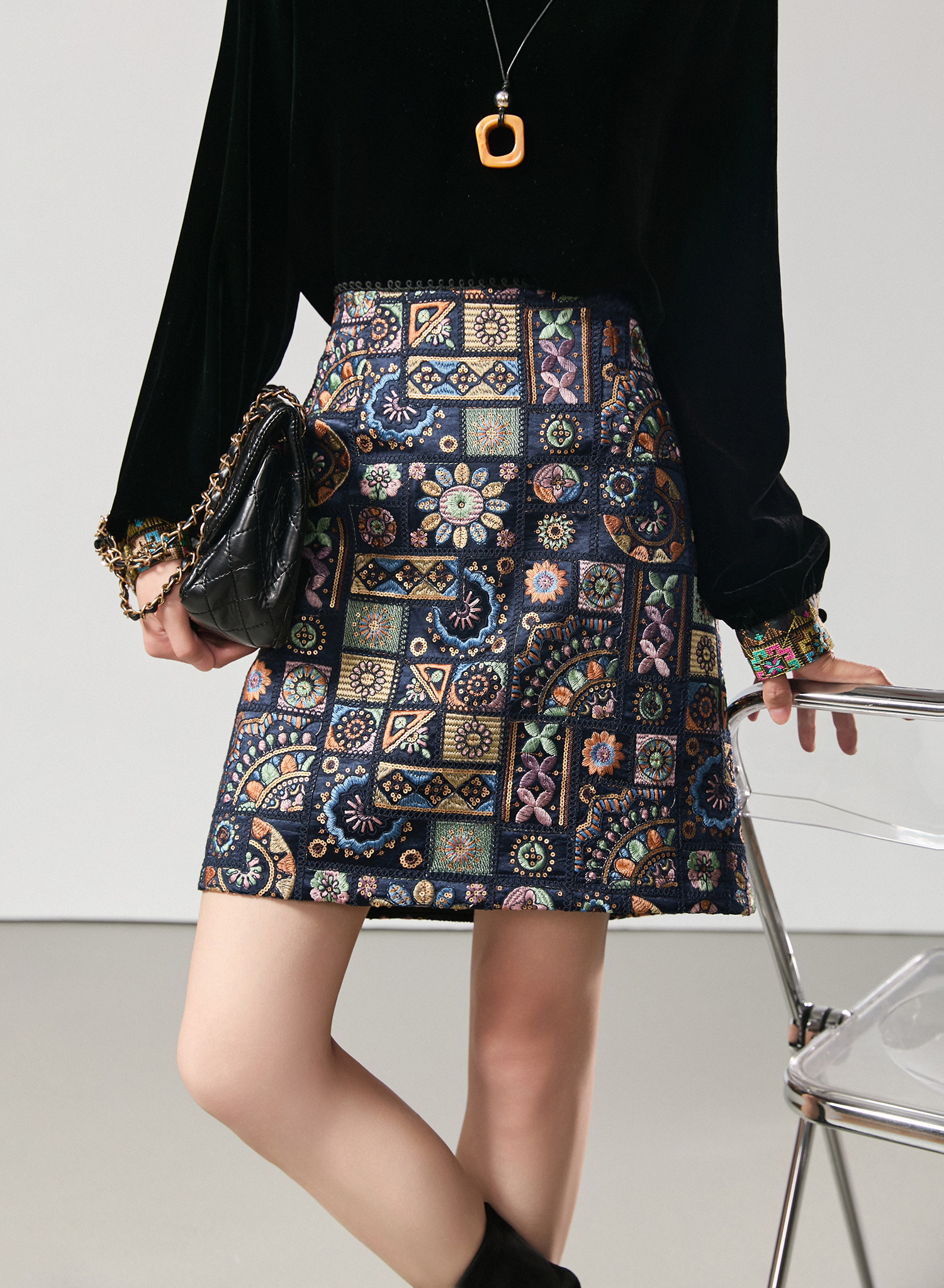 Jianman ethnic style heavy sequin embroidered high waist skirt retro temperament A-line skirt for women in autumn and winter