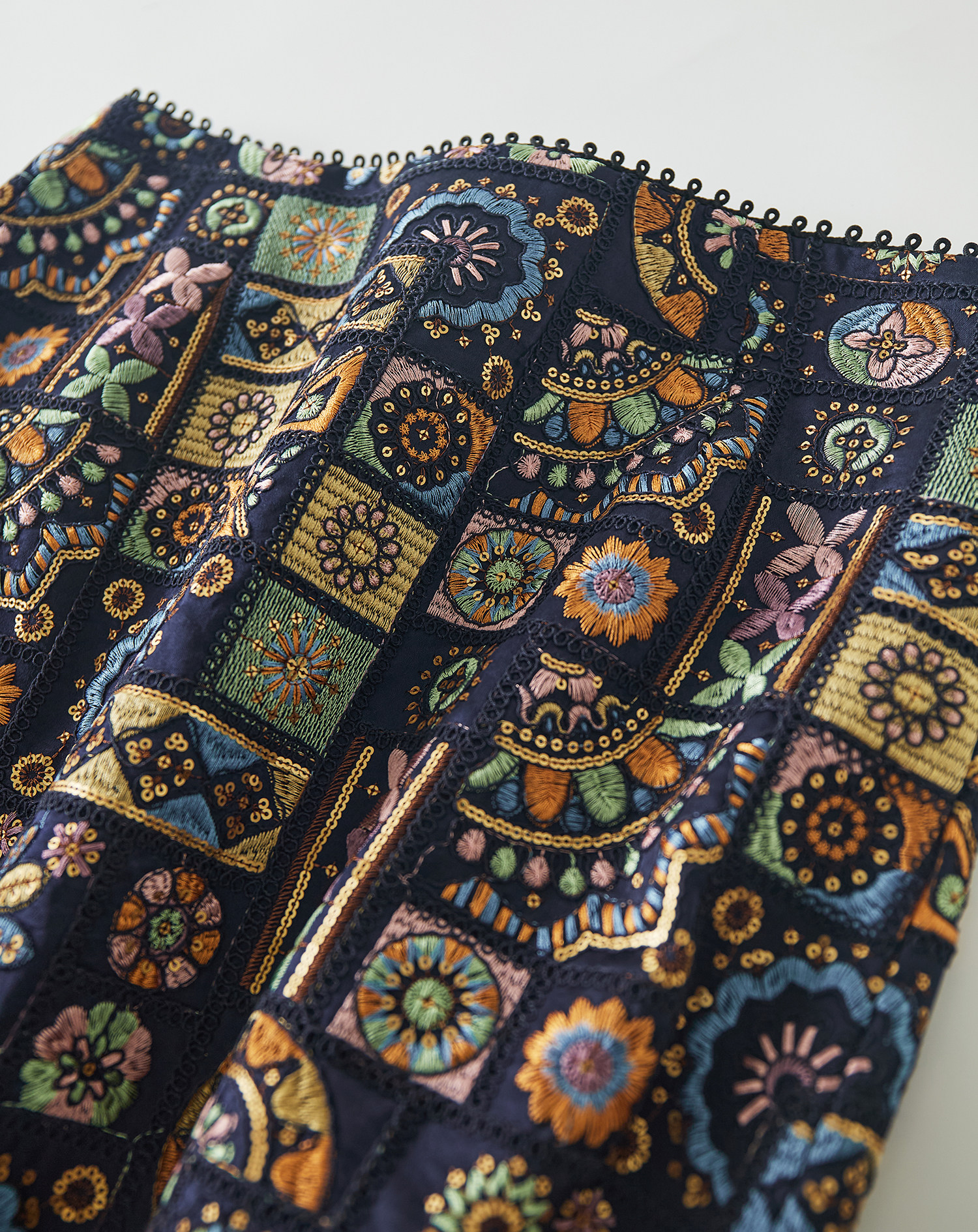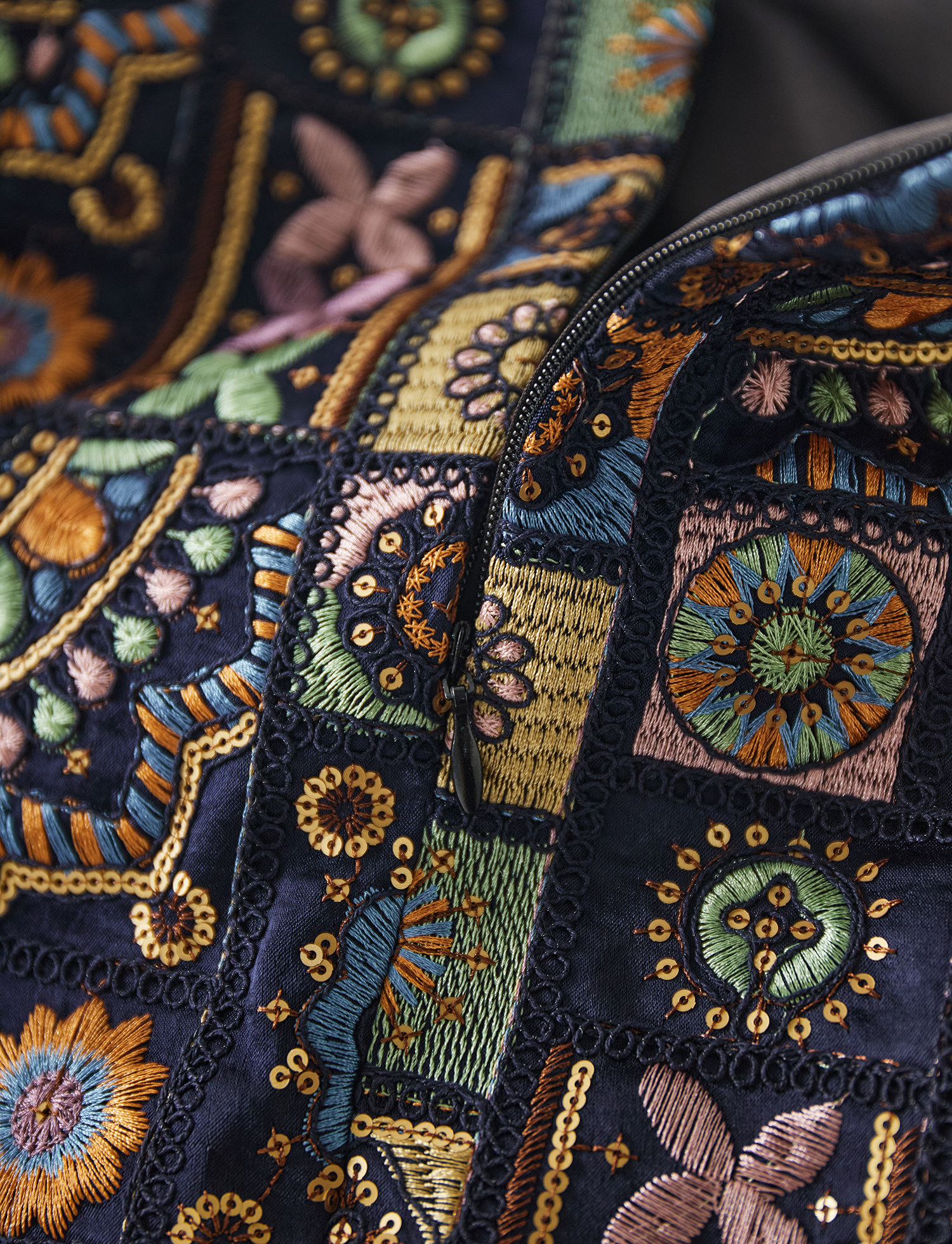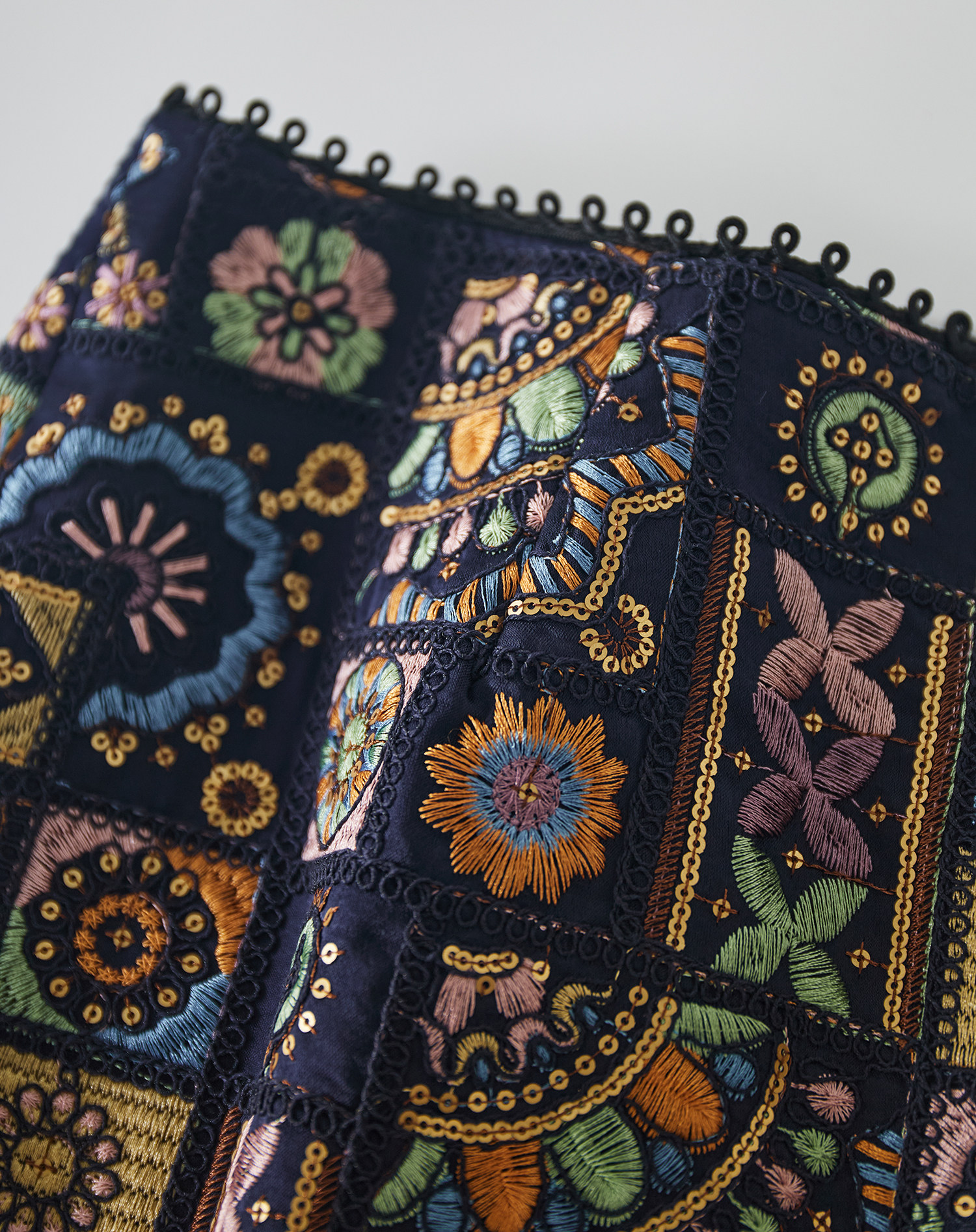 刺绣针法细腻入微,予面料丰富质感与立体层次