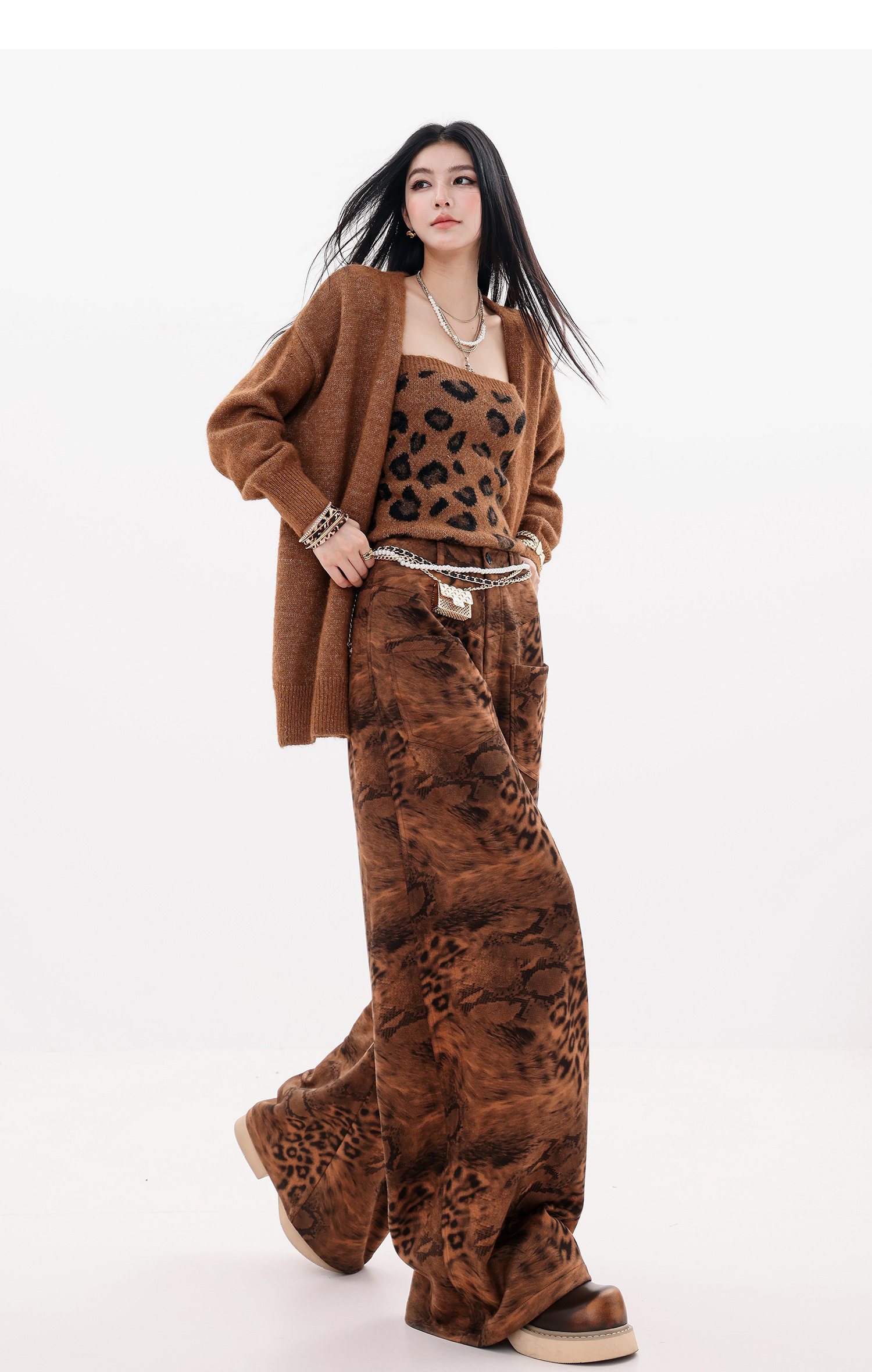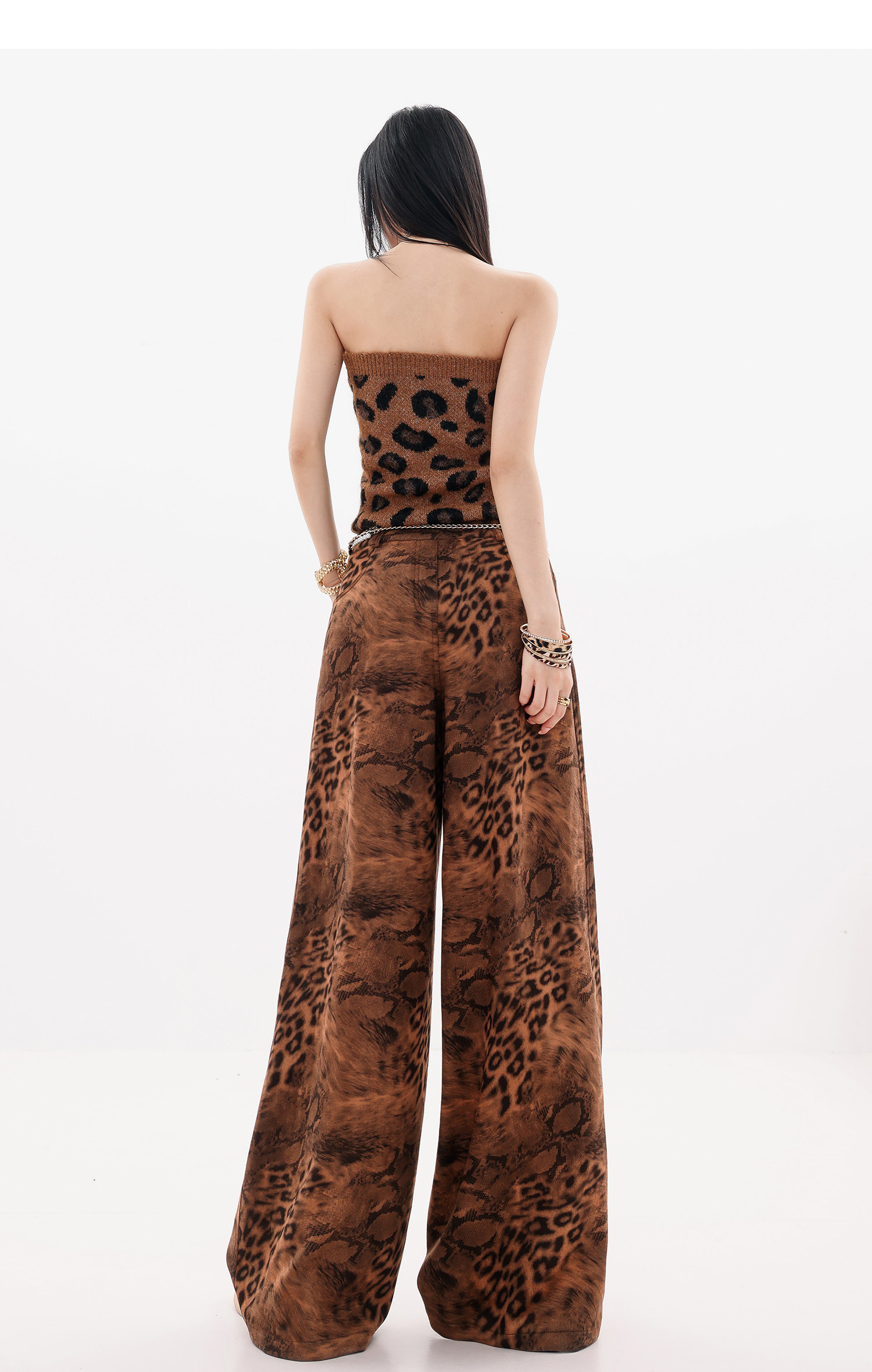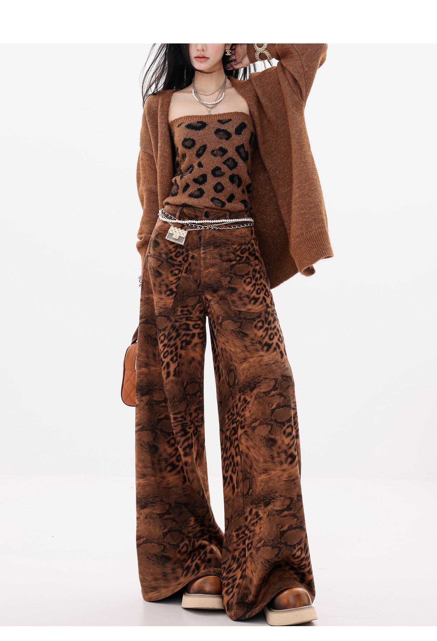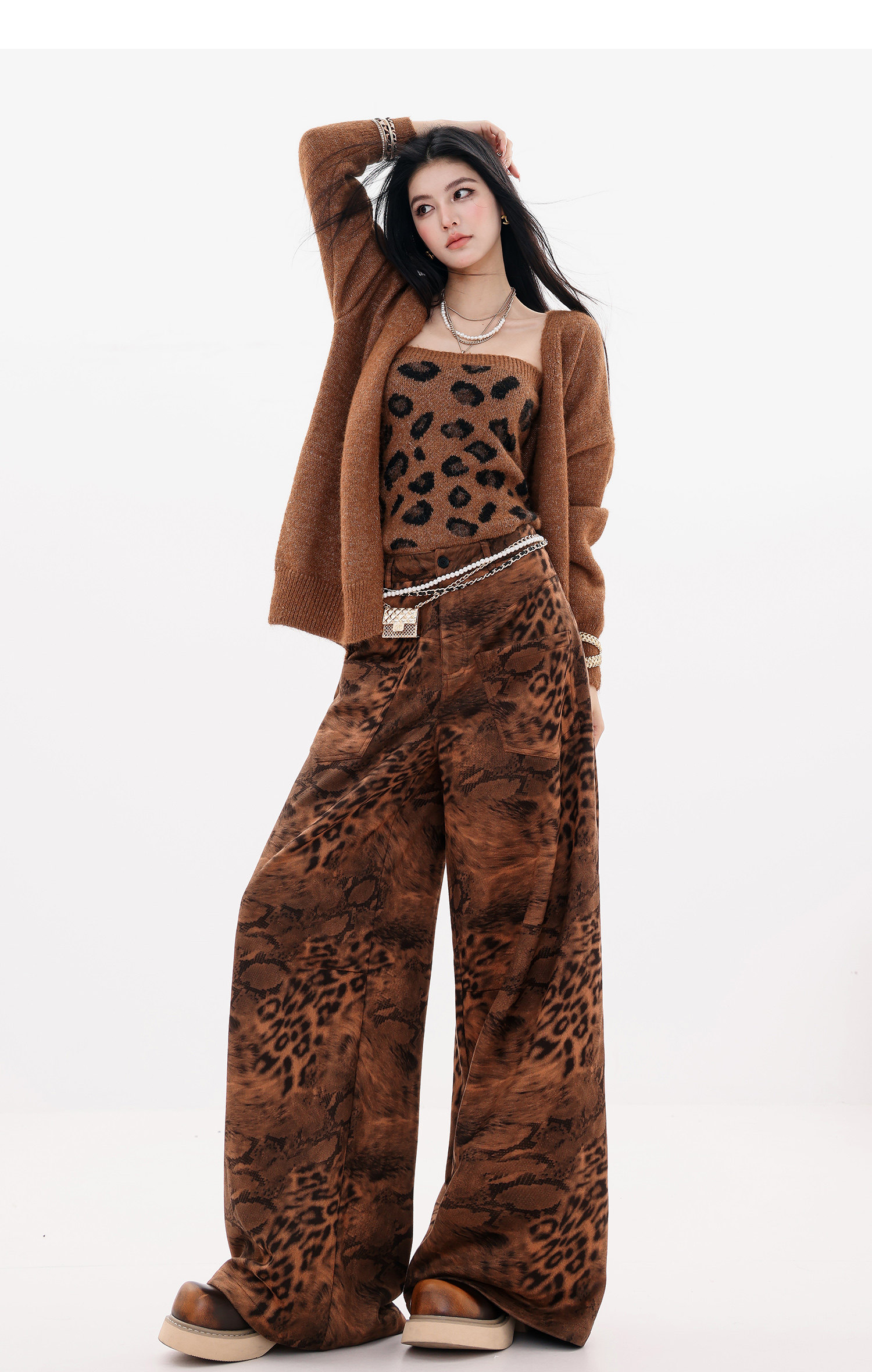 Abwlr Rum Black Tea - Original Leopard Print Casual Pants for Women, New Autumn/Winter Loose Fit Versatile Straight Wide-Leg Pants