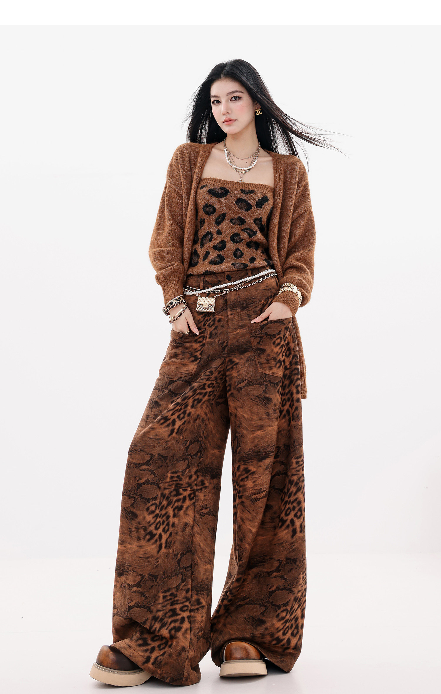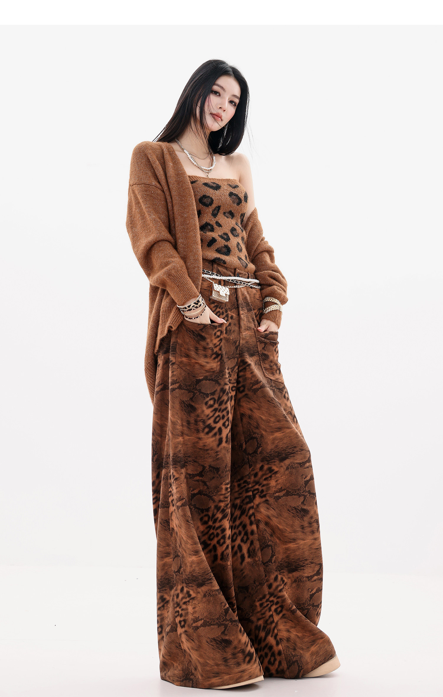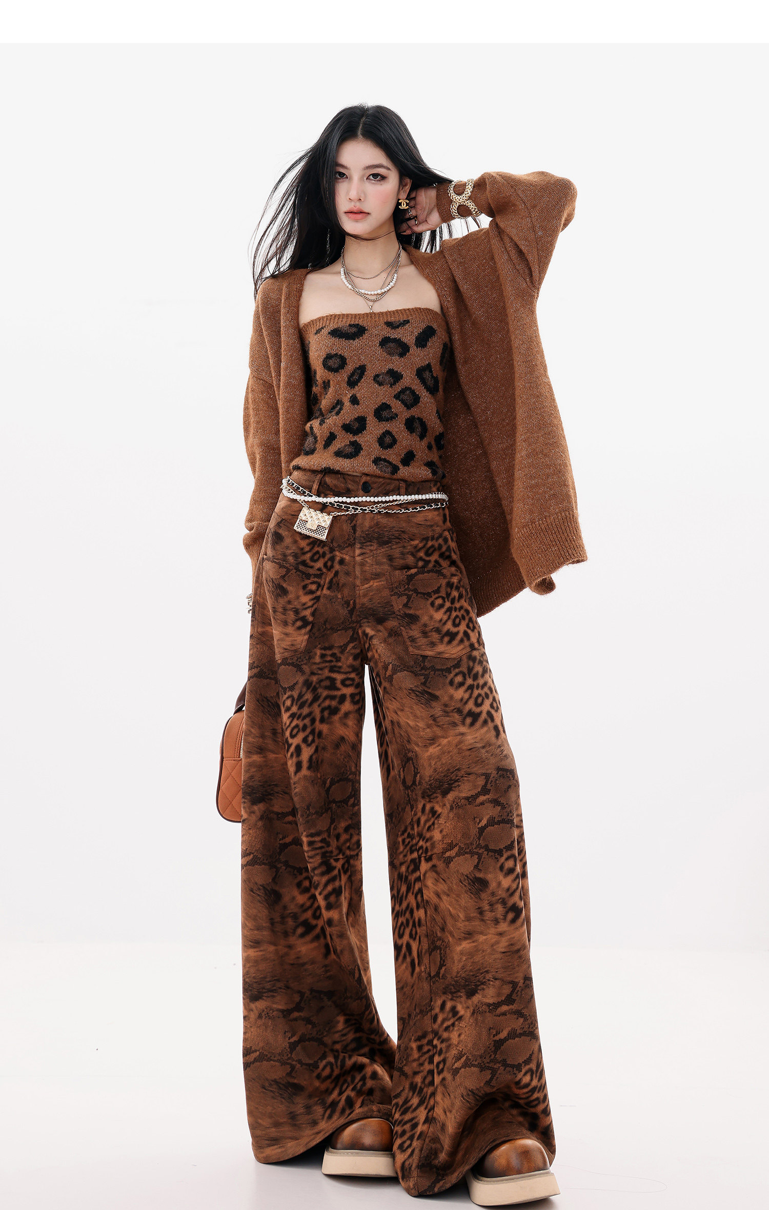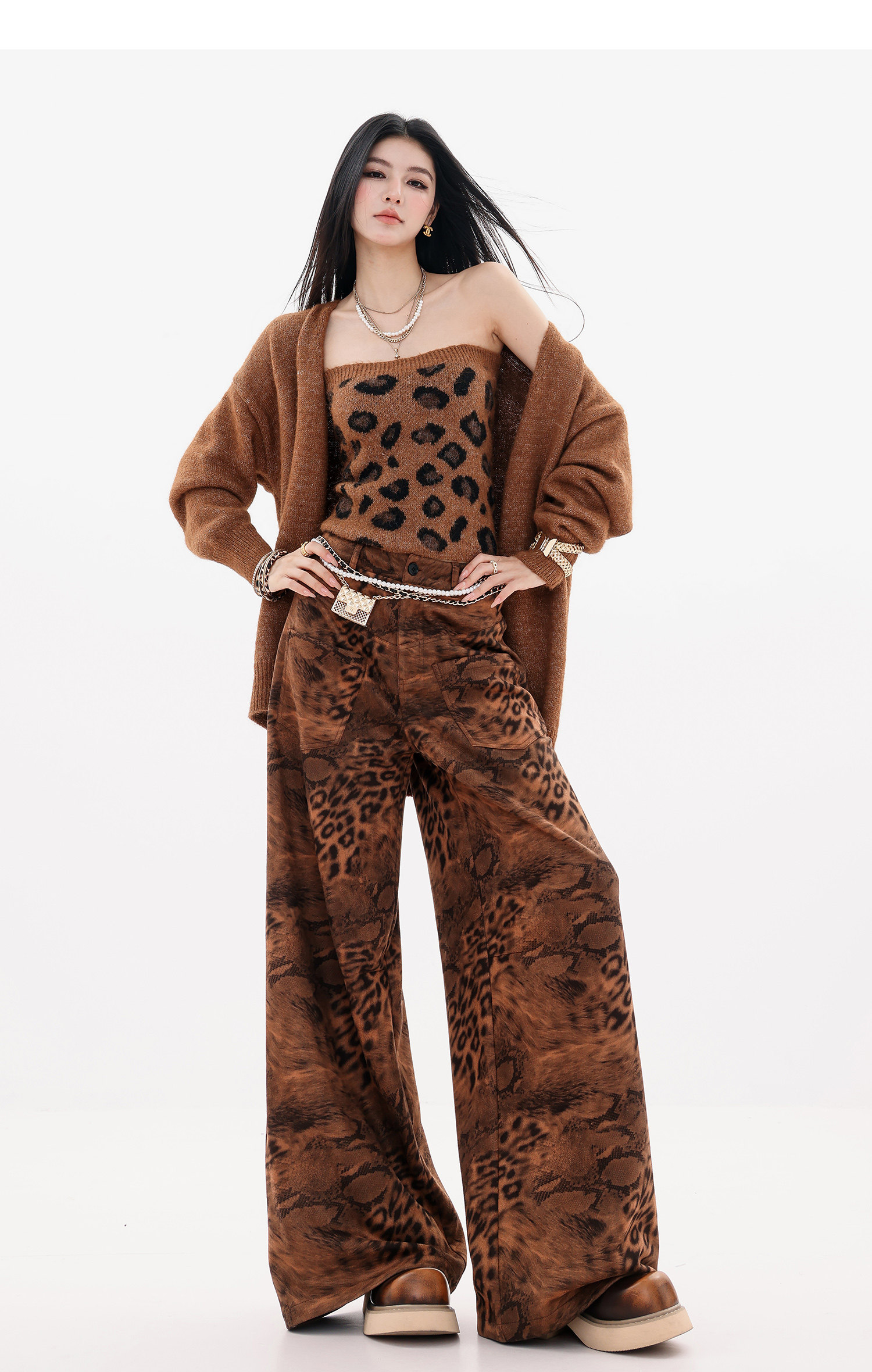 Abwlr Rum Black Tea - Original Leopard Print Casual Pants for Women, New Autumn/Winter Loose Fit Versatile Straight Wide-Leg Pants
