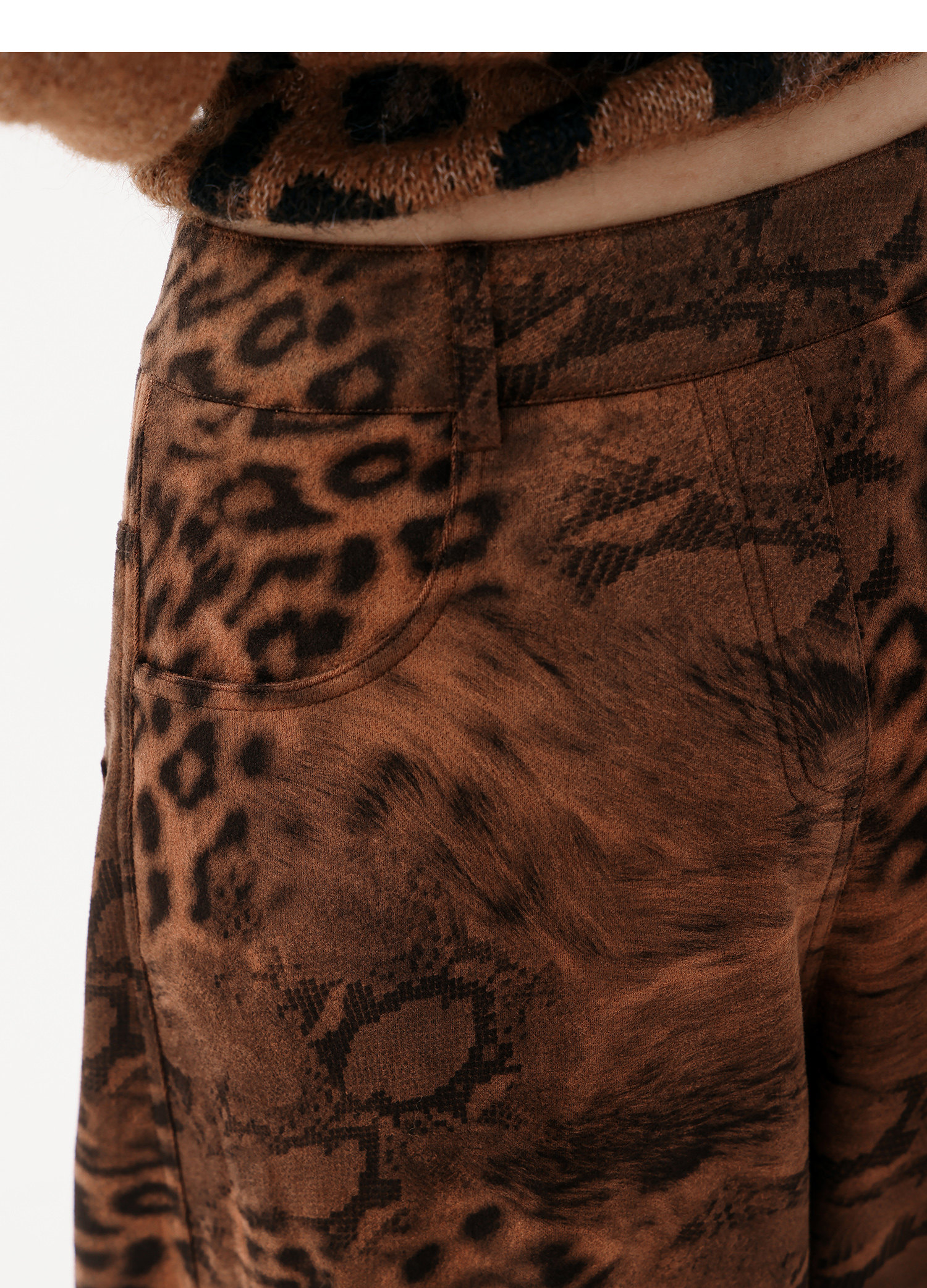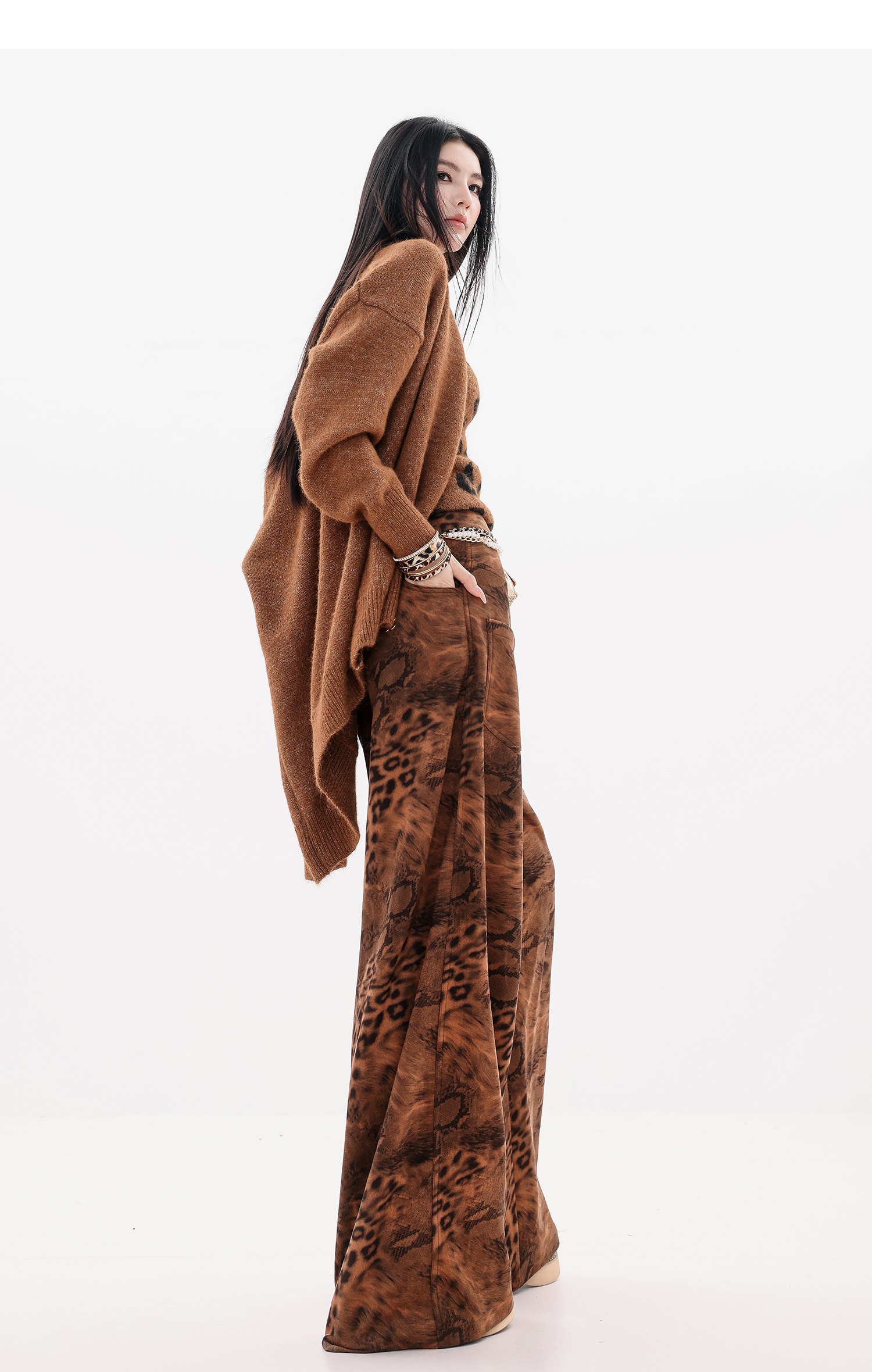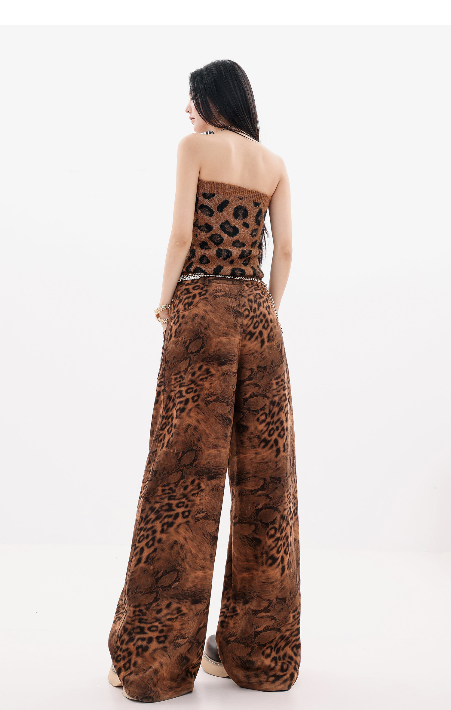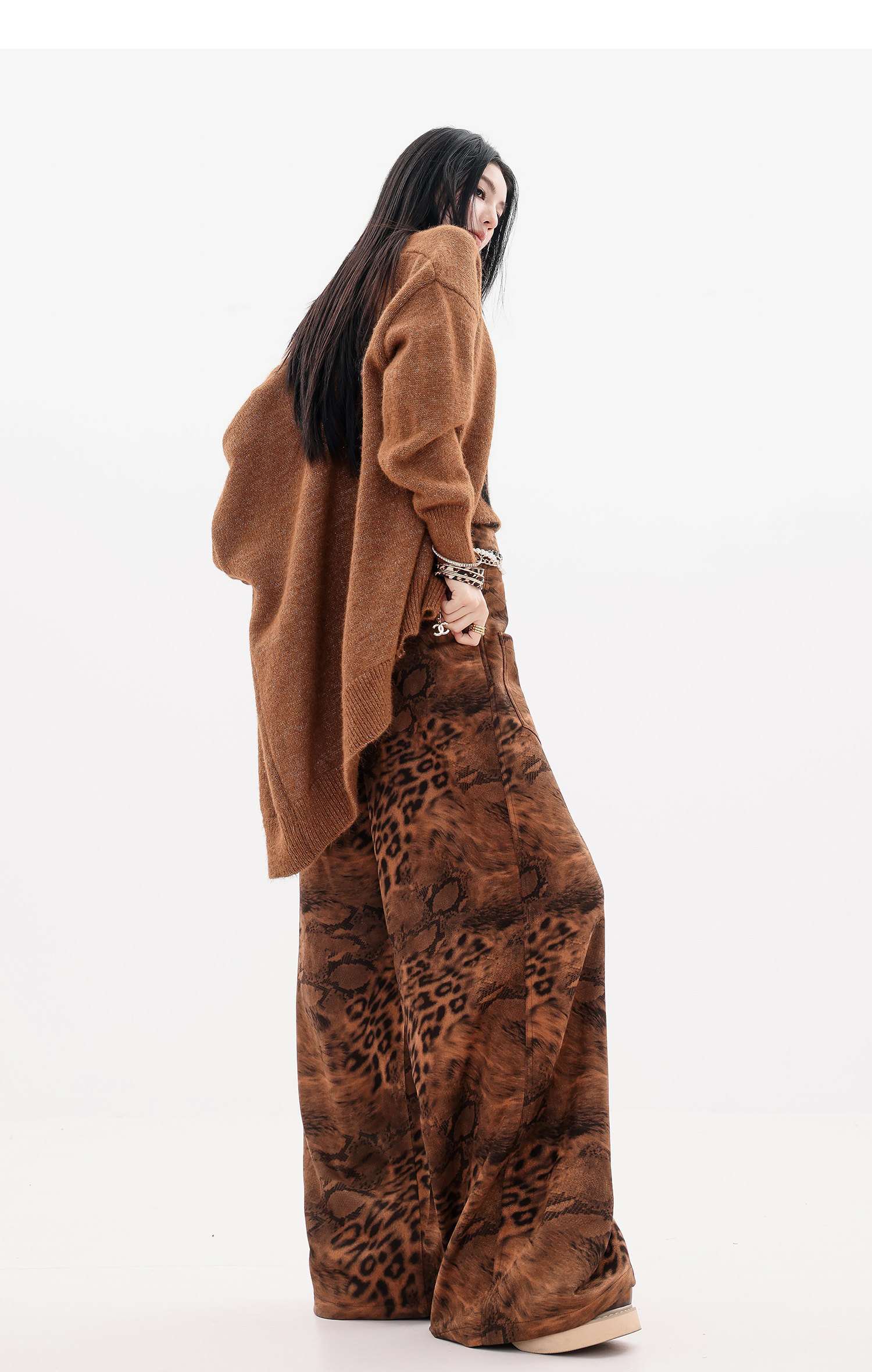 Abwlr Rum Black Tea - Original Leopard Print Casual Pants for Women, New Autumn/Winter Loose Fit Versatile Straight Wide-Leg Pants