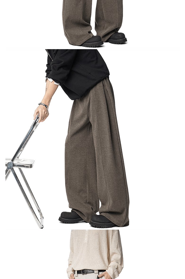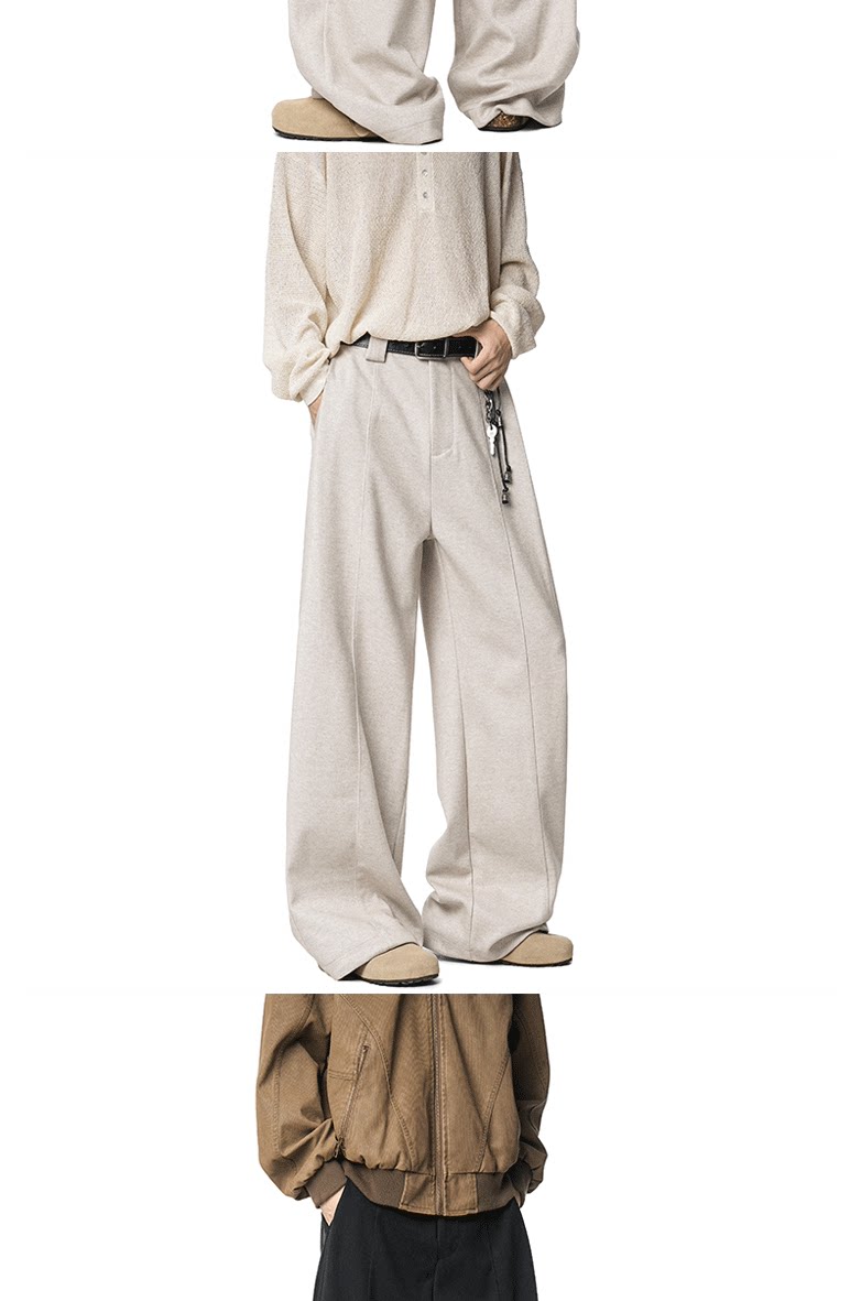 Wassup Tenet American Retro Pleated Straight Casual Pants for Men, Autumn Trendy Brand Couple Loose Wide-Leg Trousers