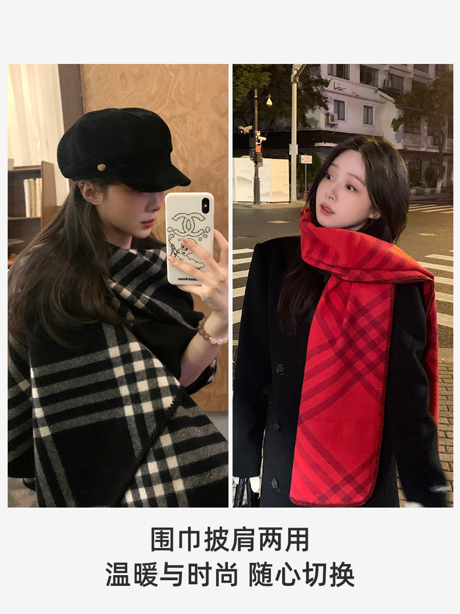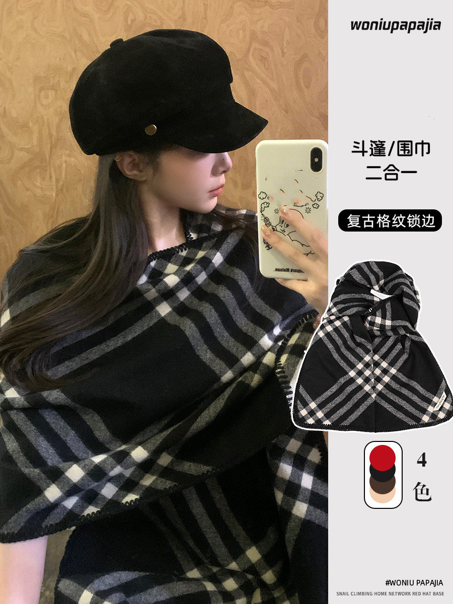 South Korea 2025 Retro Overlock Plaid Scarf Women's Autumn and Winter Warm and Fashionable Cloak Elegant and Elegant Versatile Scarf