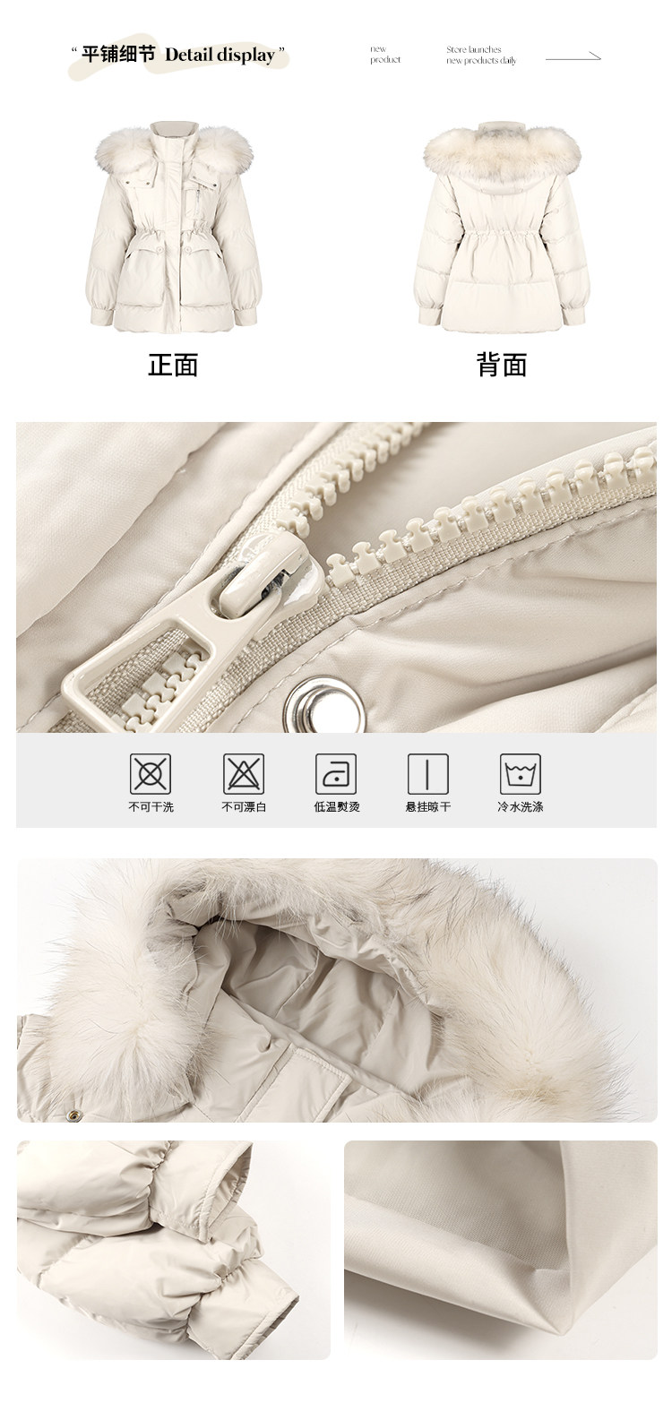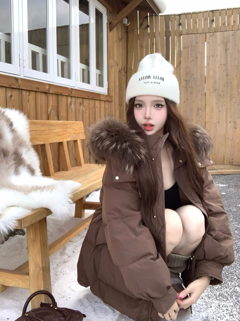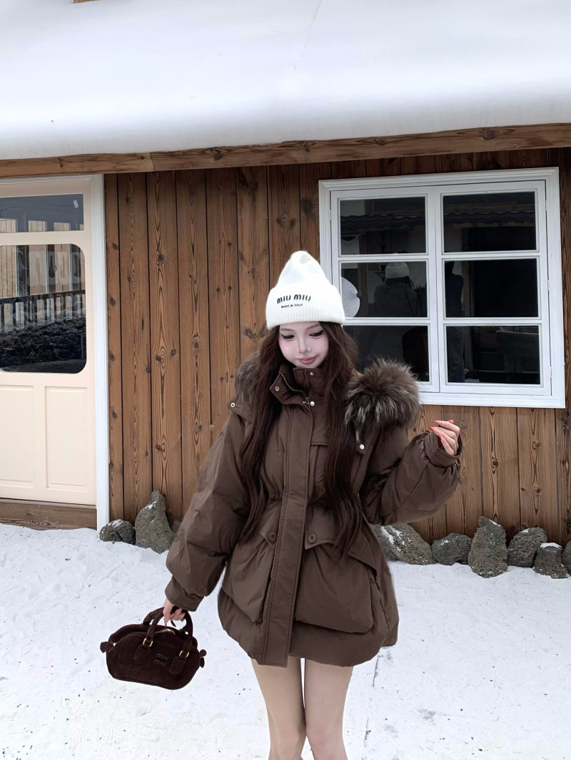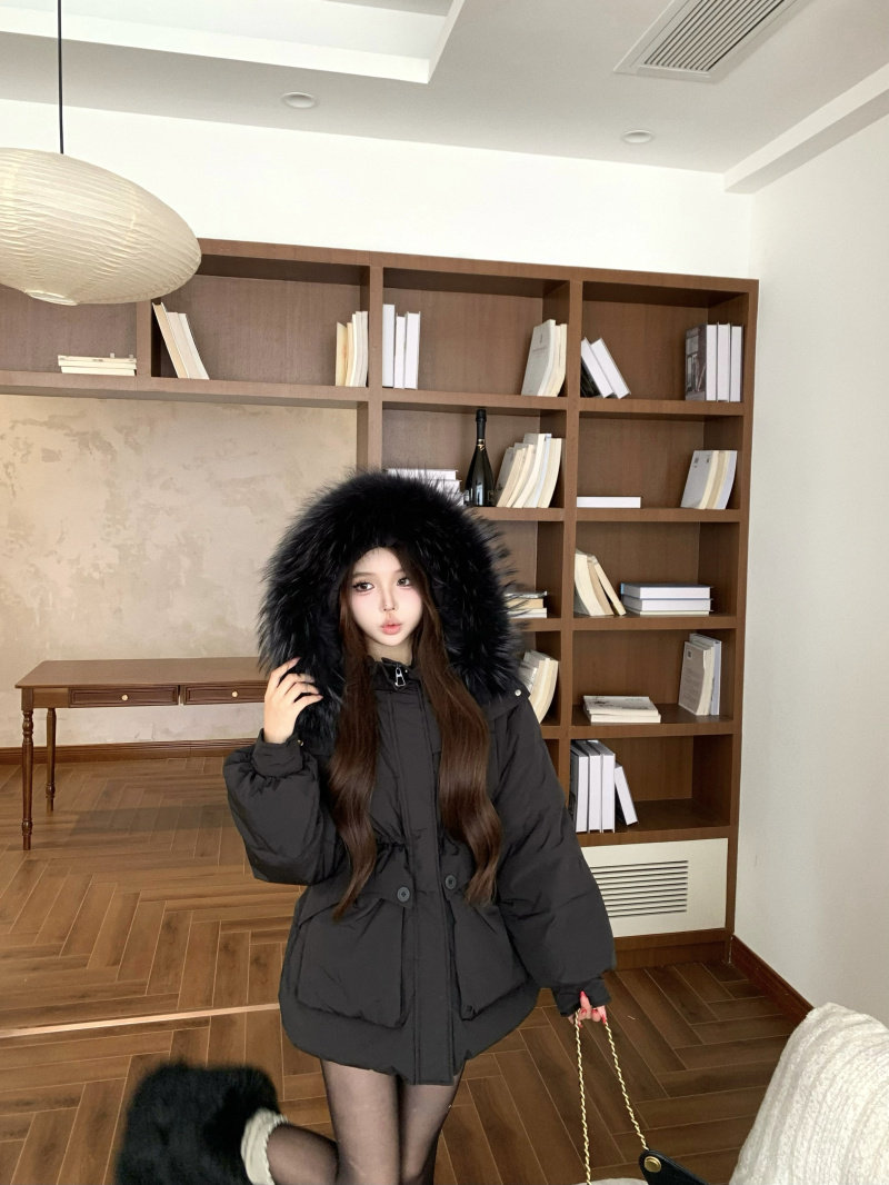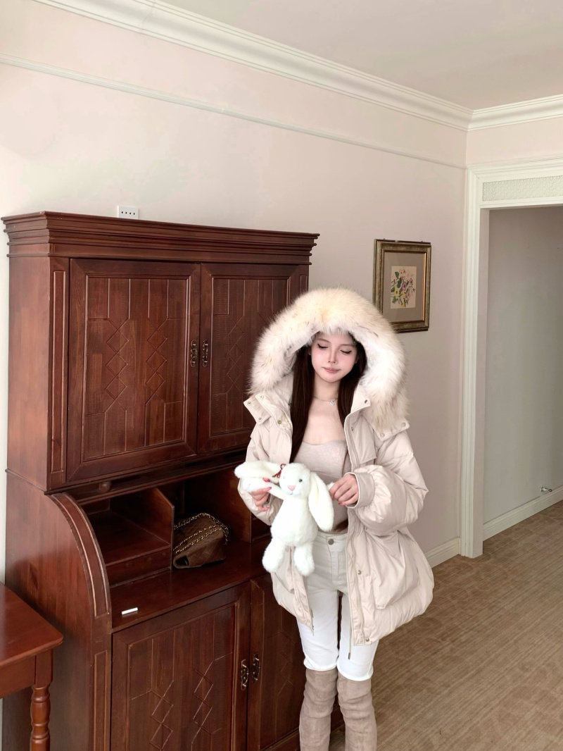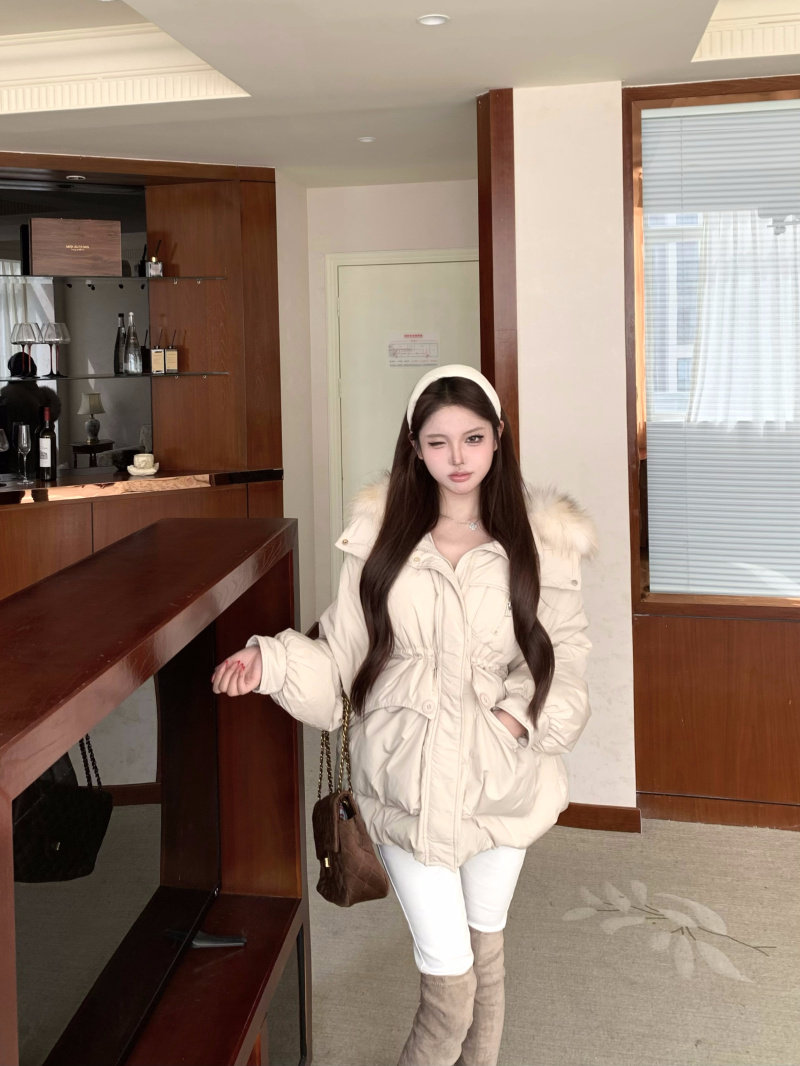 Sort by color Off-white down jacket with real fur collar,Black down jacket with real fur collar,Brown down jacket with real fur collar,Gray down jacket with real fur collar