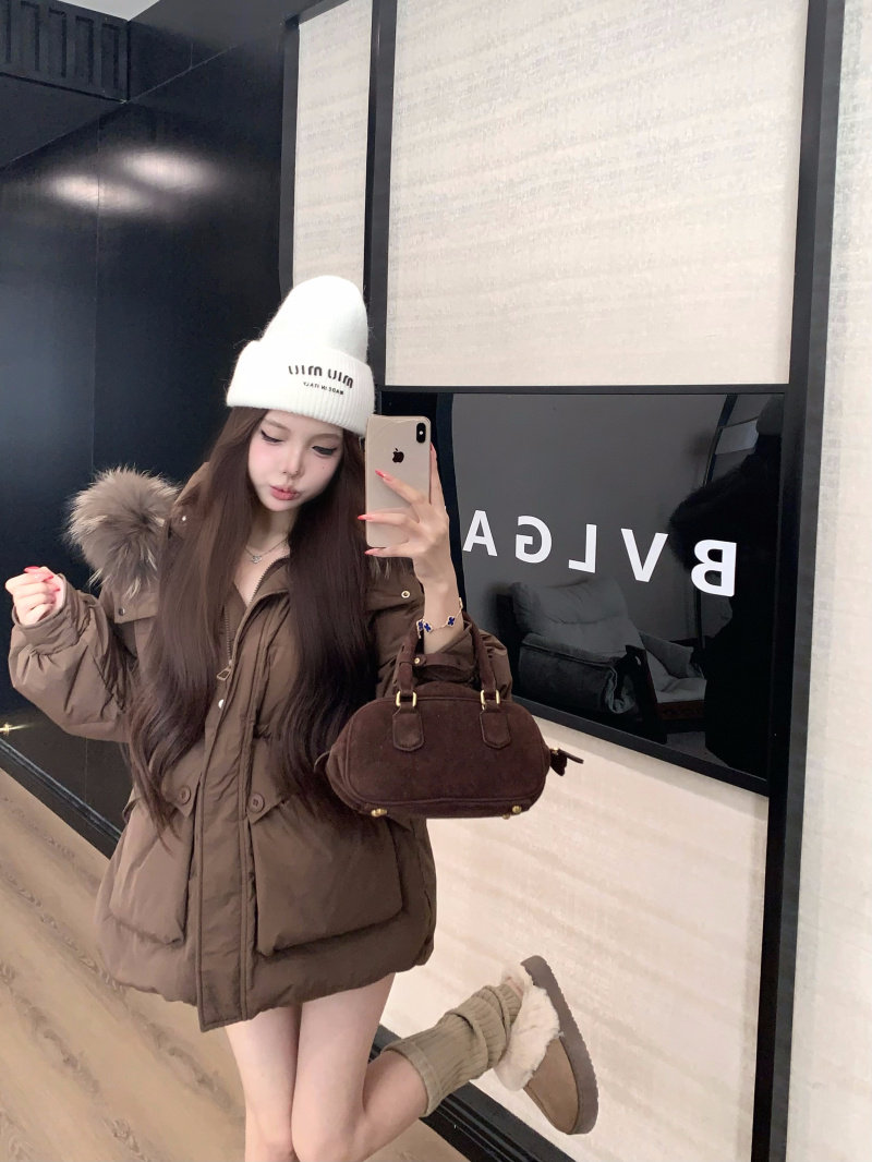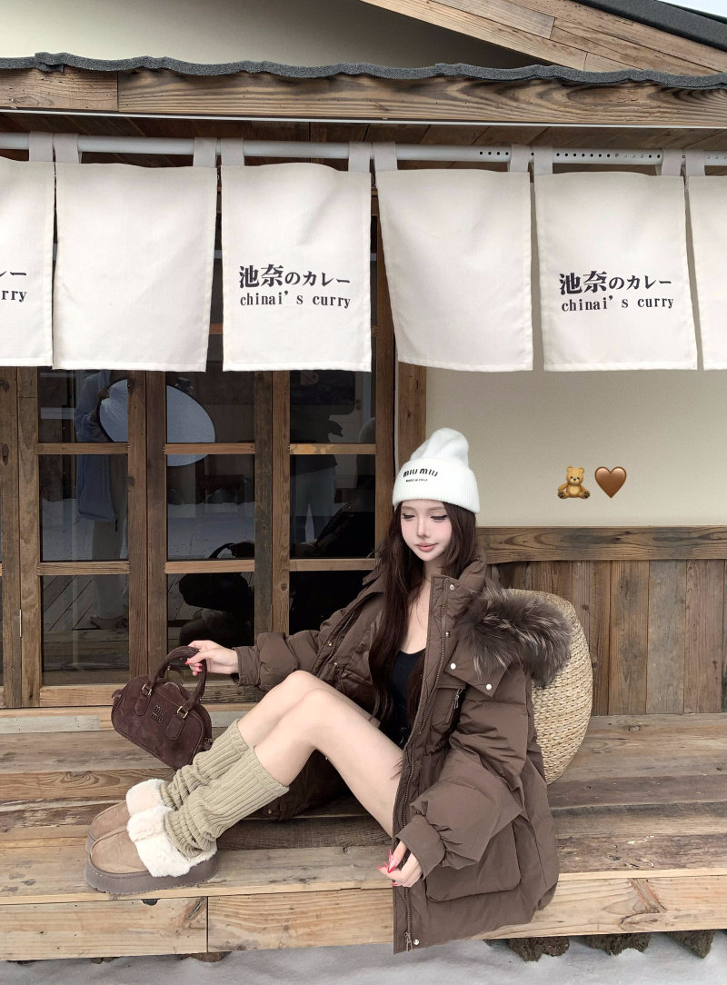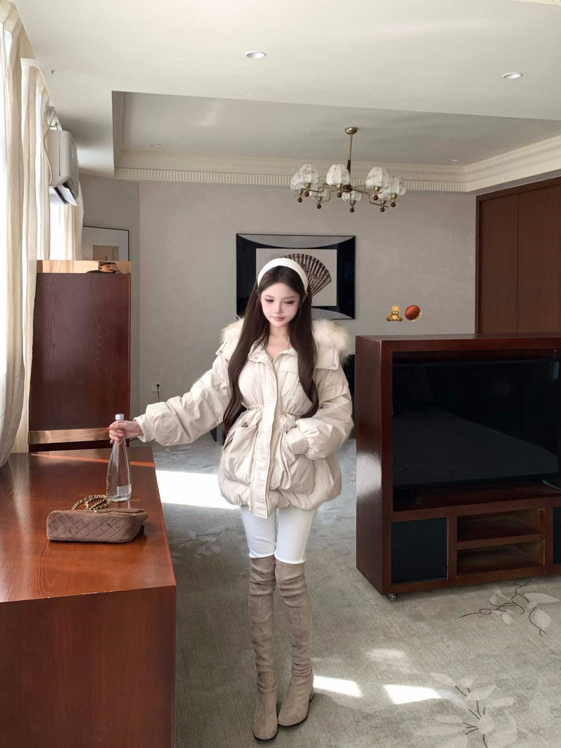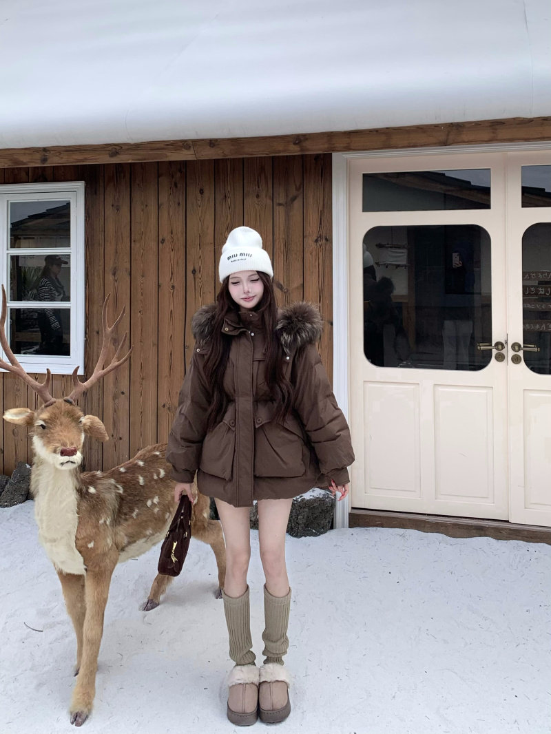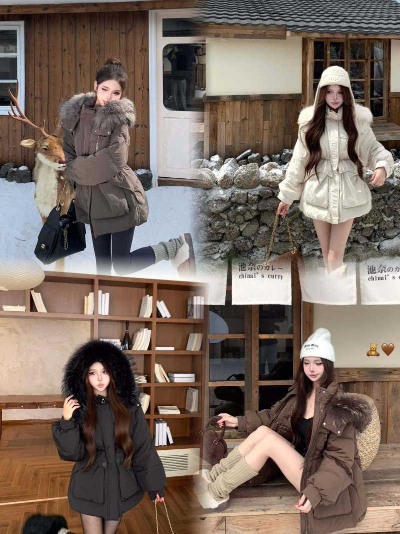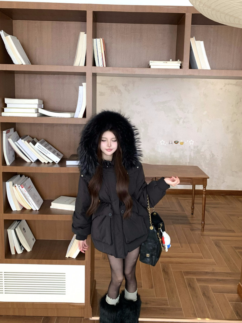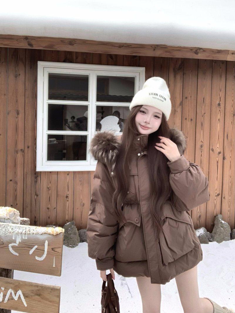 Sort by color Off-white down jacket with real fur collar,Black down jacket with real fur collar,Brown down jacket with real fur collar,Gray down jacket with real fur collar