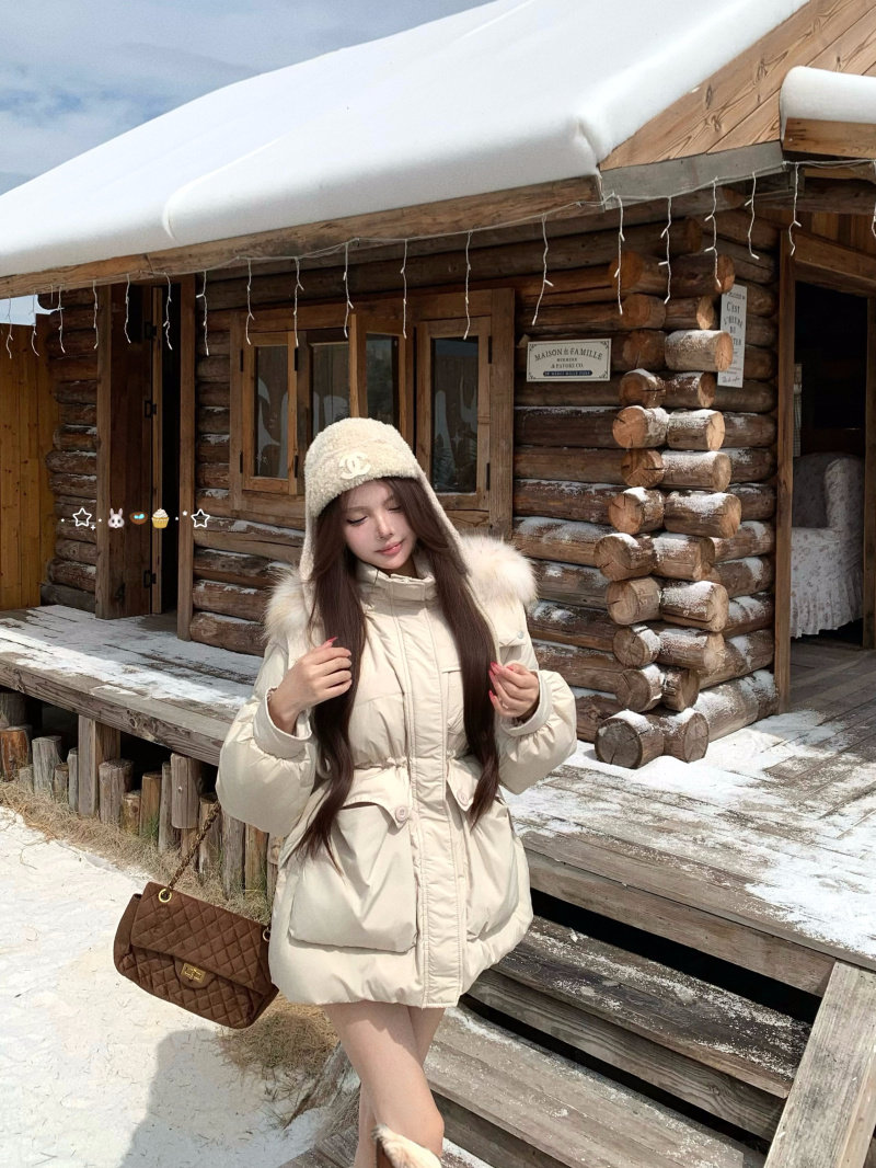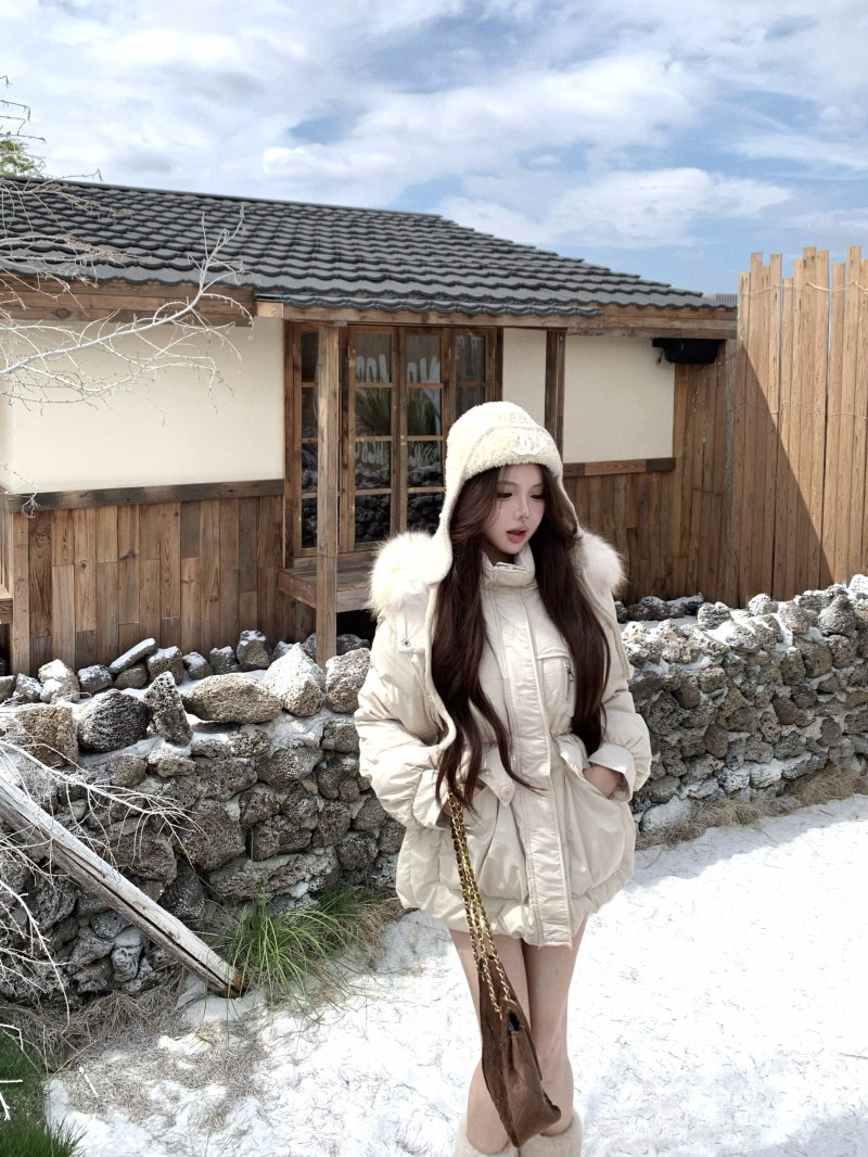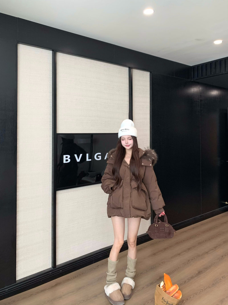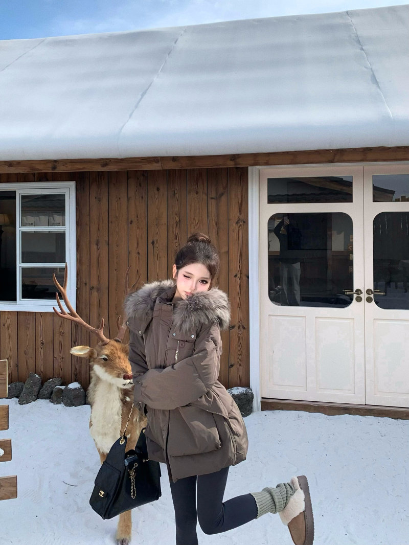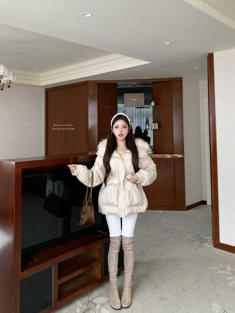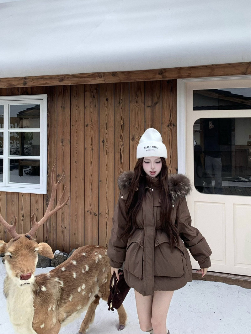 Sort by color Off-white down jacket with real fur collar,Black down jacket with real fur collar,Brown down jacket with real fur collar,Gray down jacket with real fur collar