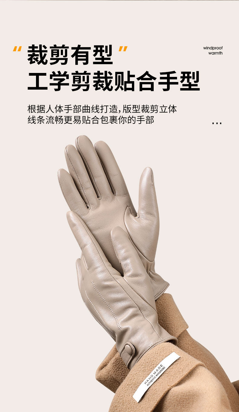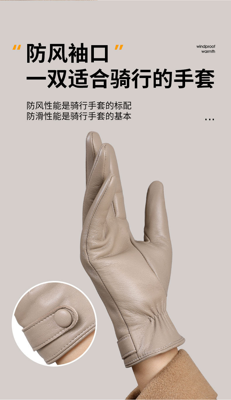 Sheepskin Gloves for Women 2025 New Winter Model for Cycling, Windproof, Cold-Resistant, Driving, Fleece-Lined, Warm, Genuine Leather Gloves, Touch Screen Compatible