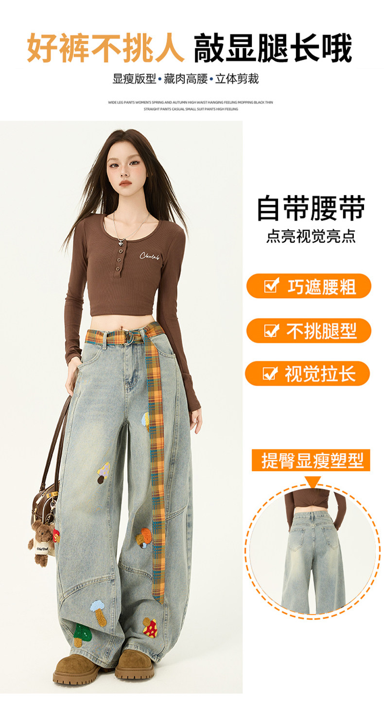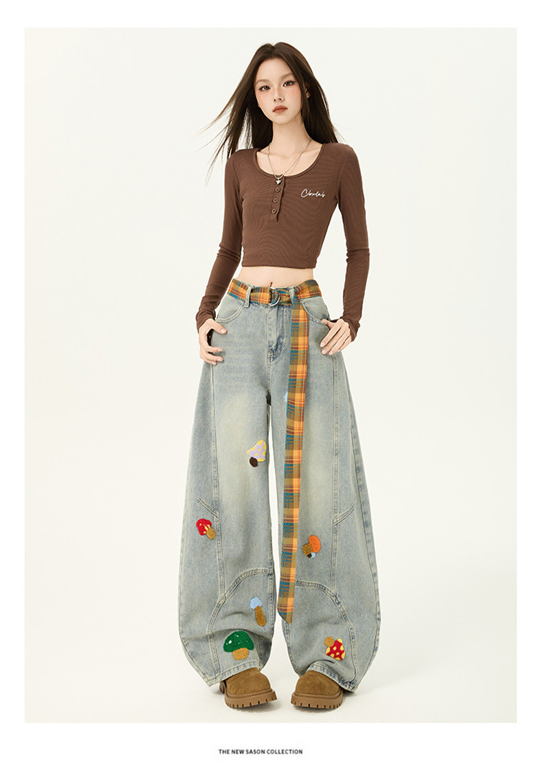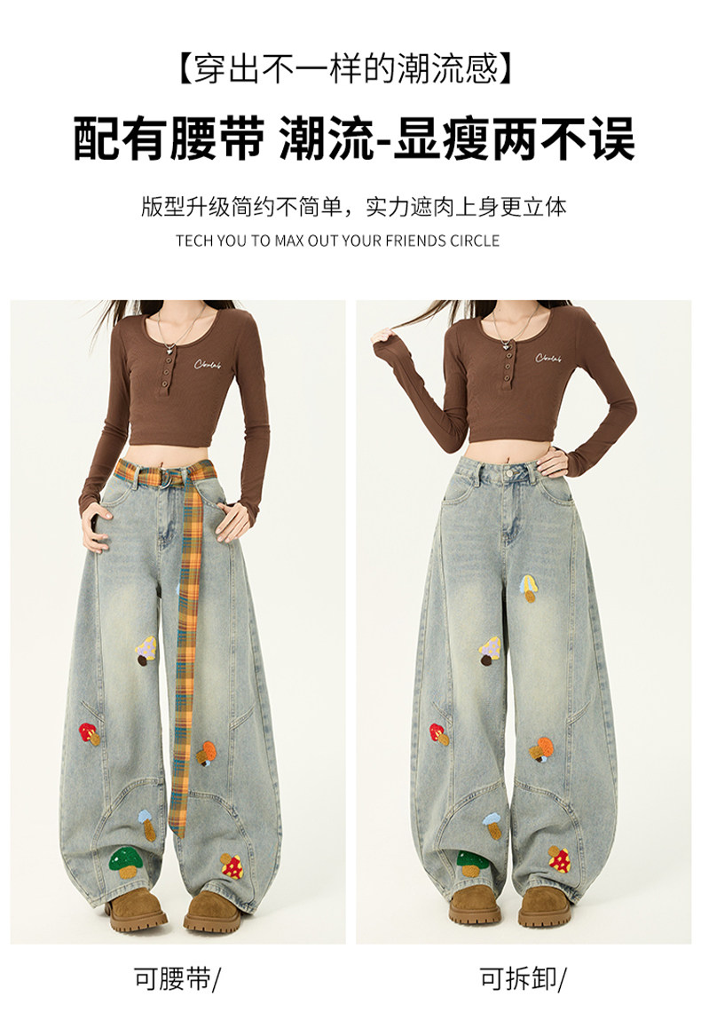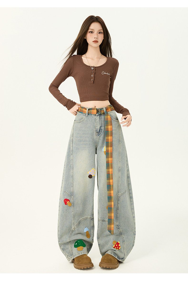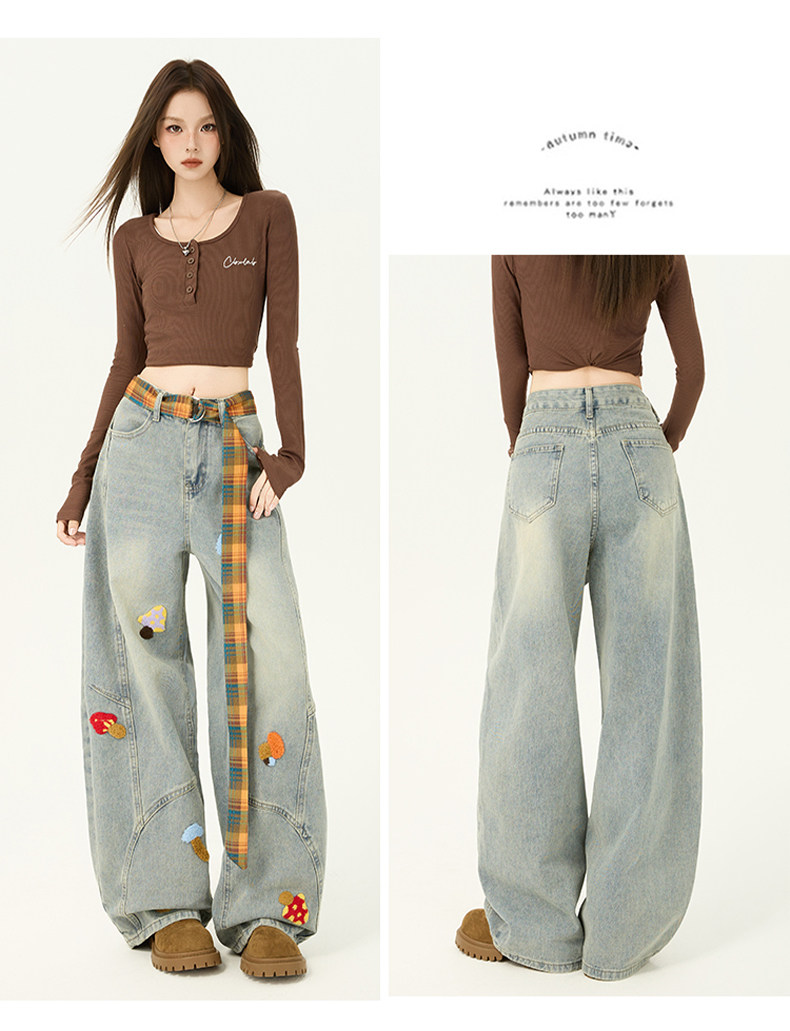 American Retro Embroidered Jeans for Women, Loose Wide-Leg Scimitar Pants with a Sense of Design